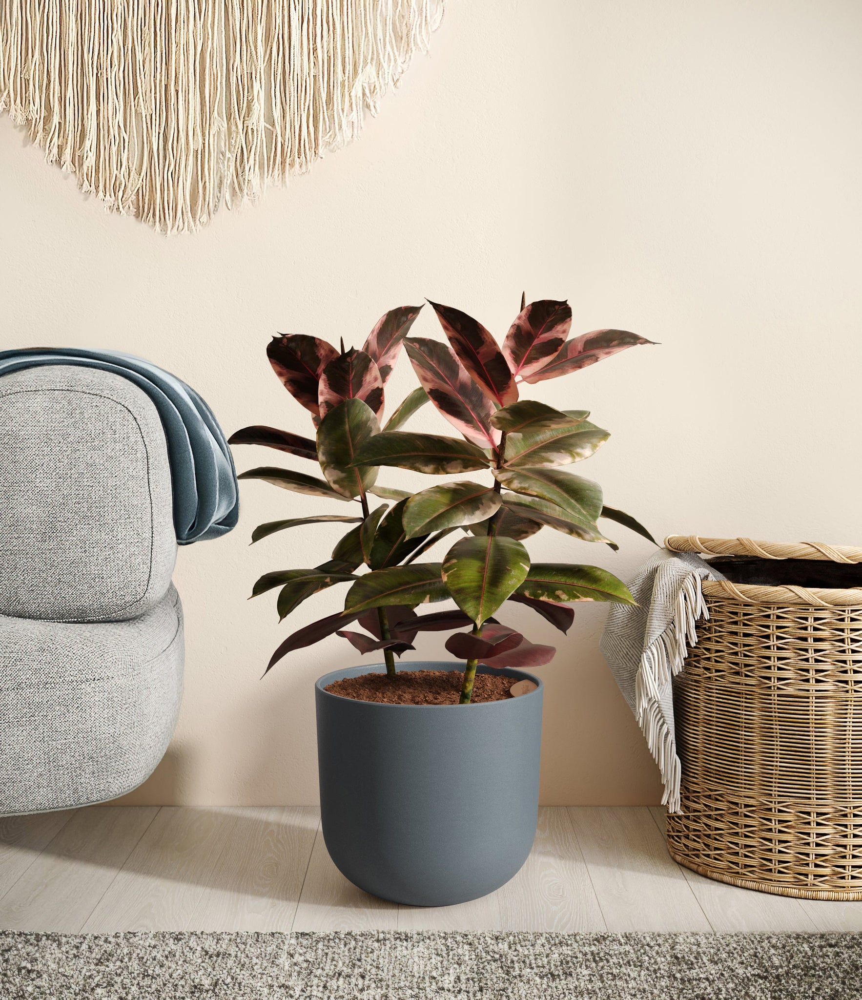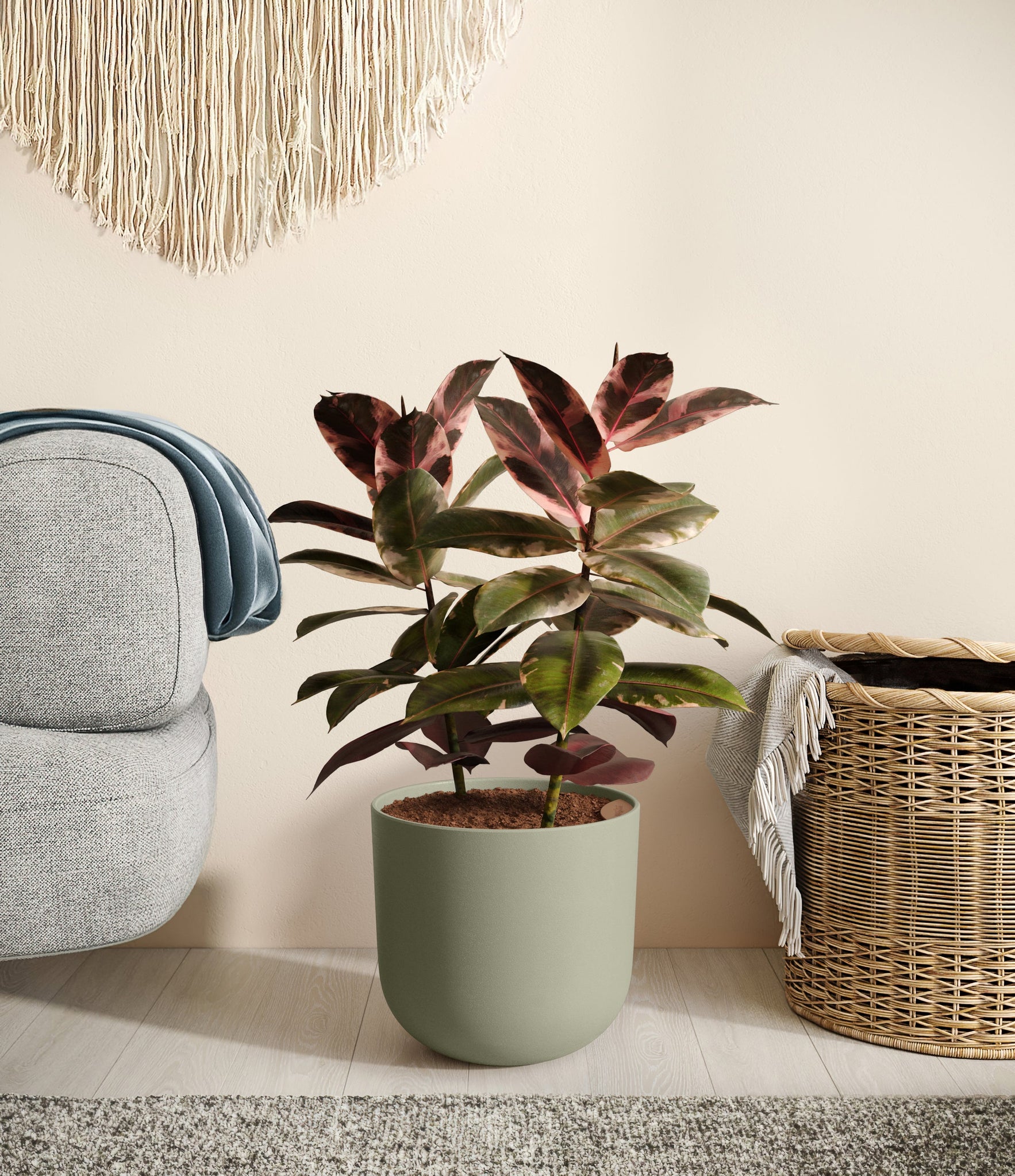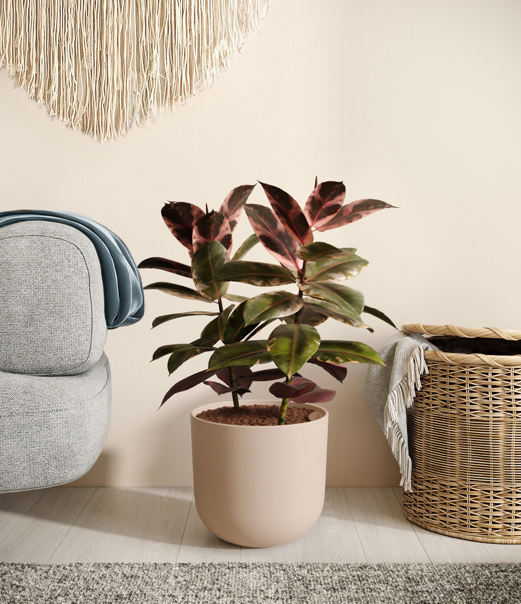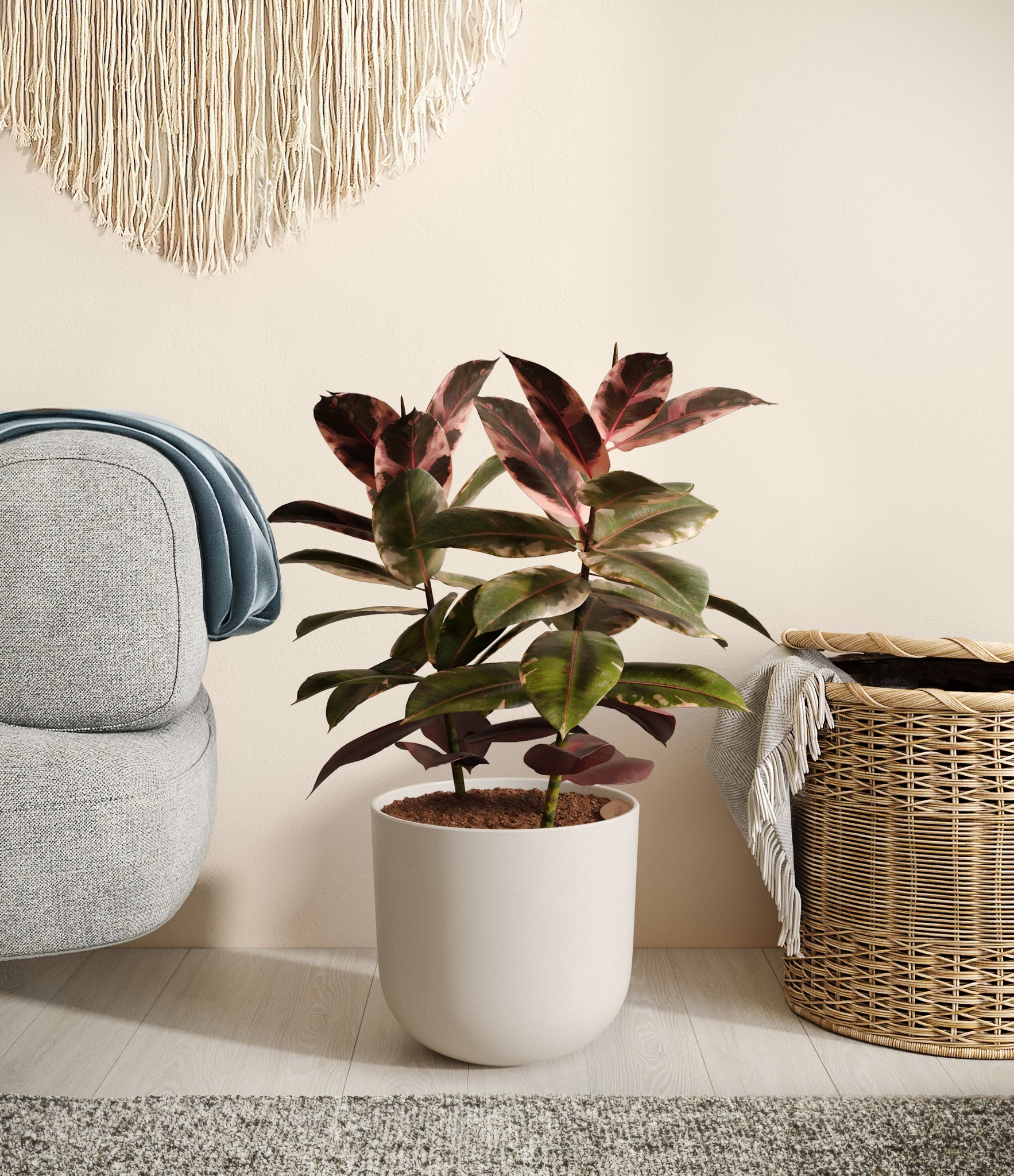 Native to the tropical zones of Malaysia and India, the Ficus Ruby thrives in warm, humid environments, so be sure to keep it somewhere cozy to make it feel at home.