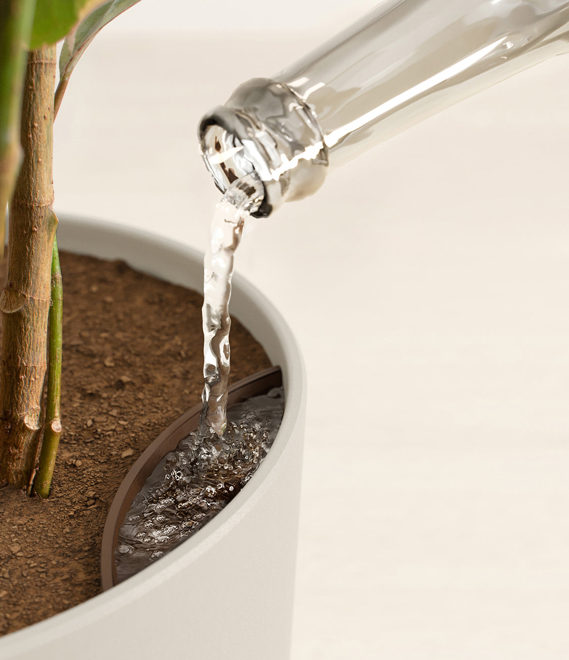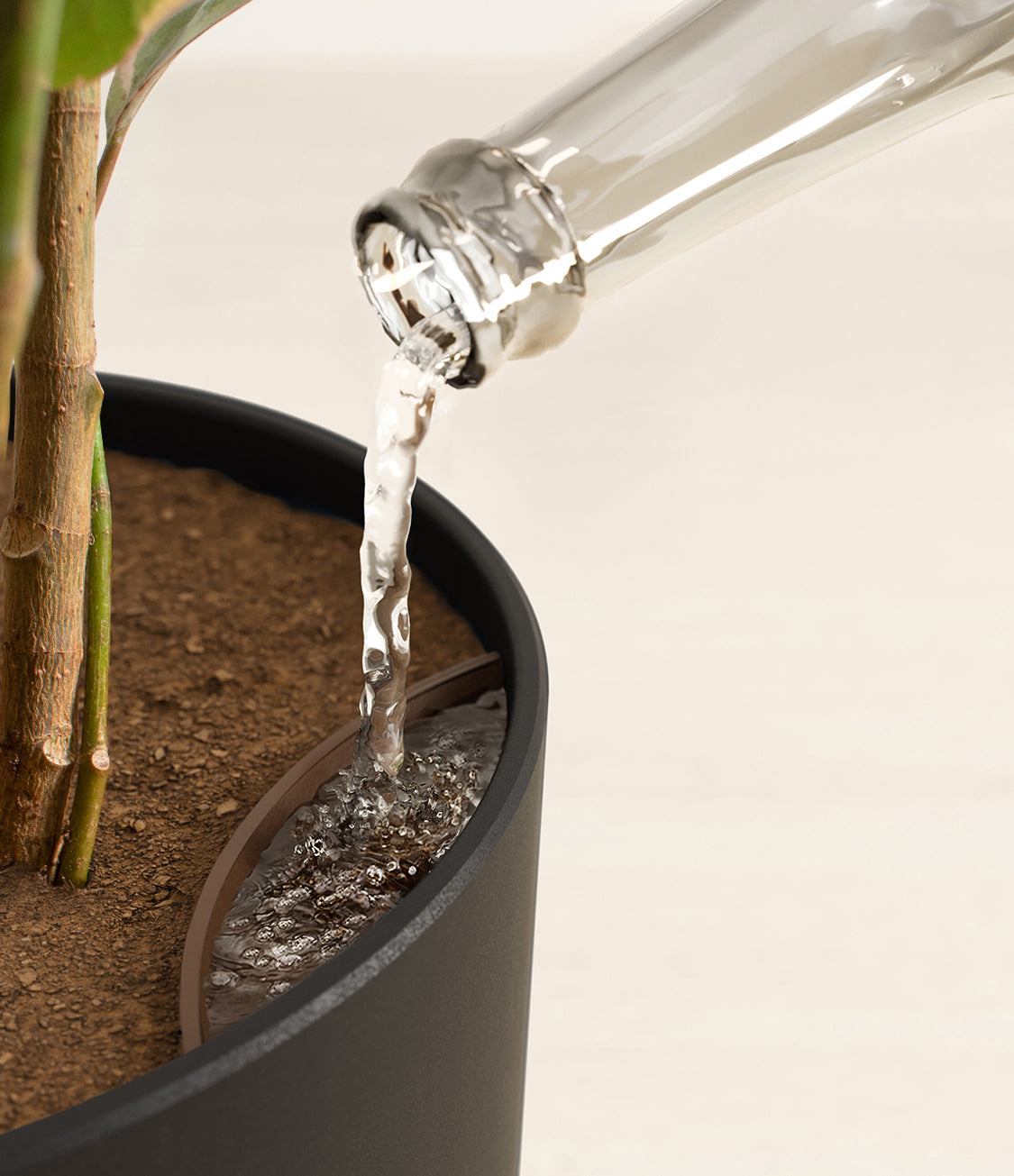 Potted in a premium quality self-watering pot with a soft matte finish, this stunning plant can reach up to 10 feet tall indoors.