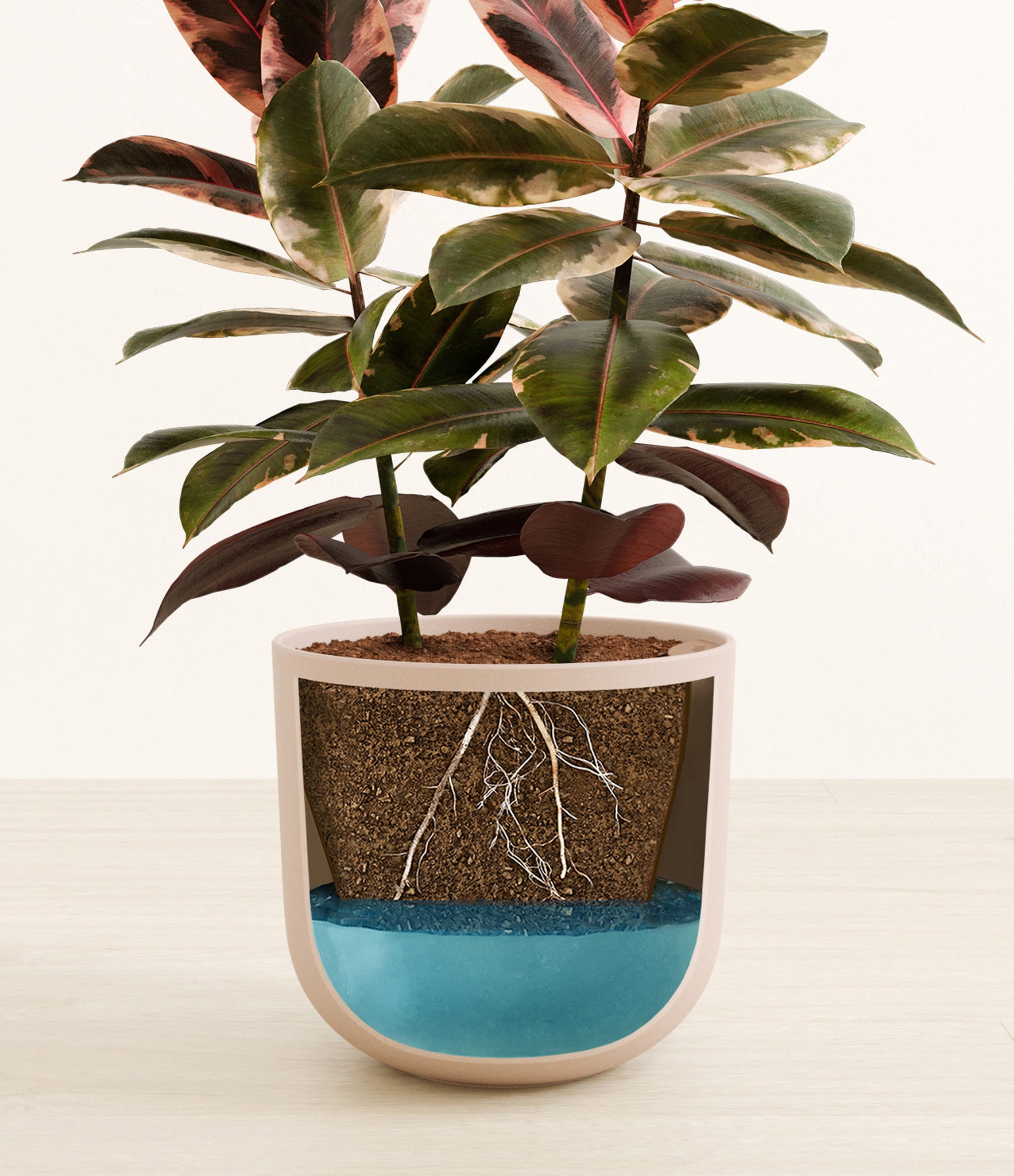 An exquisite plant with large rubbery leaves, the Ficus Ruby is best known for its extraordinary variegated foliage. Streaked with shades of pink and red against a vibrant dark green, it adds the perfect pop of color to any space.