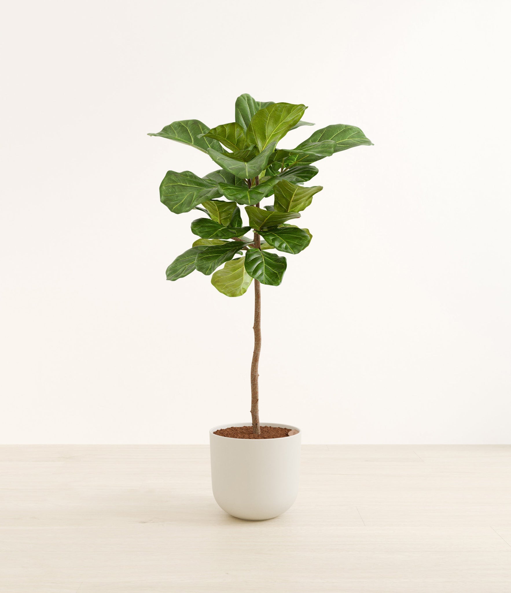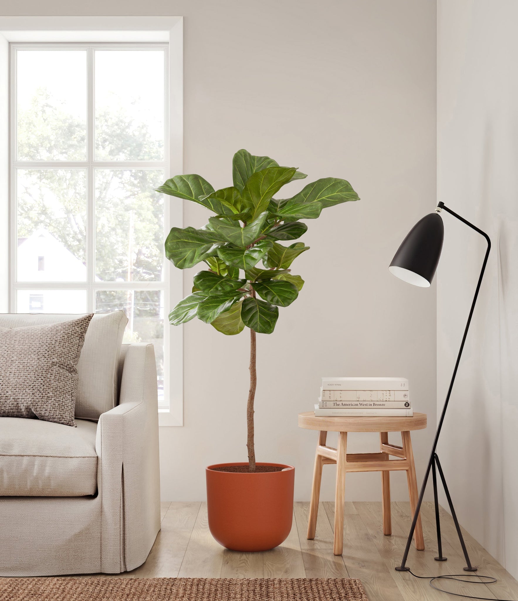 Native to the rainforests of Western and Central Africa, Fiddle Leaf Fig is a tropical fig tree reaching towering heights in the wild, and among the most known and coveted house plants. The vibrant green foliage full of lyre-shaped, larger-than-life leaves makes any space feel more unique and welcoming.