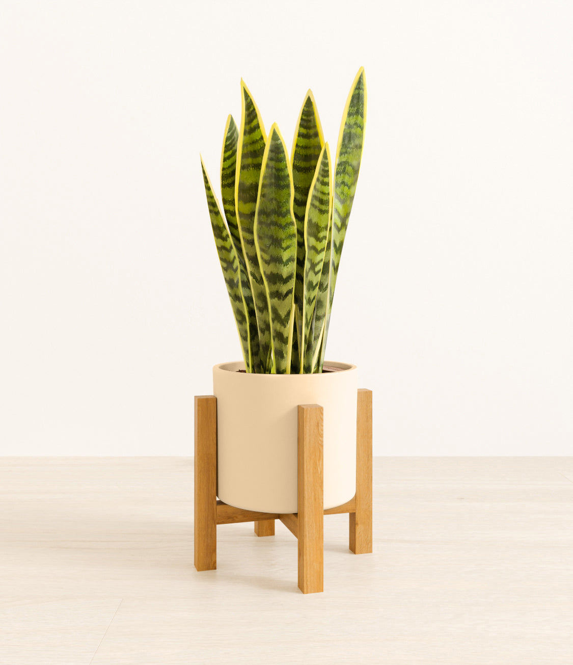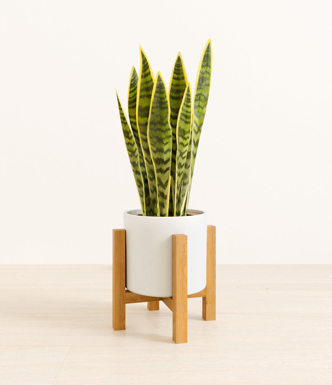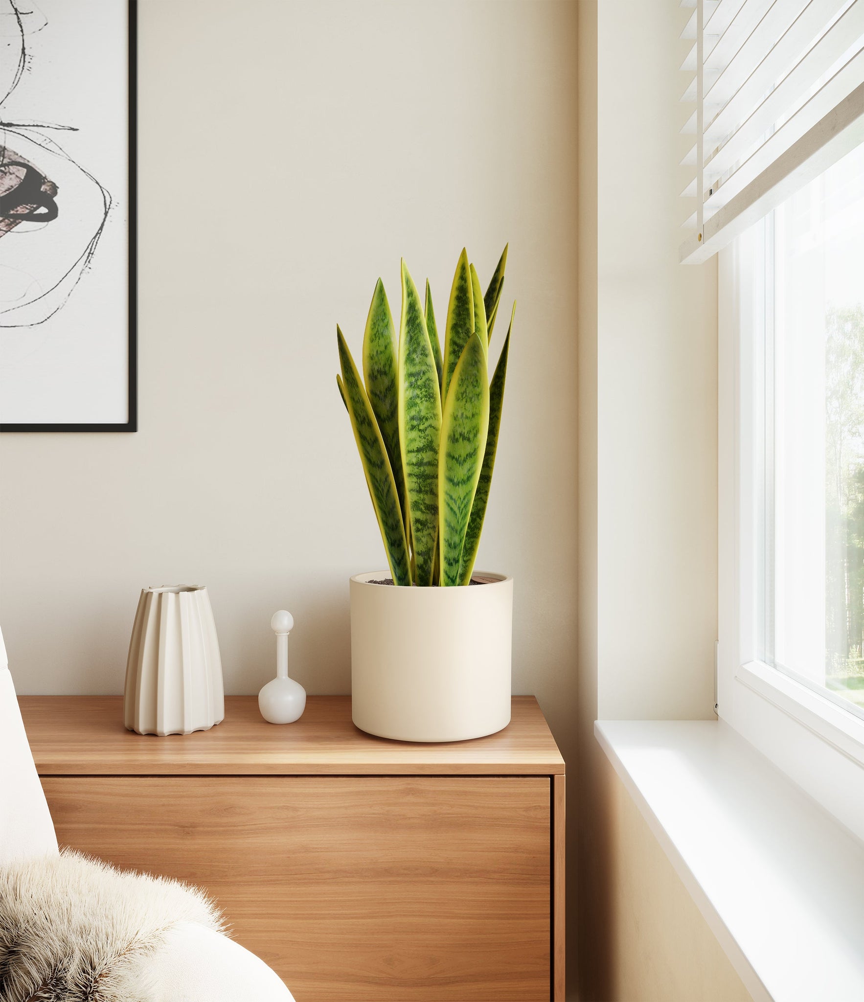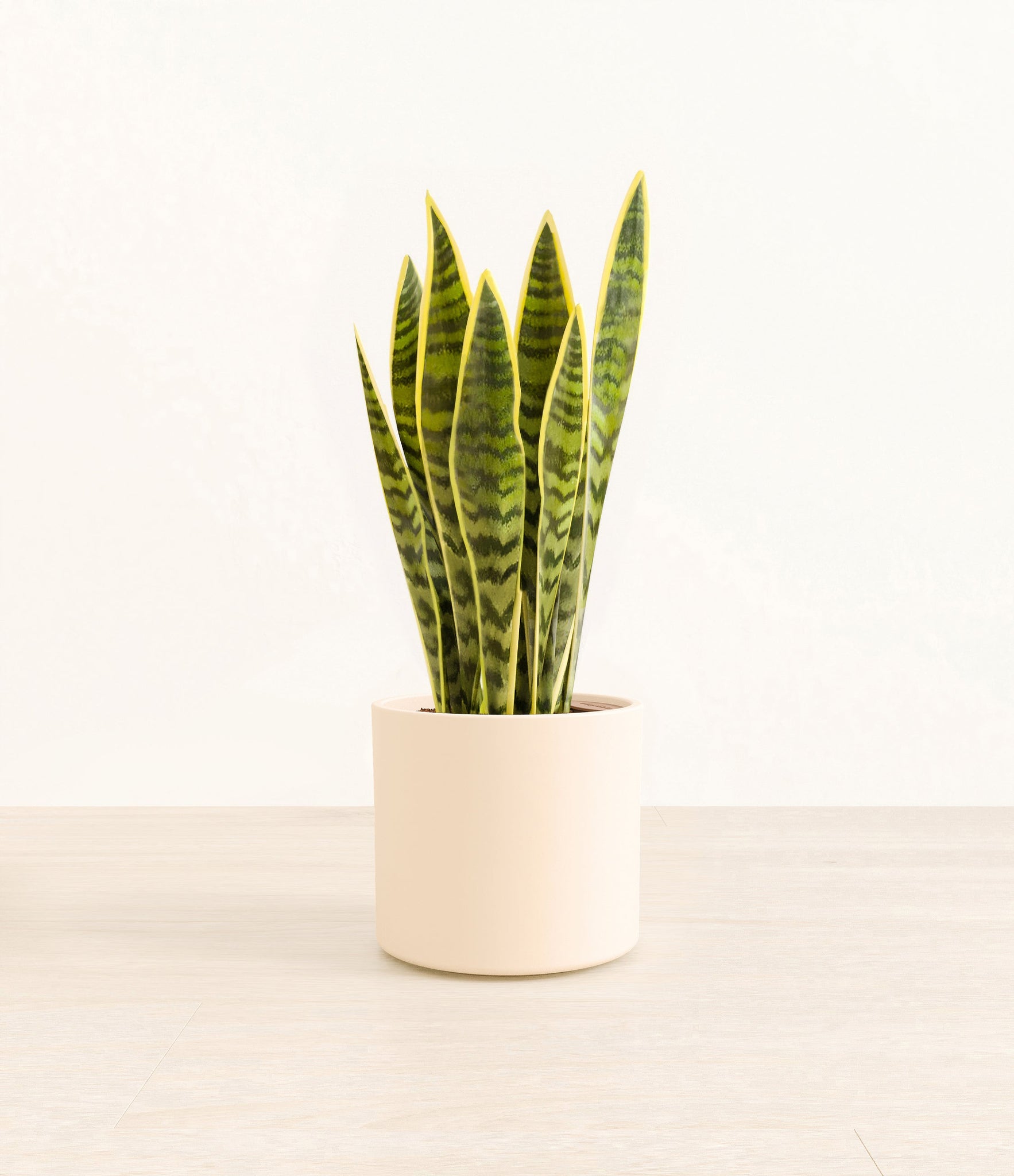 Originating from the desert lands of Africa, Asia, and Madagascar, Snake Plant is the most resilient of all houseplants and thrives under any condition - including the most forgetful of plant lovers. Its tall and narrow sword-shaped leaves wear a vibrant green edged with streaks of sunshine, ever so elegantly stealing the show. Not only is it easy on the eyes, Golden Snake Plant is a master air-purifier, removing allergens and toxins from the air we breathe, so keeping it goes a long way for our health.
