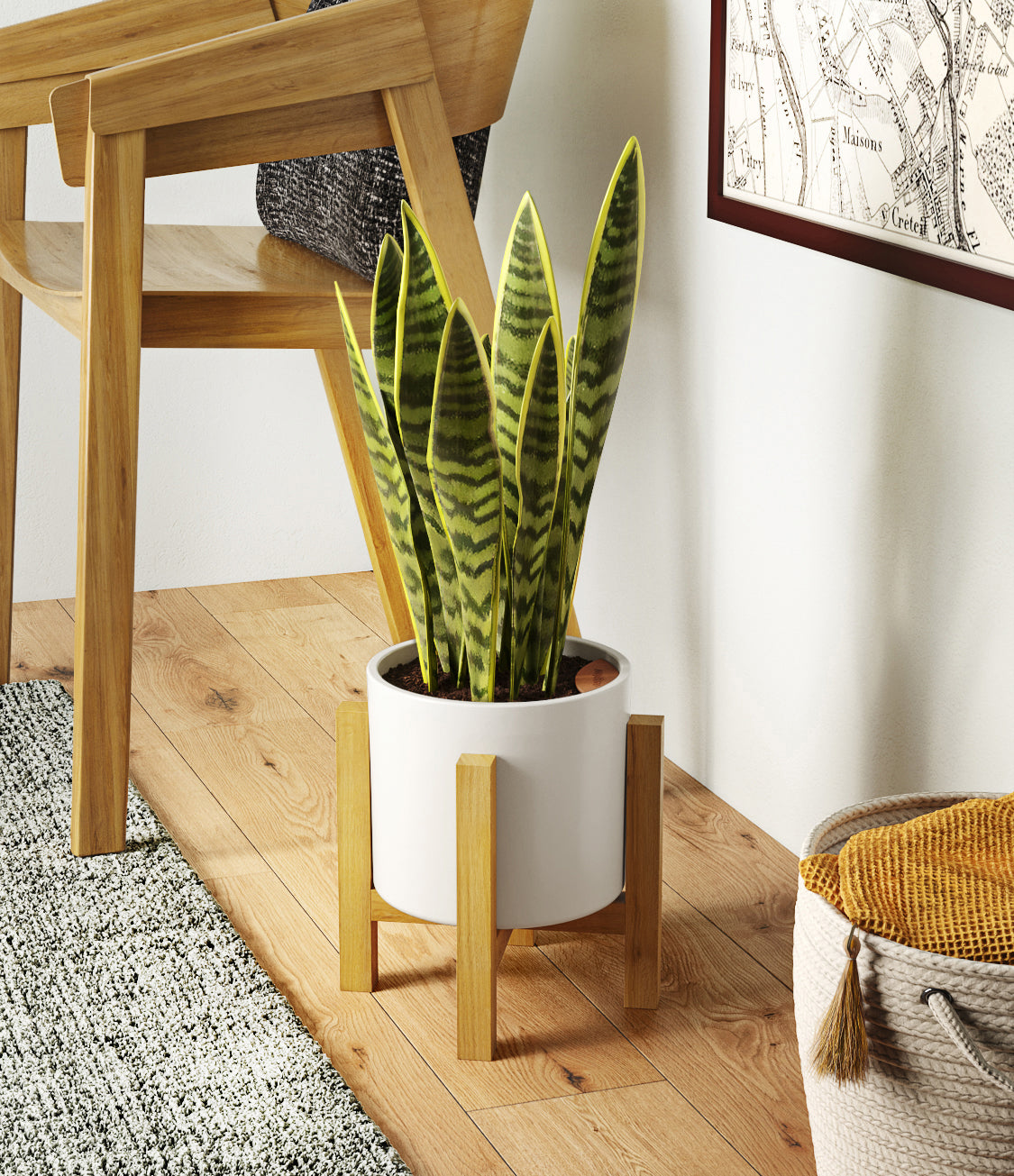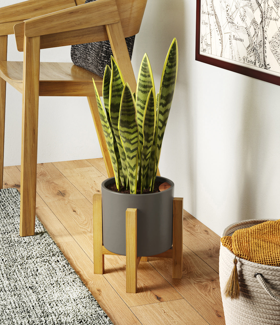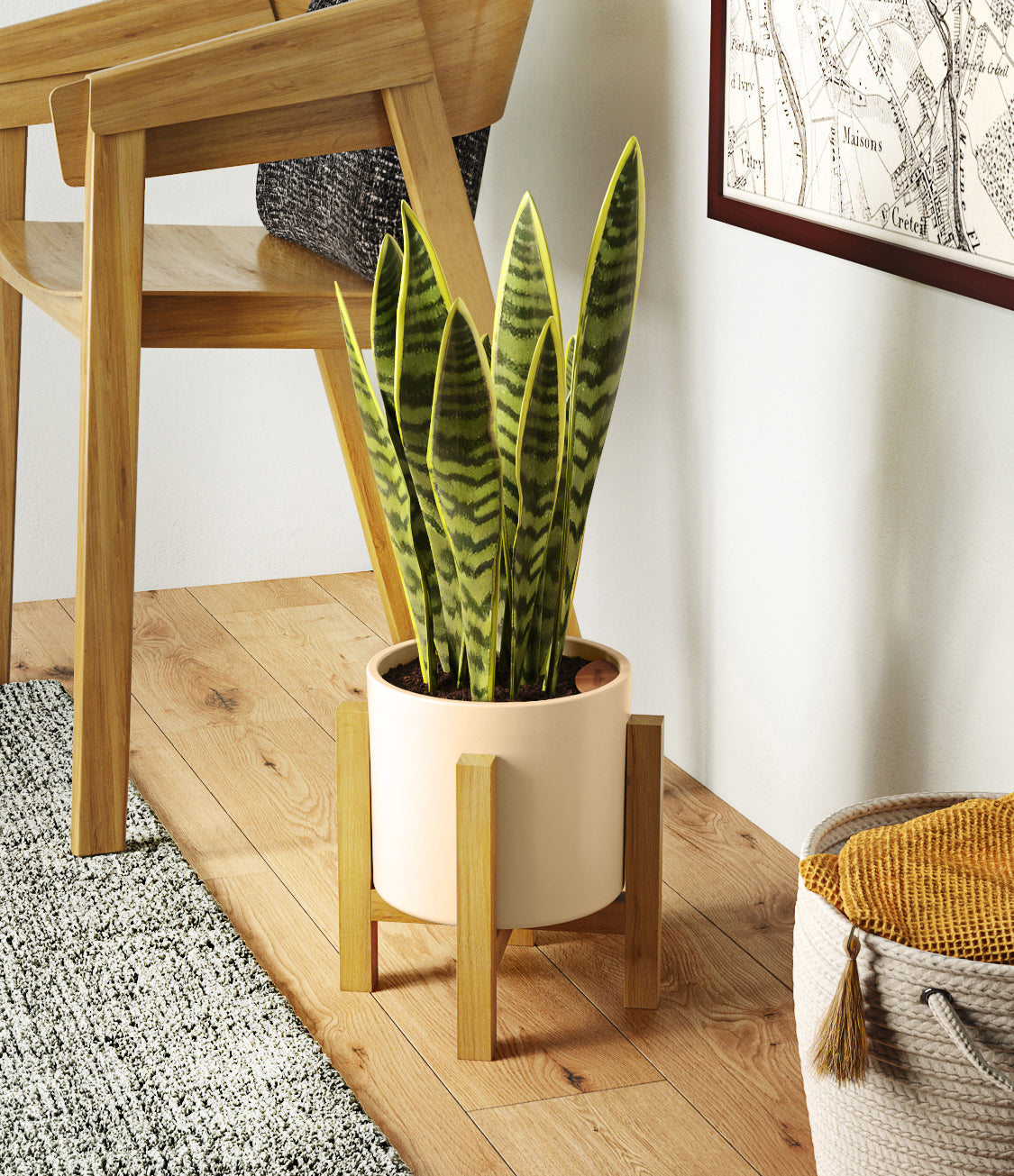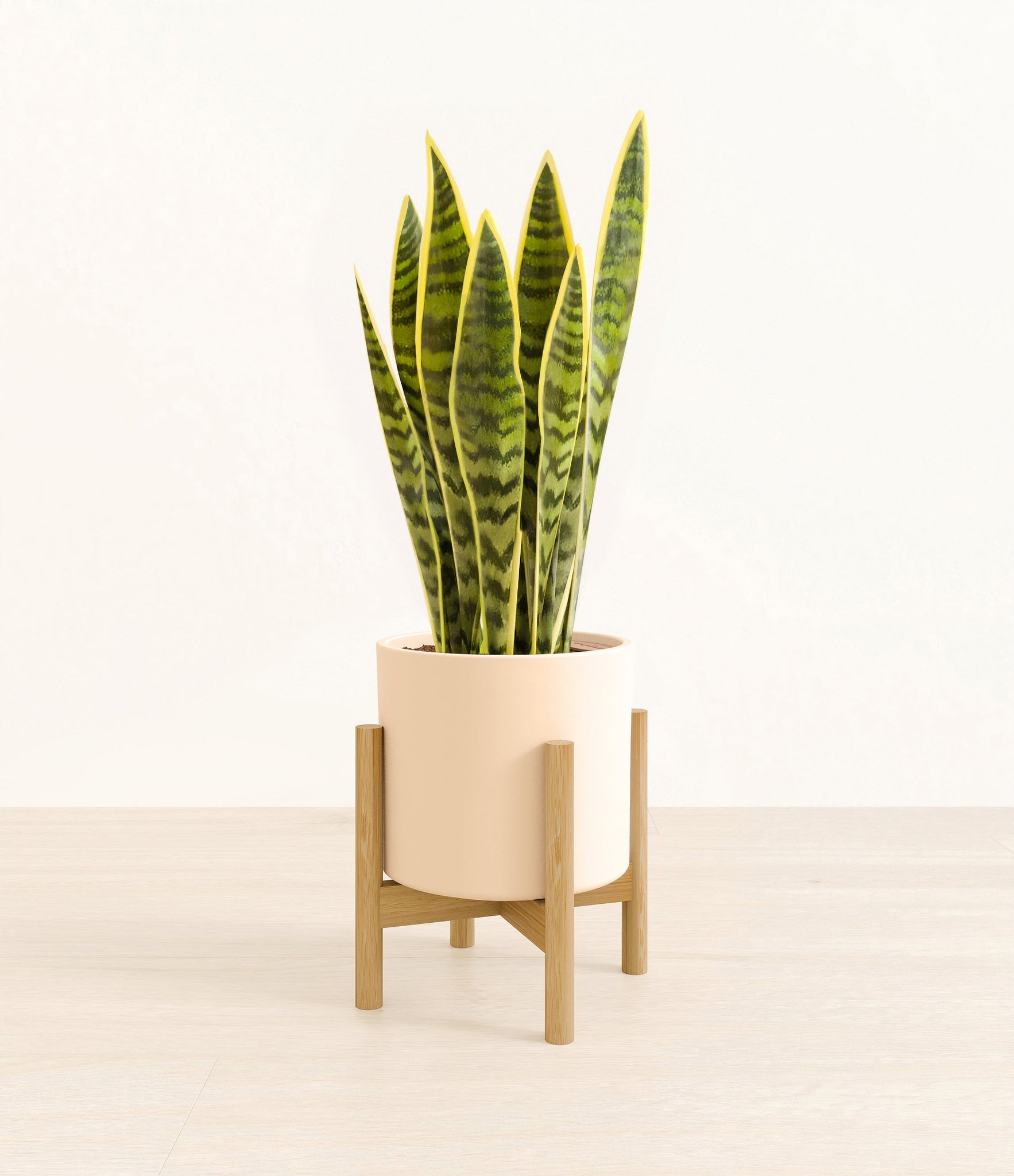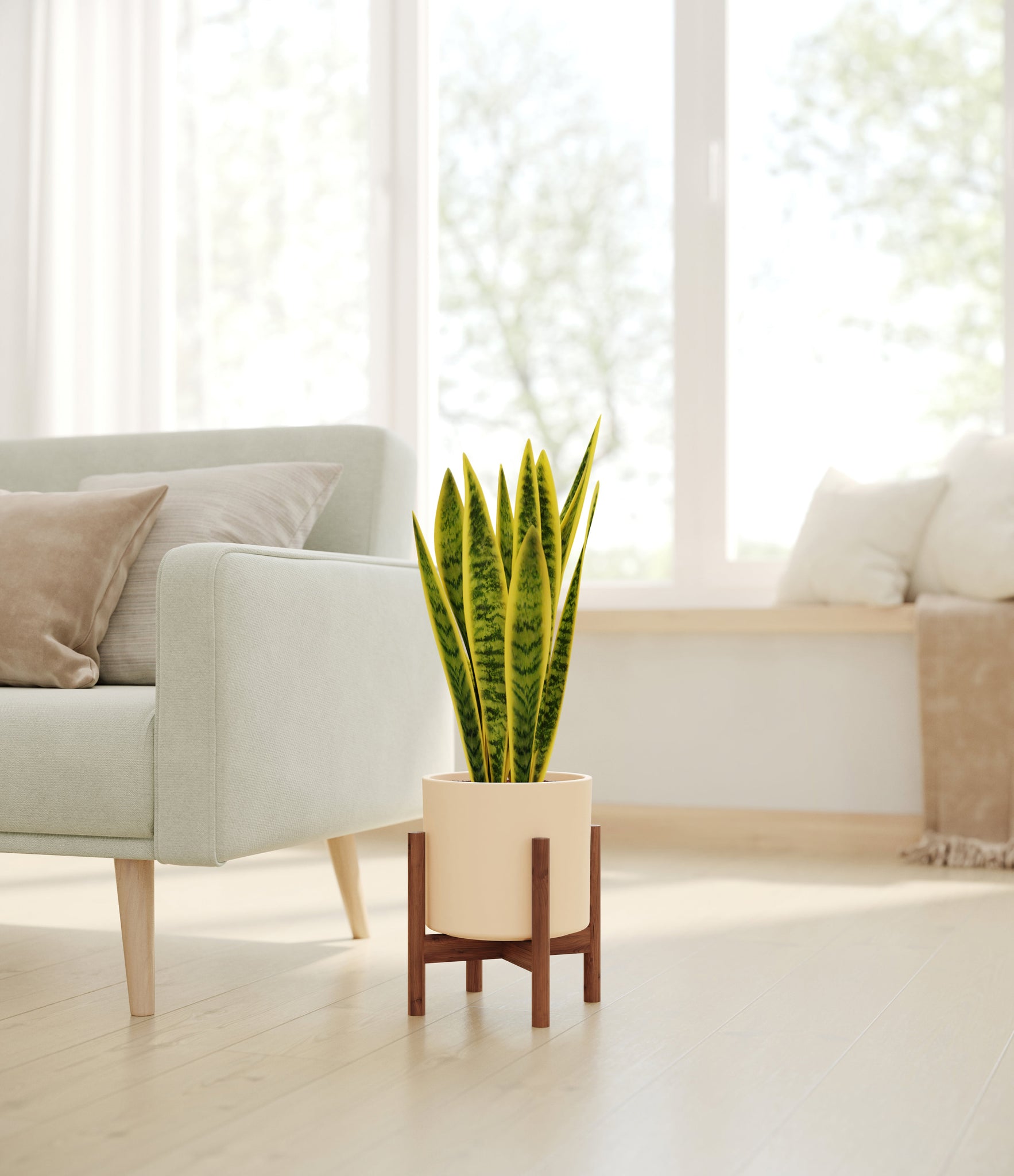 Originating from the desert lands of Africa, Asia, and Madagascar, Snake Plant is the most resilient of all houseplants and thrives under any condition - including the most forgetful of plant lovers. Its tall and narrow sword-shaped leaves wear a vibrant green edged with streaks of sunshine, ever so elegantly stealing the show. Not only is it easy on the eyes, Golden Snake Plant is a master air-purifier, removing allergens and toxins from the air we breathe, so keeping it goes a long way for our health.