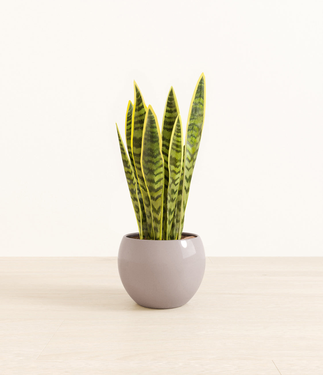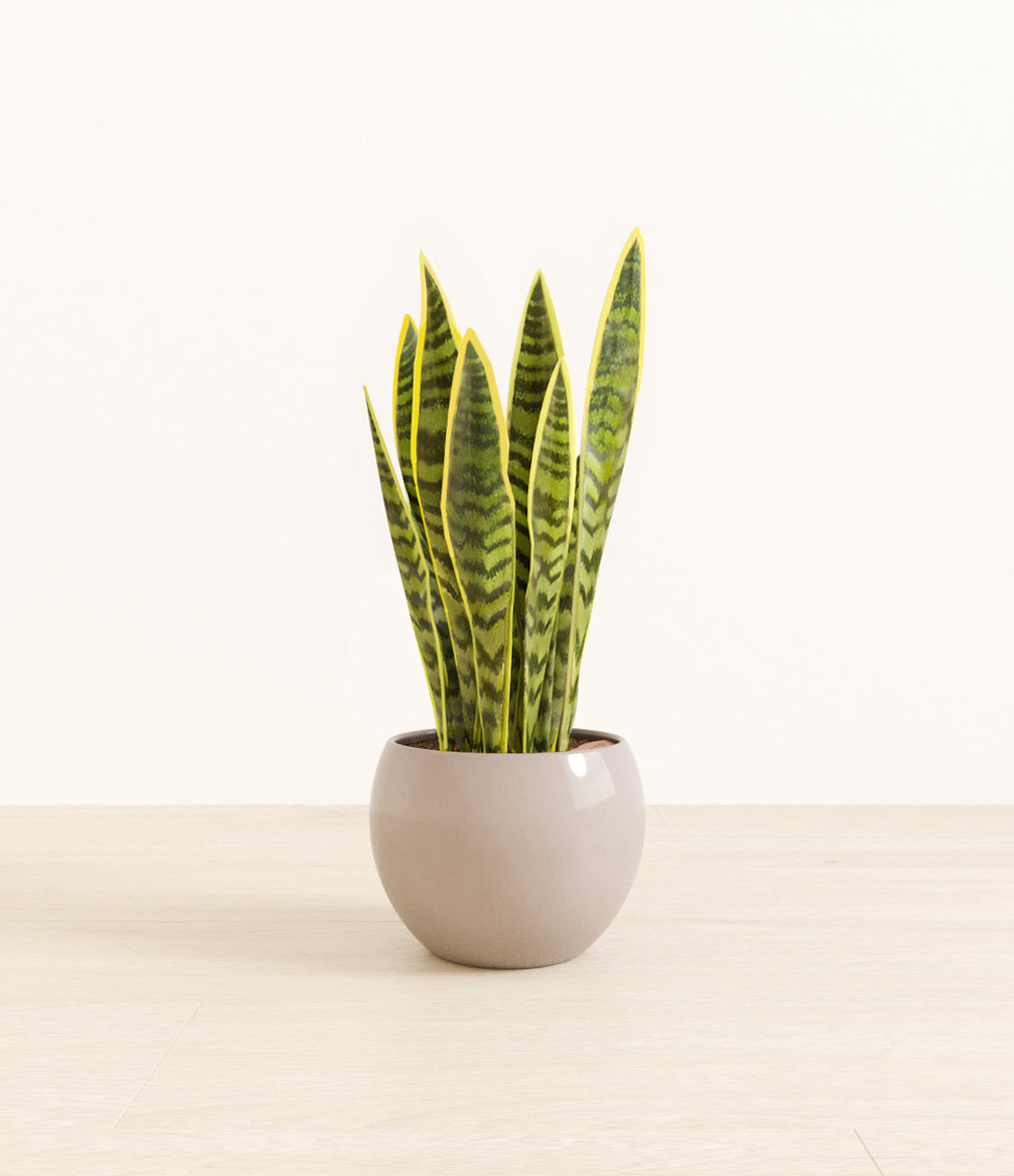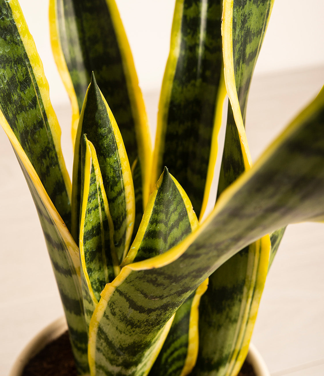 Originating from the desert lands of Africa, Asia, and Madagascar, Snake Plant is the most resilient of all houseplants and thrives under any condition - including the most forgetful of plant lovers. Its tall and narrow sword-shaped leaves wear a vibrant green edged with streaks of sunshine, ever so elegantly stealing the show. Not only is it easy on the eyes, Golden Snake Plant is a master air-purifier, removing allergens and toxins from the air we breathe, so keeping it goes a long way for our health.