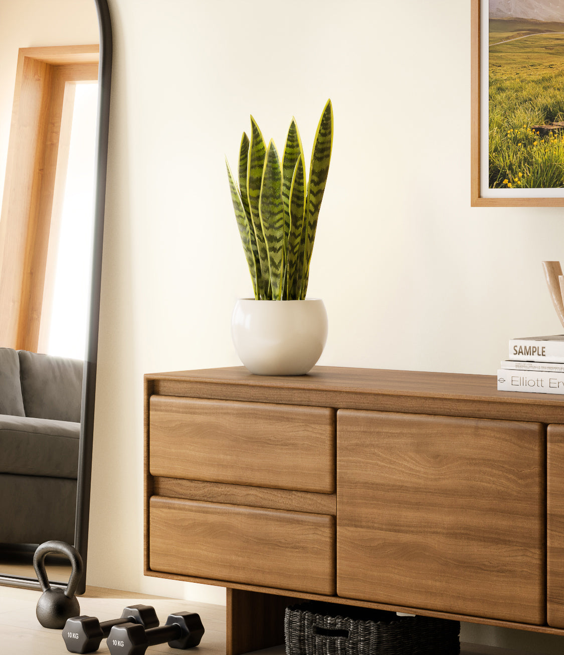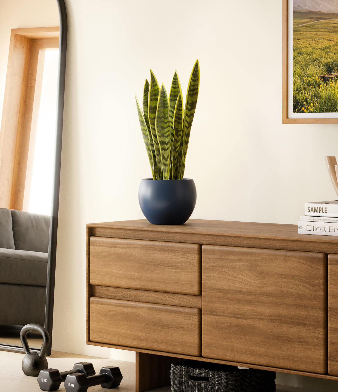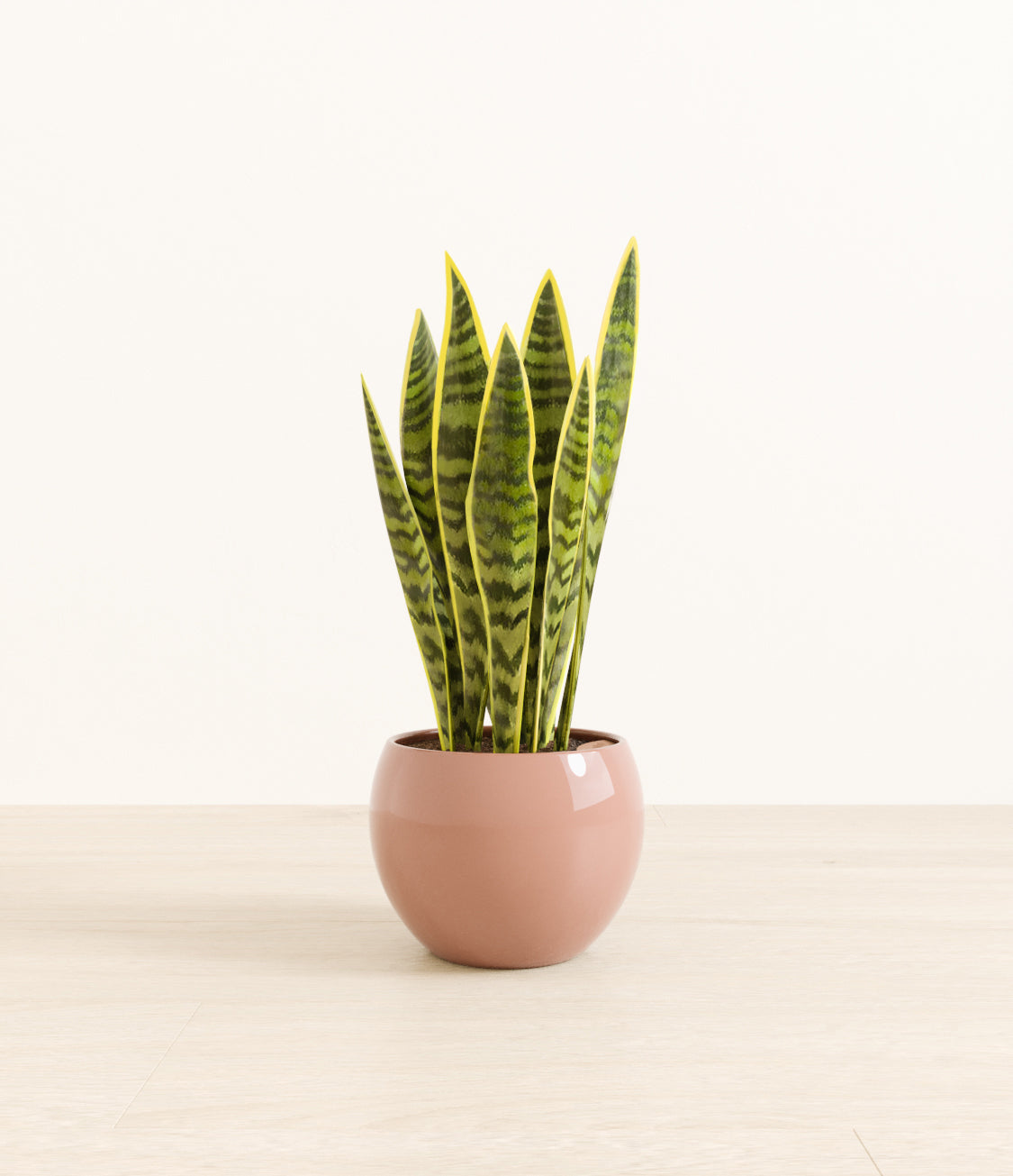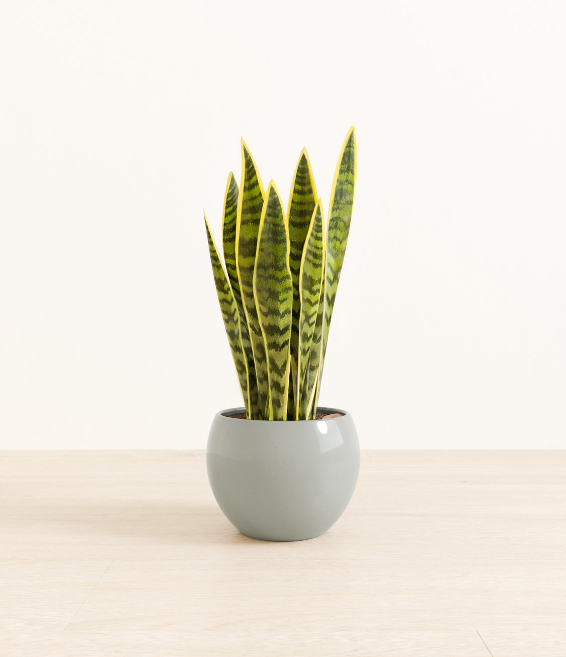 Originating from the desert lands of Africa, Asia, and Madagascar, Snake Plant is the most resilient of all houseplants and thrives under any condition - including the most forgetful of plant lovers. Its tall and narrow sword-shaped leaves wear a vibrant green edged with streaks of sunshine, ever so elegantly stealing the show. Not only is it easy on the eyes, Golden Snake Plant is a master air-purifier, removing allergens and toxins from the air we breathe, so keeping it goes a long way for our health.