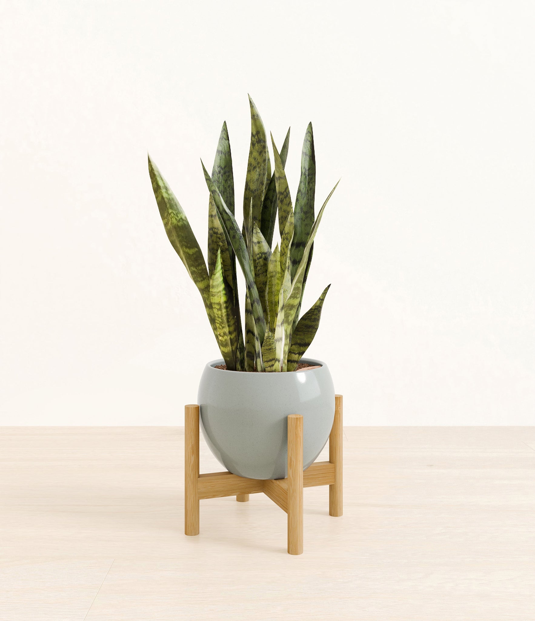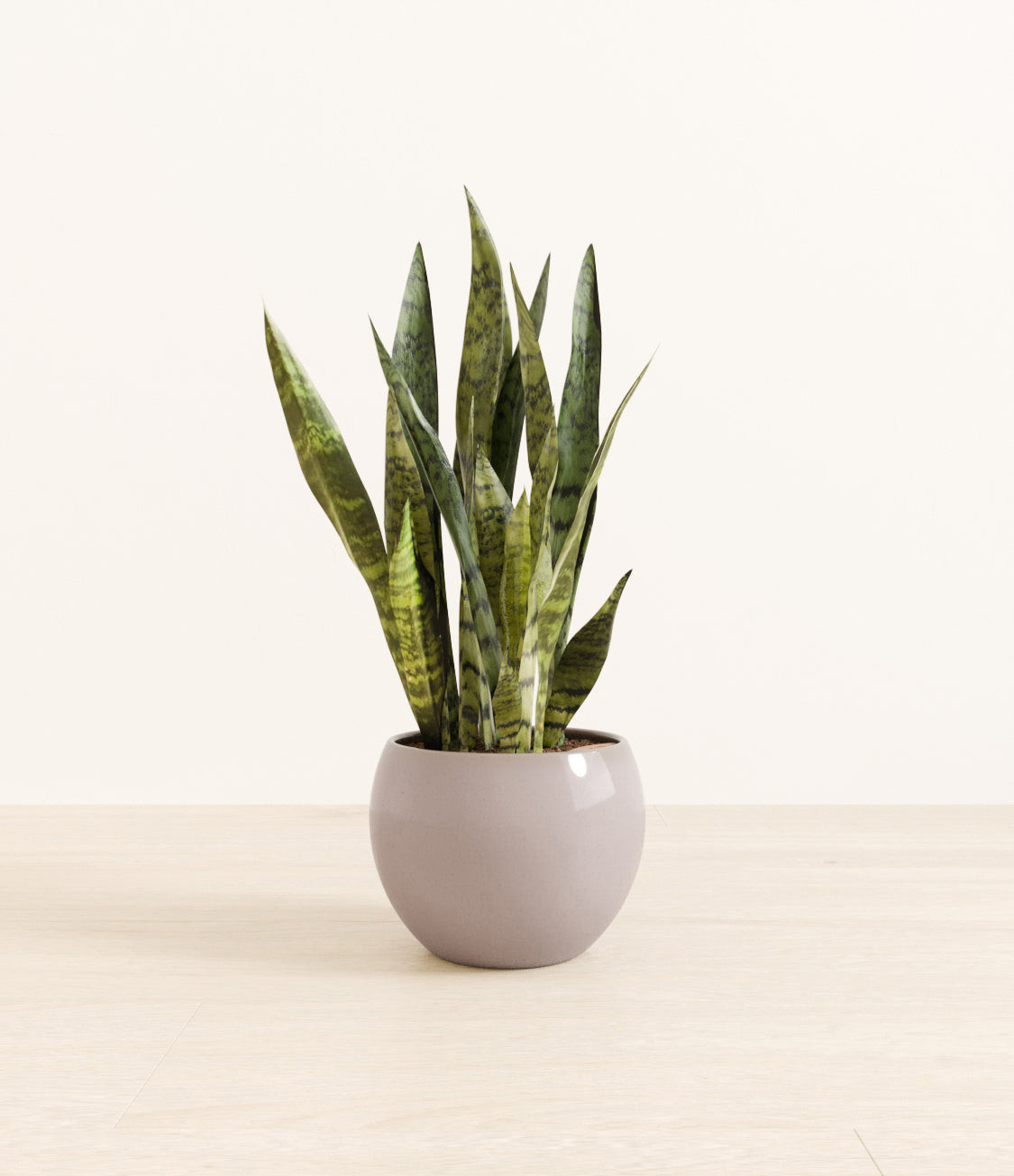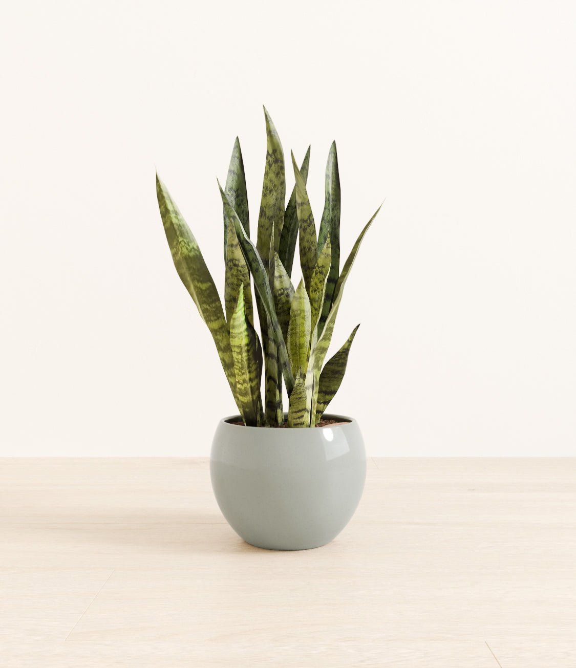 Originating from the desert lands of Africa, Asia, and Madagascar, Snake Plant is the most resilient of all houseplants and thrives under any condition - including the most forgetful of plant lovers. Its tall and narrow sword-shaped leaves wear mesmerizing swatches of silver and sage contrasting against a deep forest green, ever so elegantly stealing the show. Not only is it easy on the eyes, Green Snake Plant is a master air-purifier, removing allergens and toxins from the air we breathe, so keeping it goes a long way for our health.