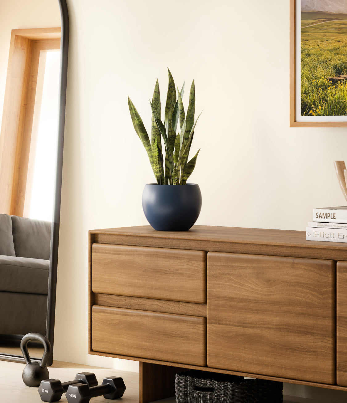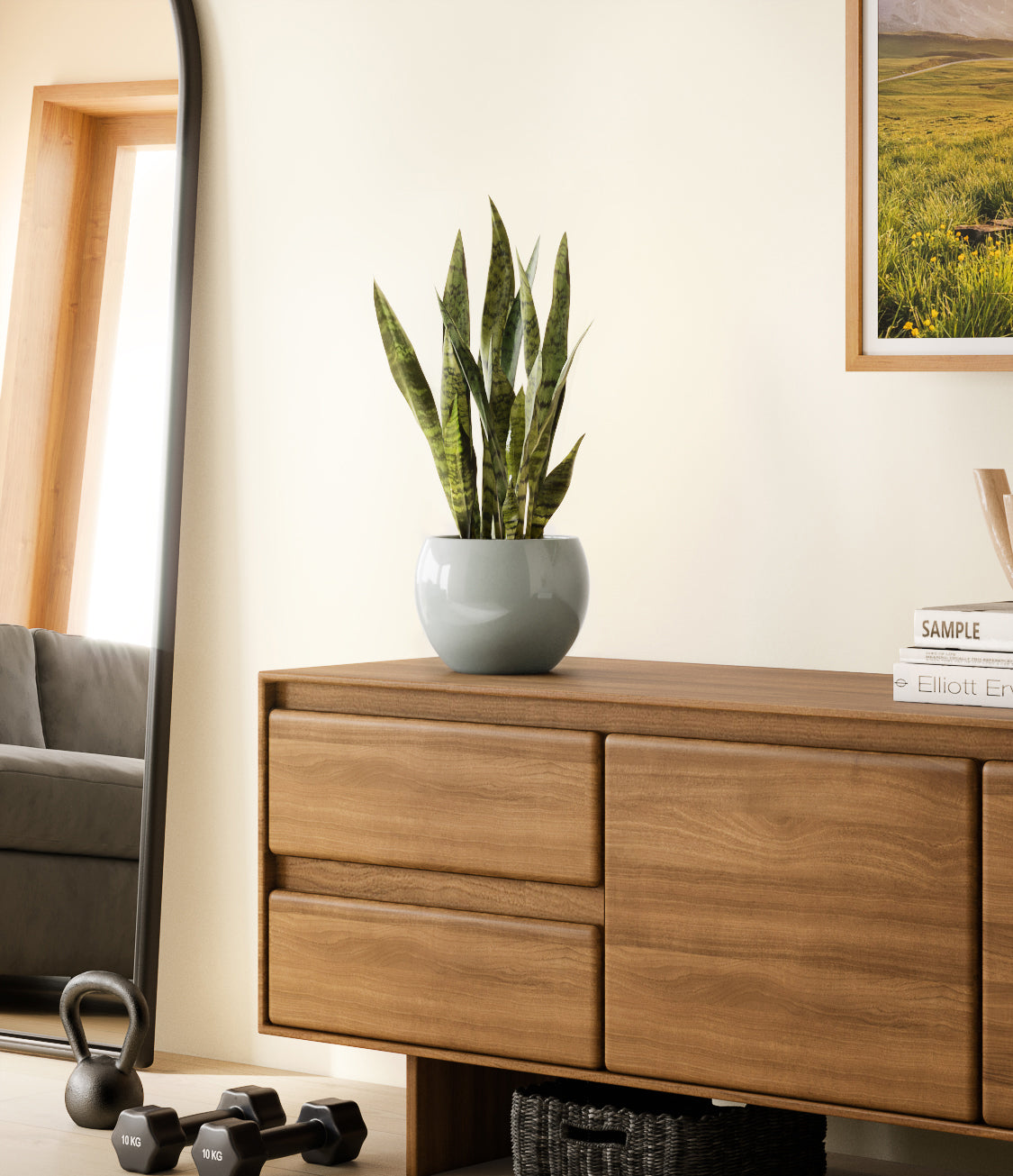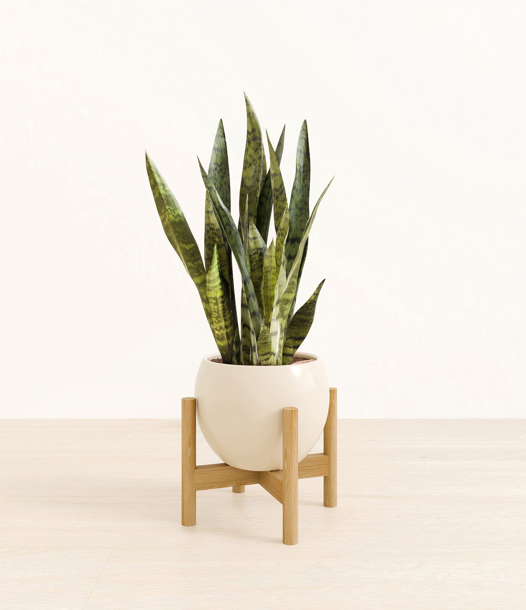 Originating from the desert lands of Africa, Asia, and Madagascar, Snake Plant is the most resilient of all houseplants and thrives under any condition - including the most forgetful of plant lovers. Its tall and narrow sword-shaped leaves wear mesmerizing swatches of silver and sage contrasting against a deep forest green, ever so elegantly stealing the show. Not only is it easy on the eyes, Green Snake Plant is a master air-purifier, removing allergens and toxins from the air we breathe, so keeping it goes a long way for our health.