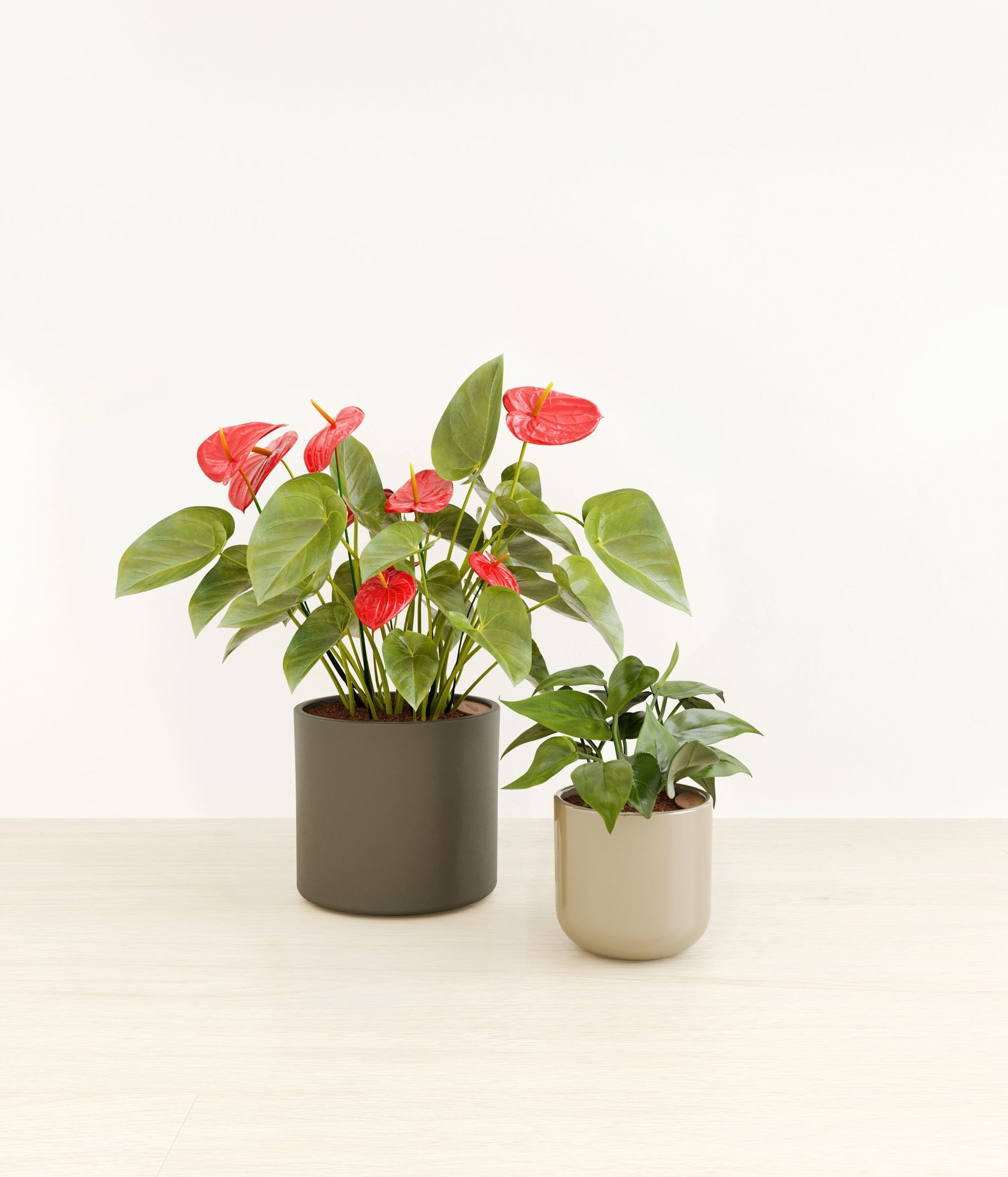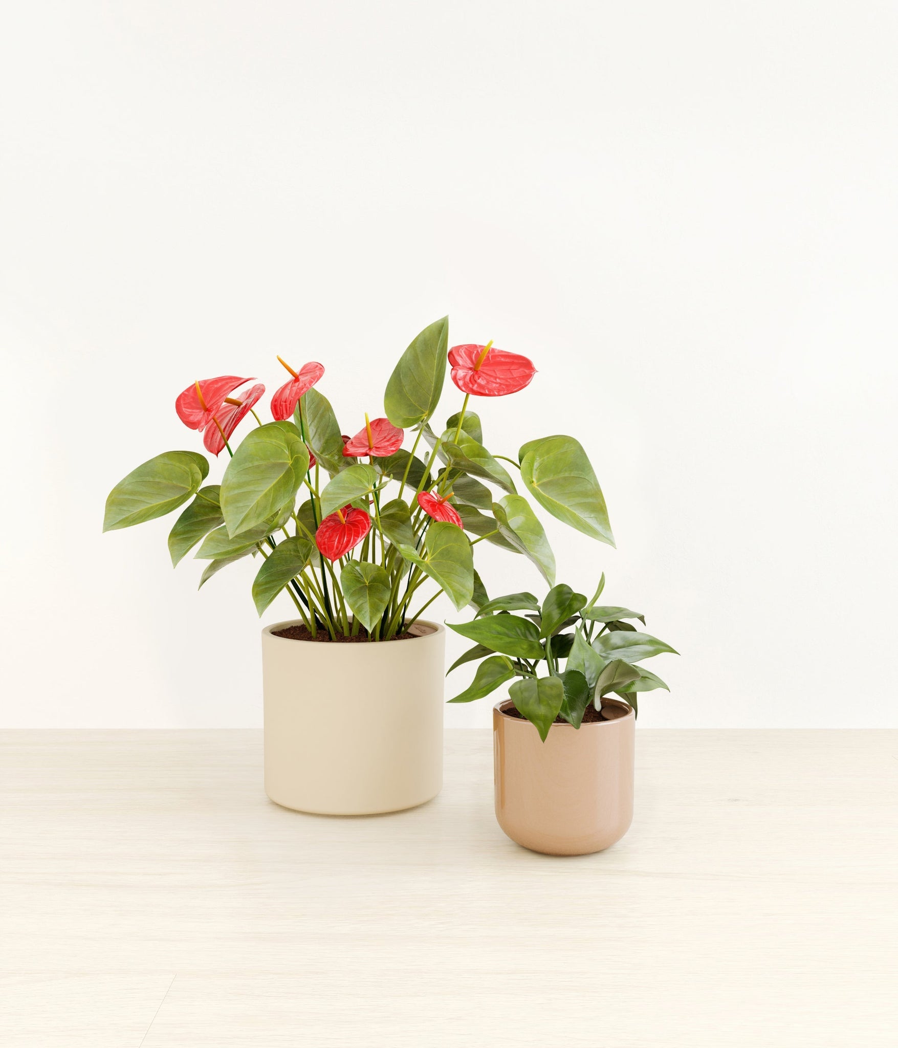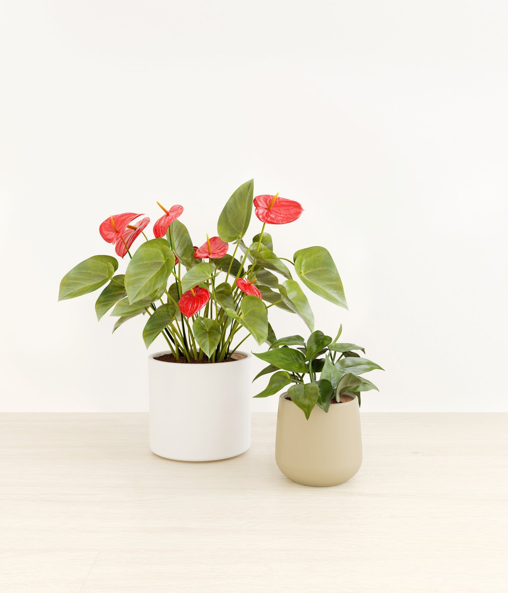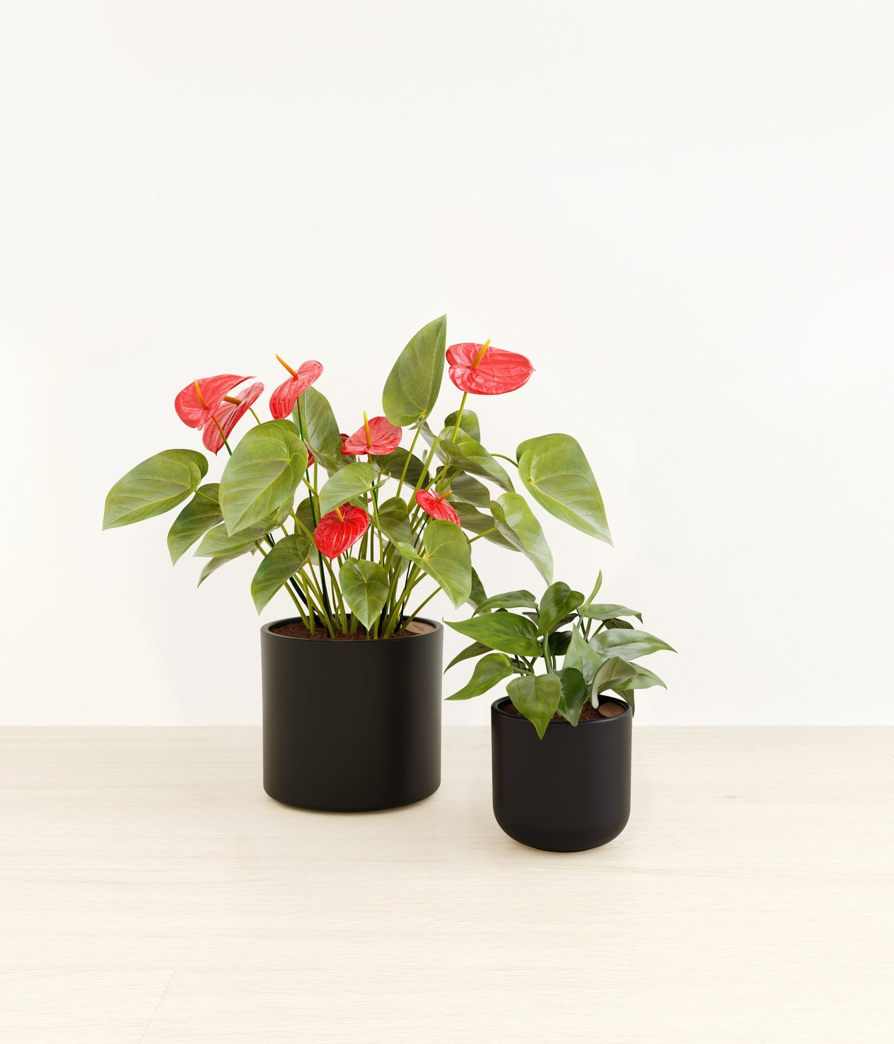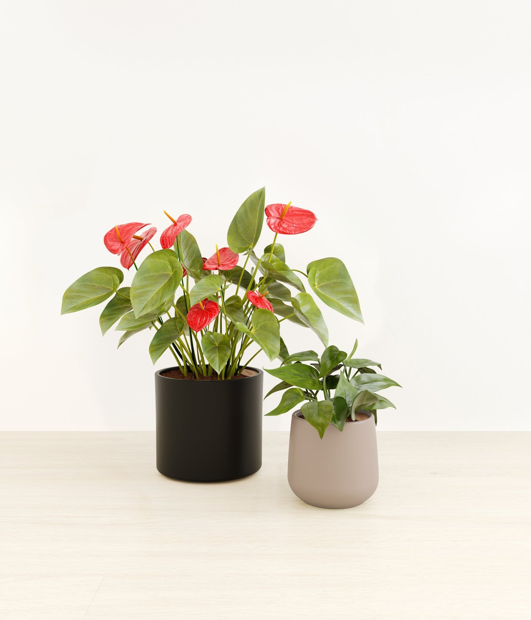 In this collection, you’ll receive a delightful duo of houseplants that adds a touch of charm and allure to any space. The assortment includes a small Heartleaf Philodendron – known for its glossy heart-shaped leaves that trail to its heart’s content; and a medium Red Anthurium – a stunning plant that brings out the best and brightest in any space it inhabits with its vibrant, heart-shaped waxy leaves.