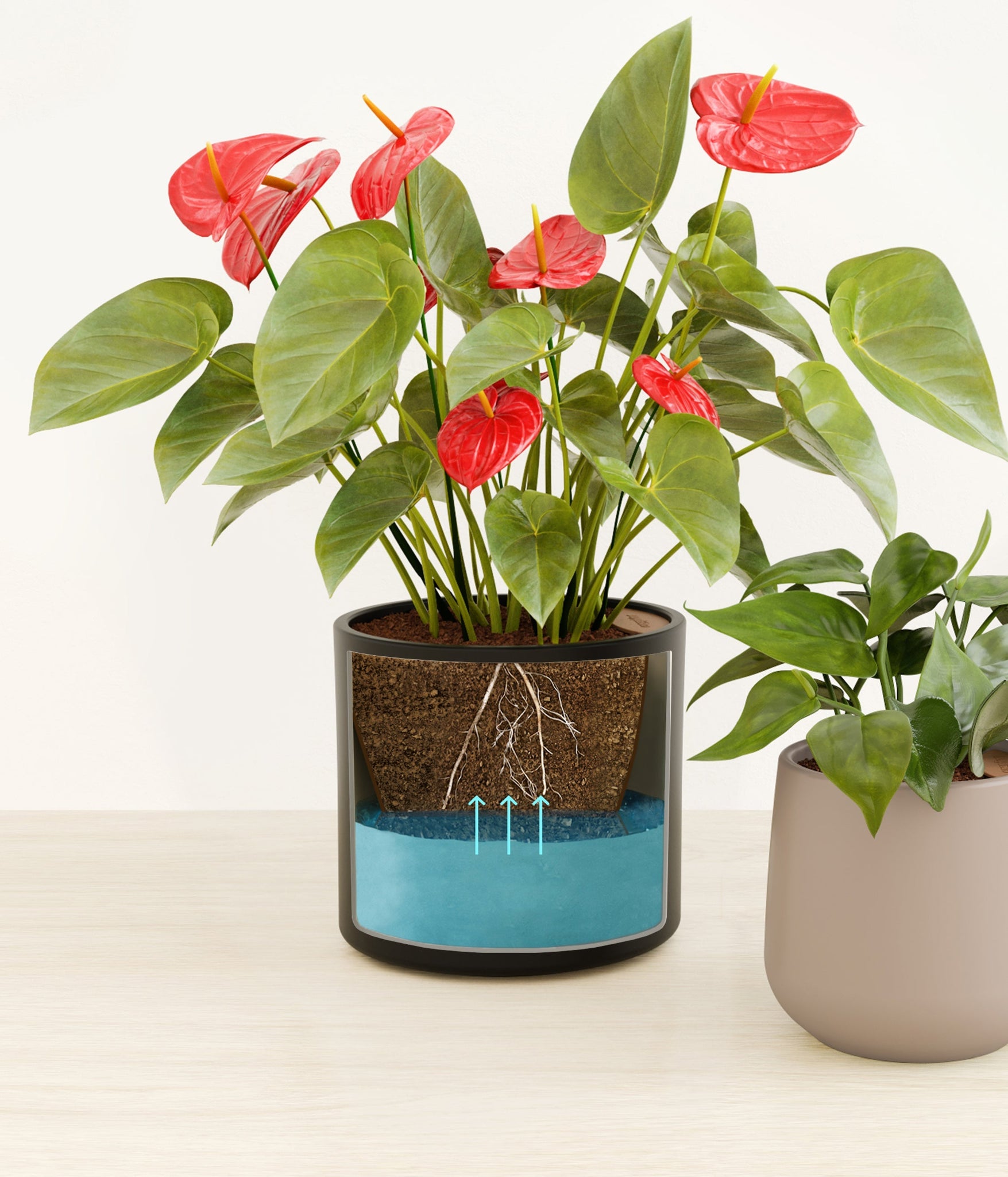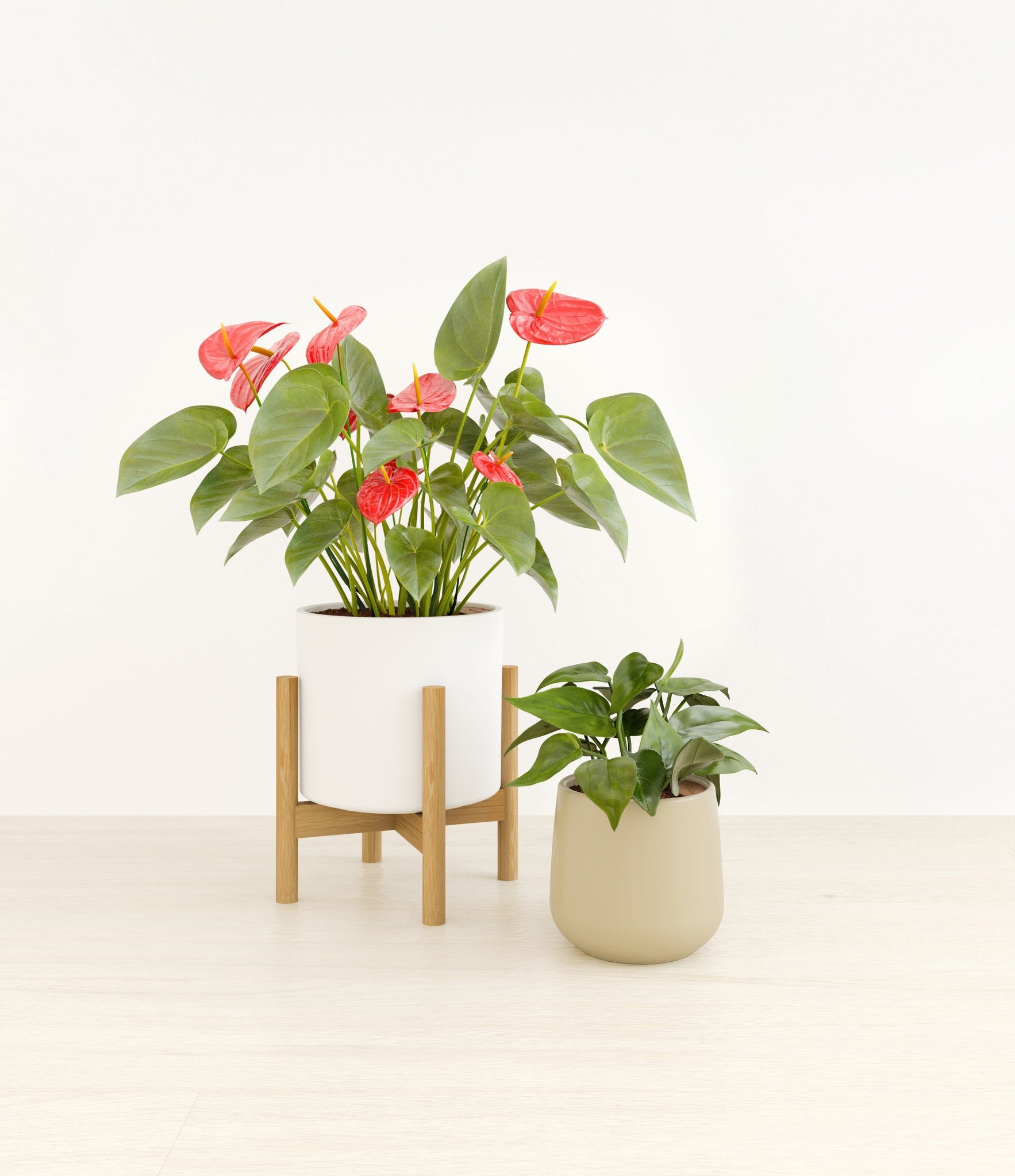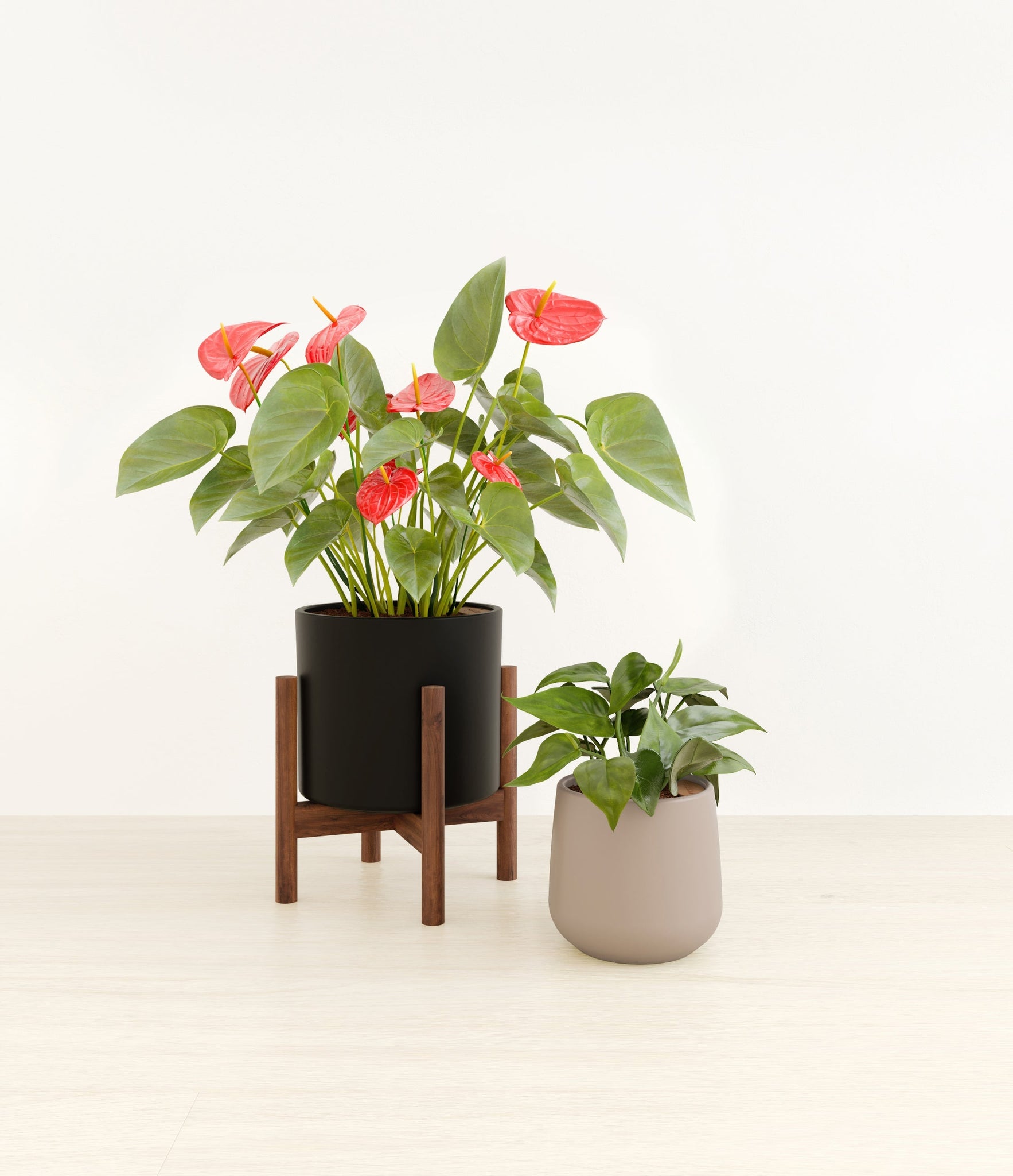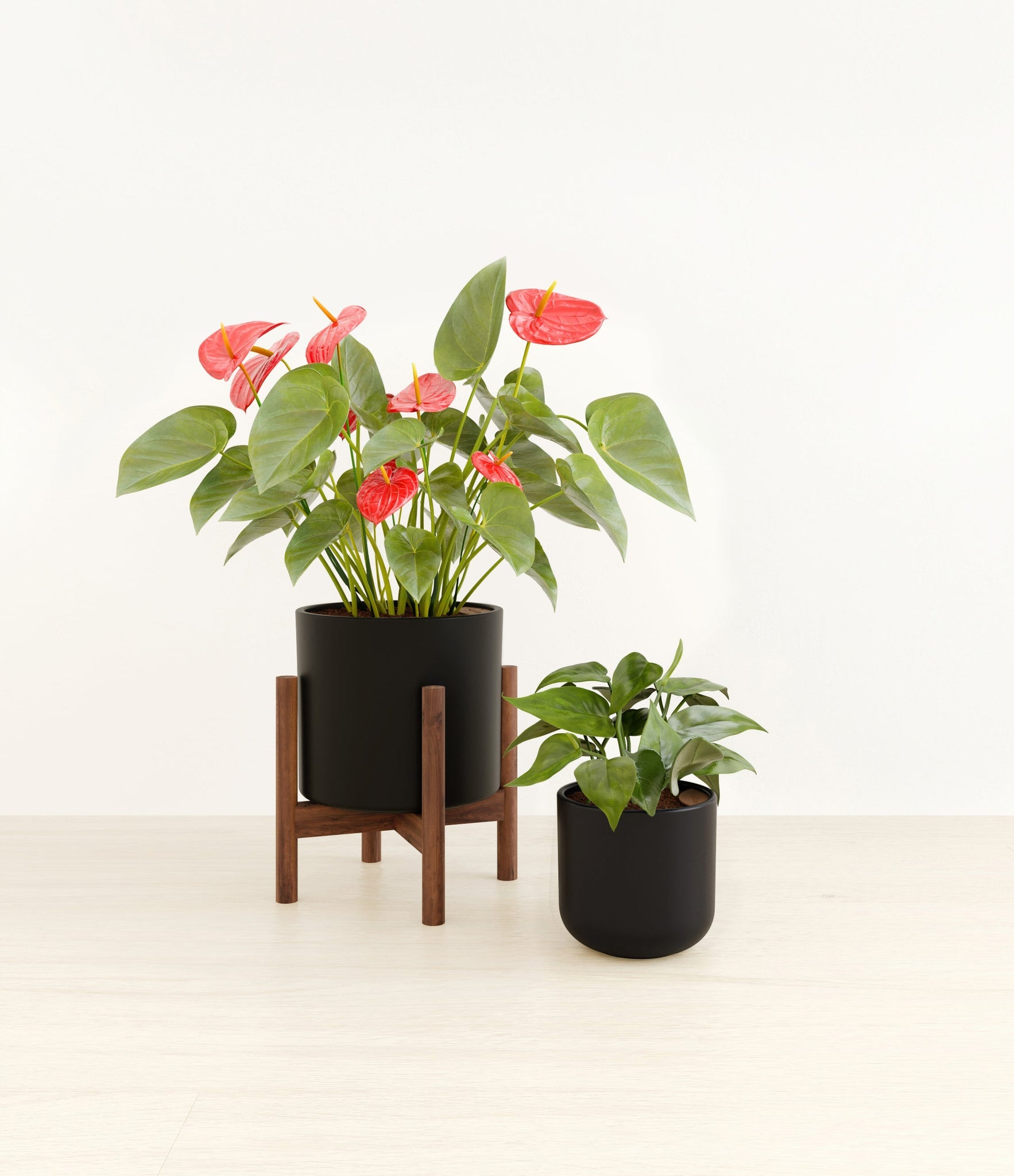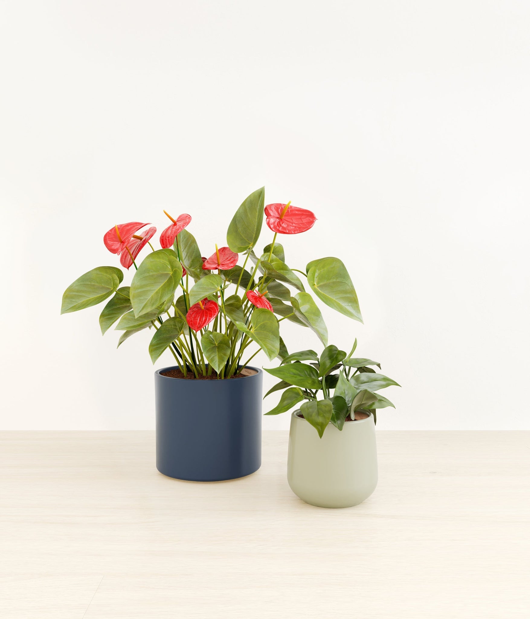 In this collection, you’ll receive a delightful duo of houseplants that adds a touch of charm and allure to any space. The assortment includes a small Heartleaf Philodendron – known for its glossy heart-shaped leaves that trail to its heart’s content; and a medium Red Anthurium – a stunning plant that brings out the best and brightest in any space it inhabits with its vibrant, heart-shaped waxy leaves.