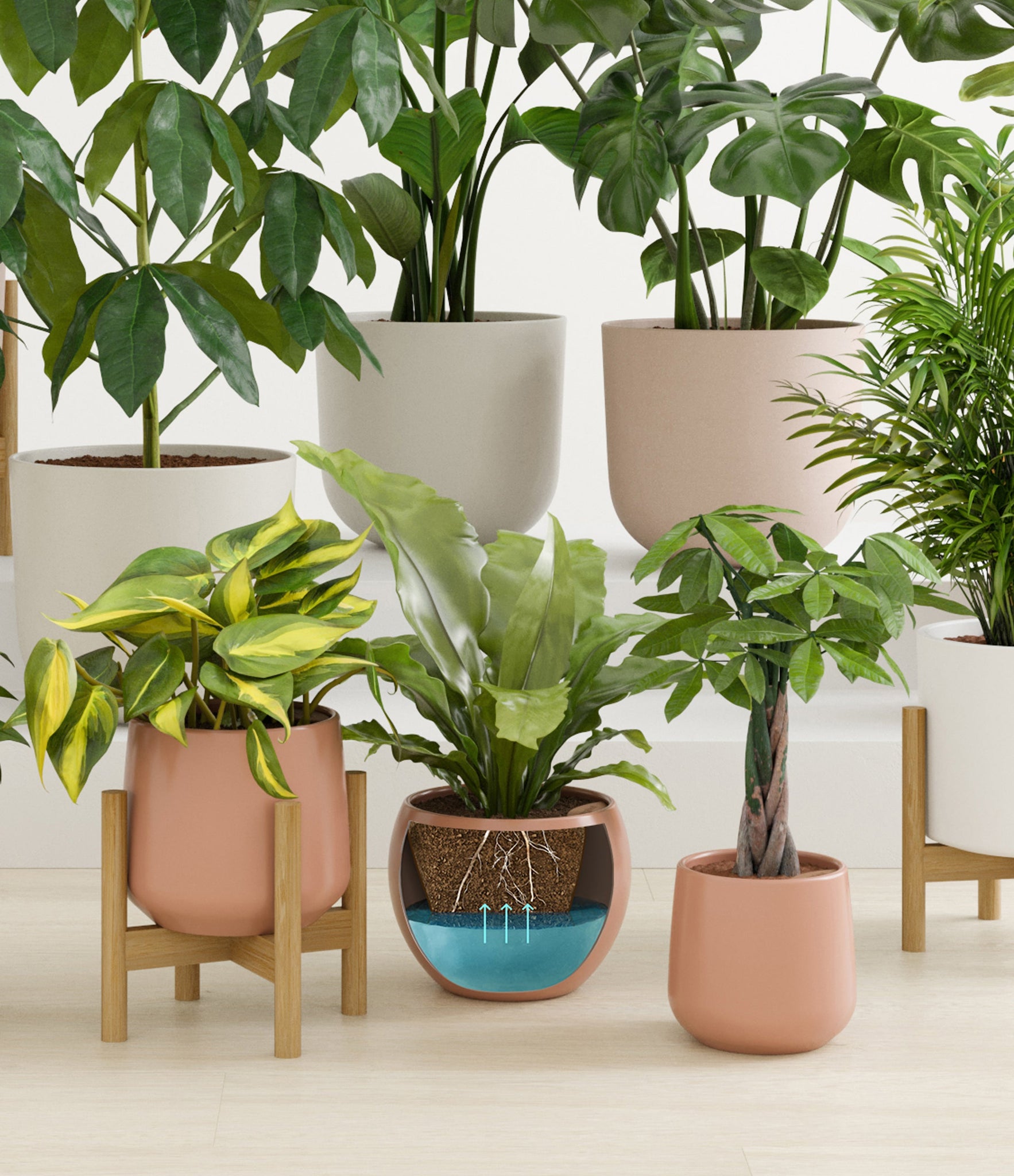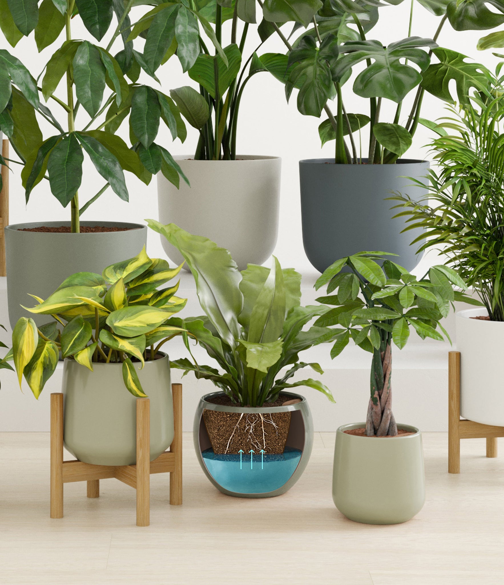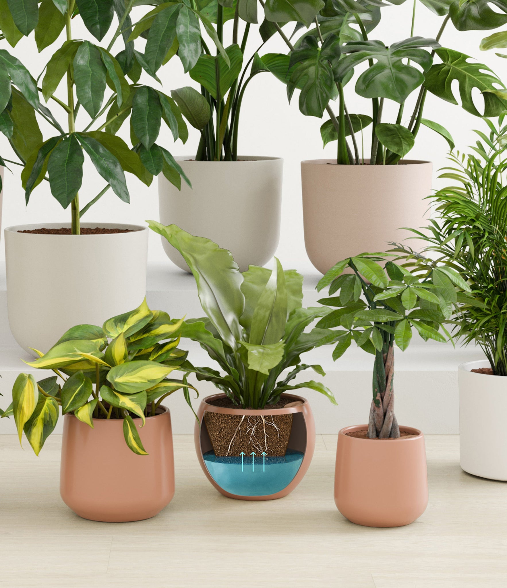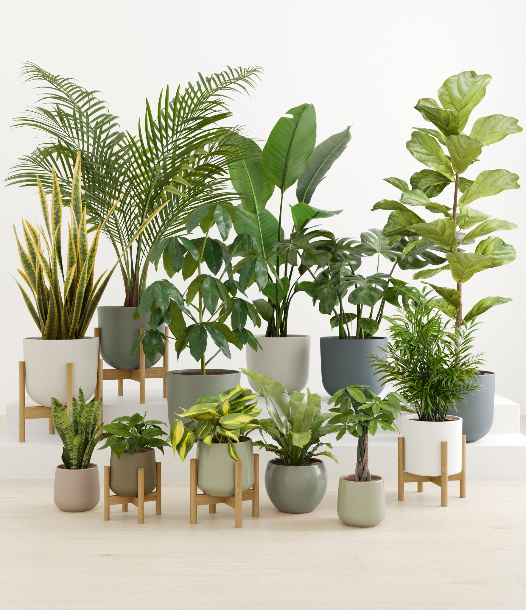 The set includes a small Money Tree symbolizing good fortune and prosperity; a small Heartleaf Philodendron wearing glossy heart-shaped foliage; a small Green Snake plant with mesmerizing swatches of silver and sage; a medium Parlor Palm – a must-have centerpiece; a medium Birds’ Nest Fern bursting with wavy fronds; a medium Philodendron Brazil covered in lime-colored variegation; a large Schefflera Amate that adds a perfect touch of the tropics to any space; a large Golden Snake plant with tall, narrow leaves; a large Monstera Deliciosa with breathtakingly foliage; a huge Majesty Palm with elegant fronds and graceful curves; a huge White Bird of Paradise that playfully hangs like birds in flight; and a huge Fiddle Leaf Fig Bush with massive lyre-shaped leaves.