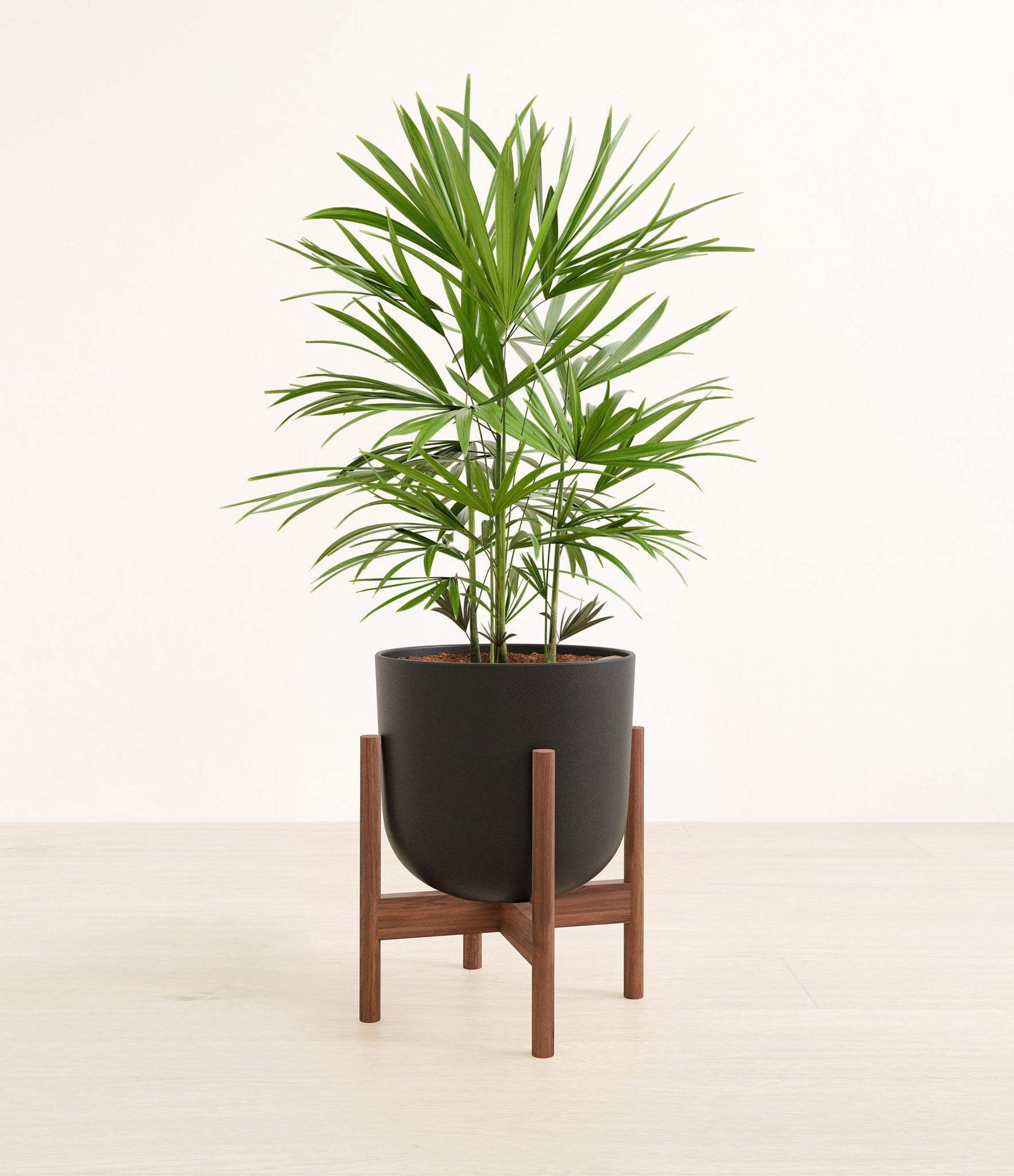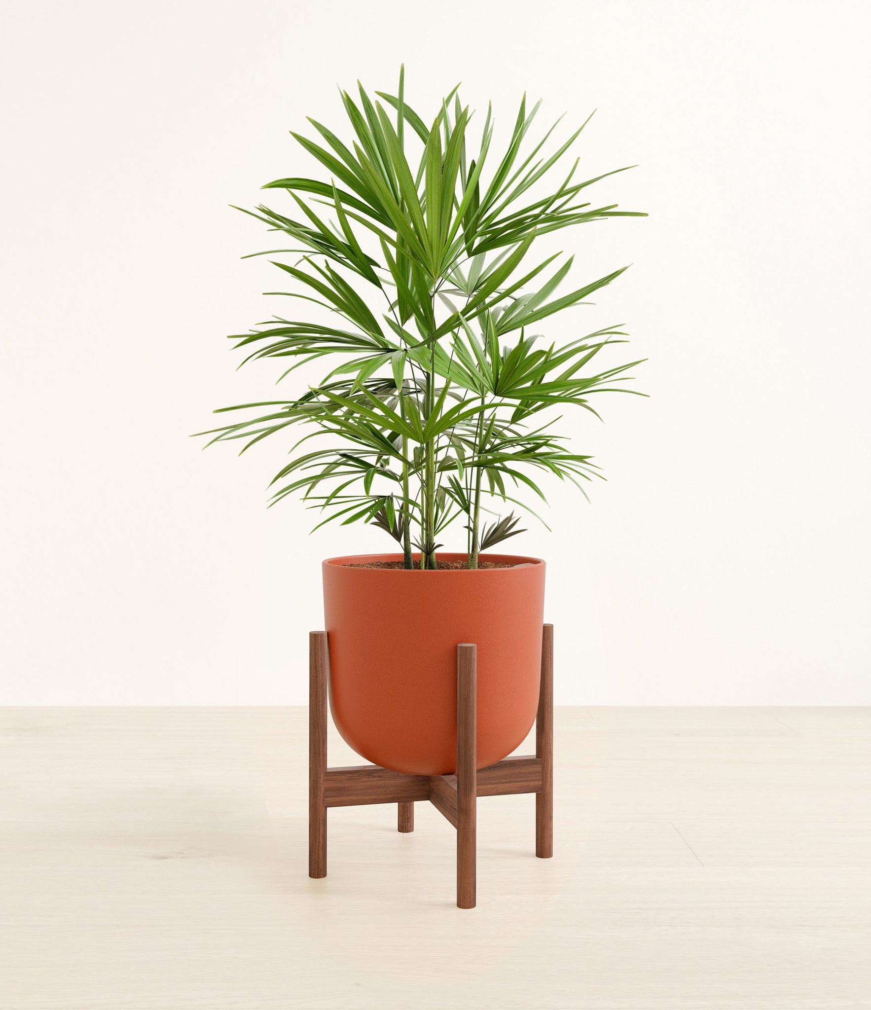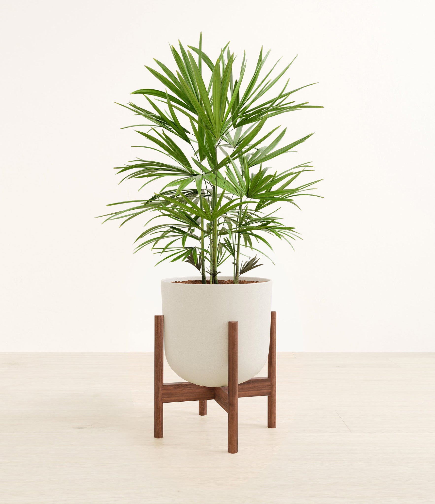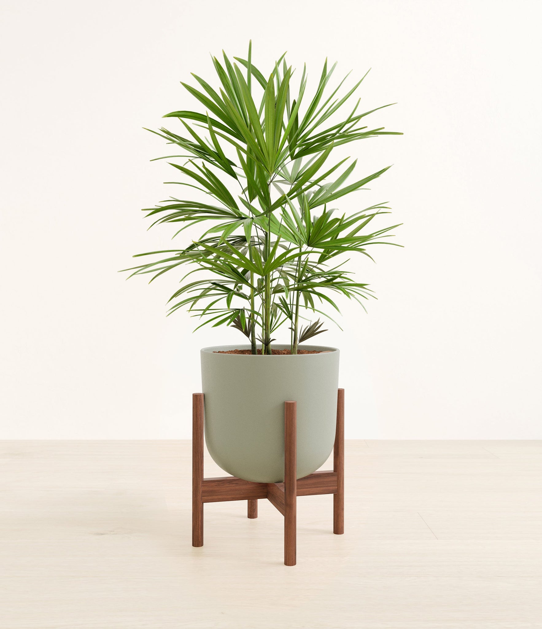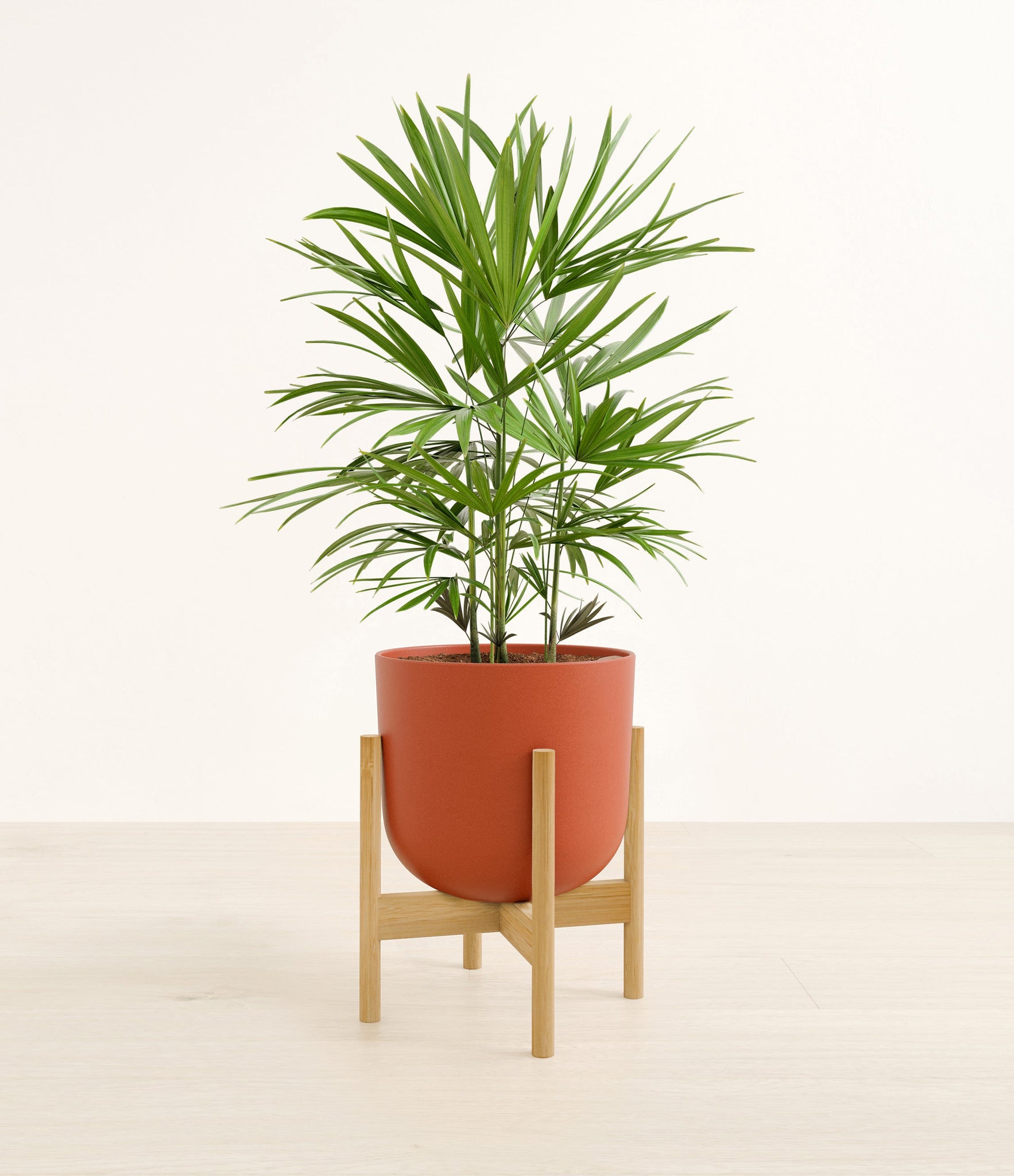Native to the lush, shaded forests of Asia, the Lady Palm (Rhapis excelsa) is distinguished by its broad, fan-shaped foliage. Celebrated for its adaptability to various indoor environments and its exceptional air-purifying qualities, this palm introduces natural sophistication to home and office settings. Its broad, fan-shaped leaves elegantly adapt to any home or office settings. Each frond is divided into wide, glossy segments that emerge from multiple sturdy canes, creating a dense, lush appearance. This palm not only enhances indoor air quality but also adds a structural element to its surroundings, making it a favored plant among those who appreciate both its beauty and its functional benefits.