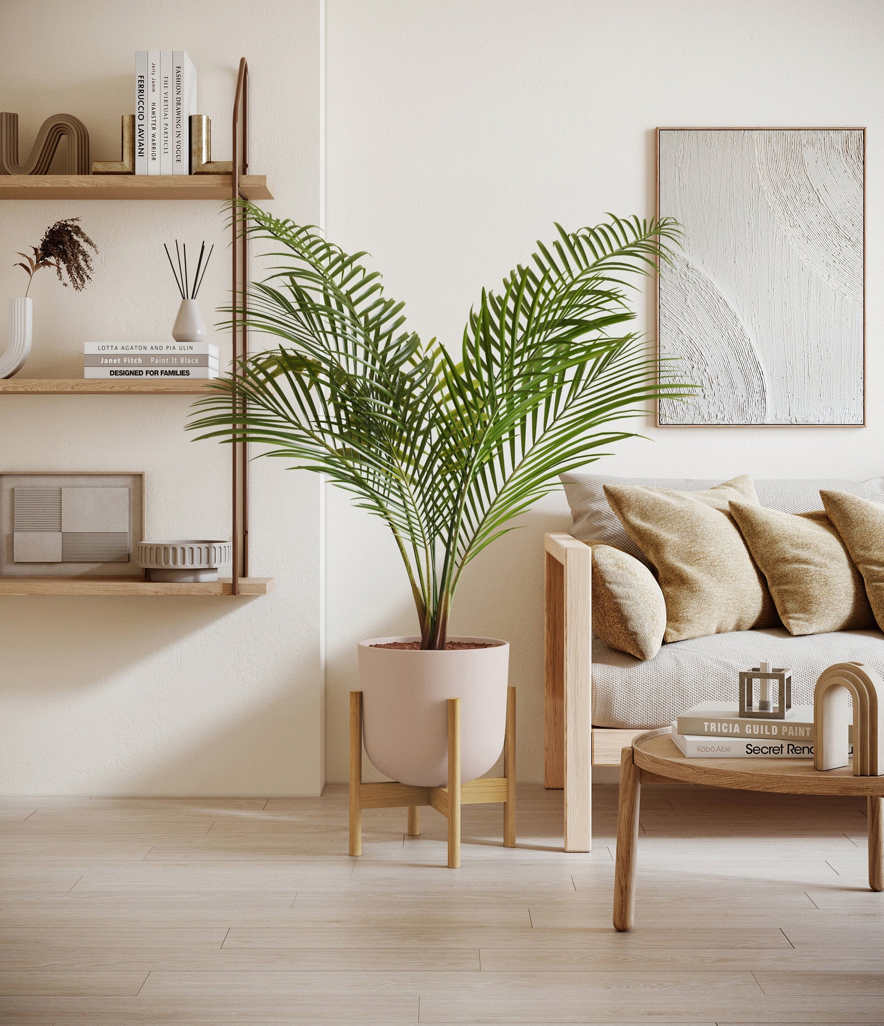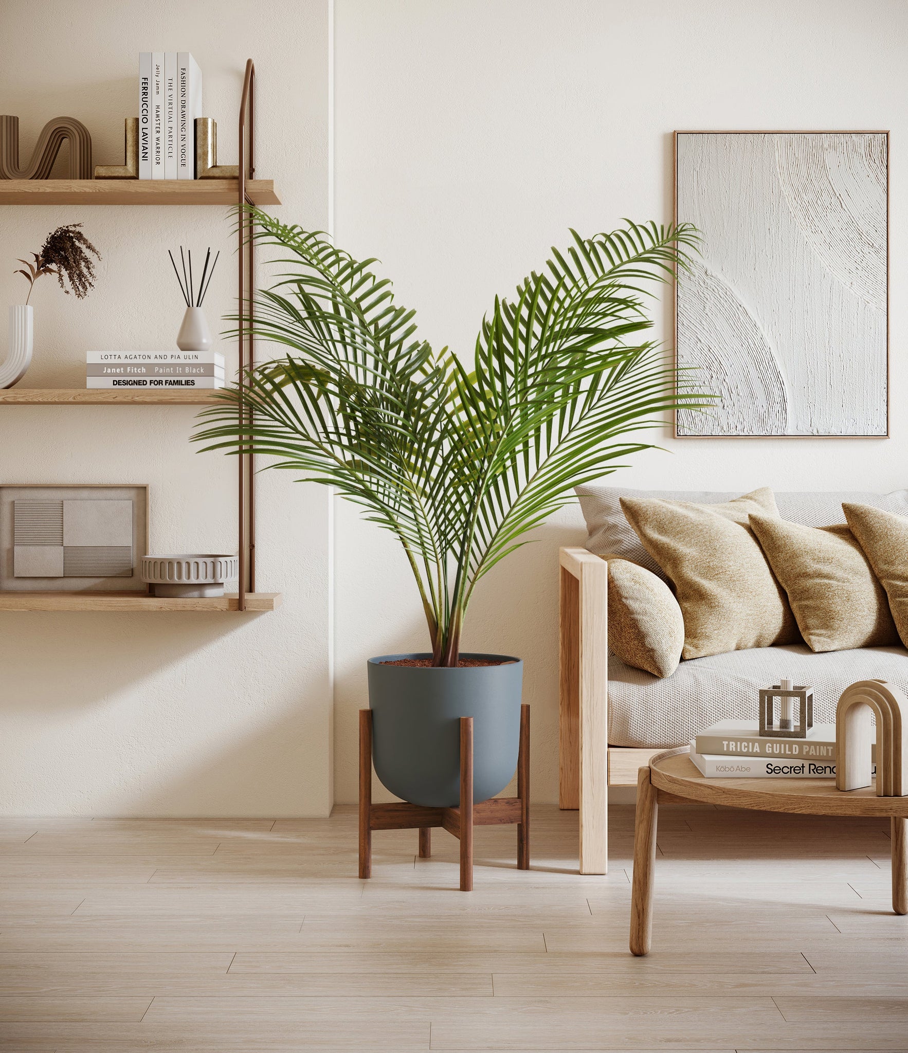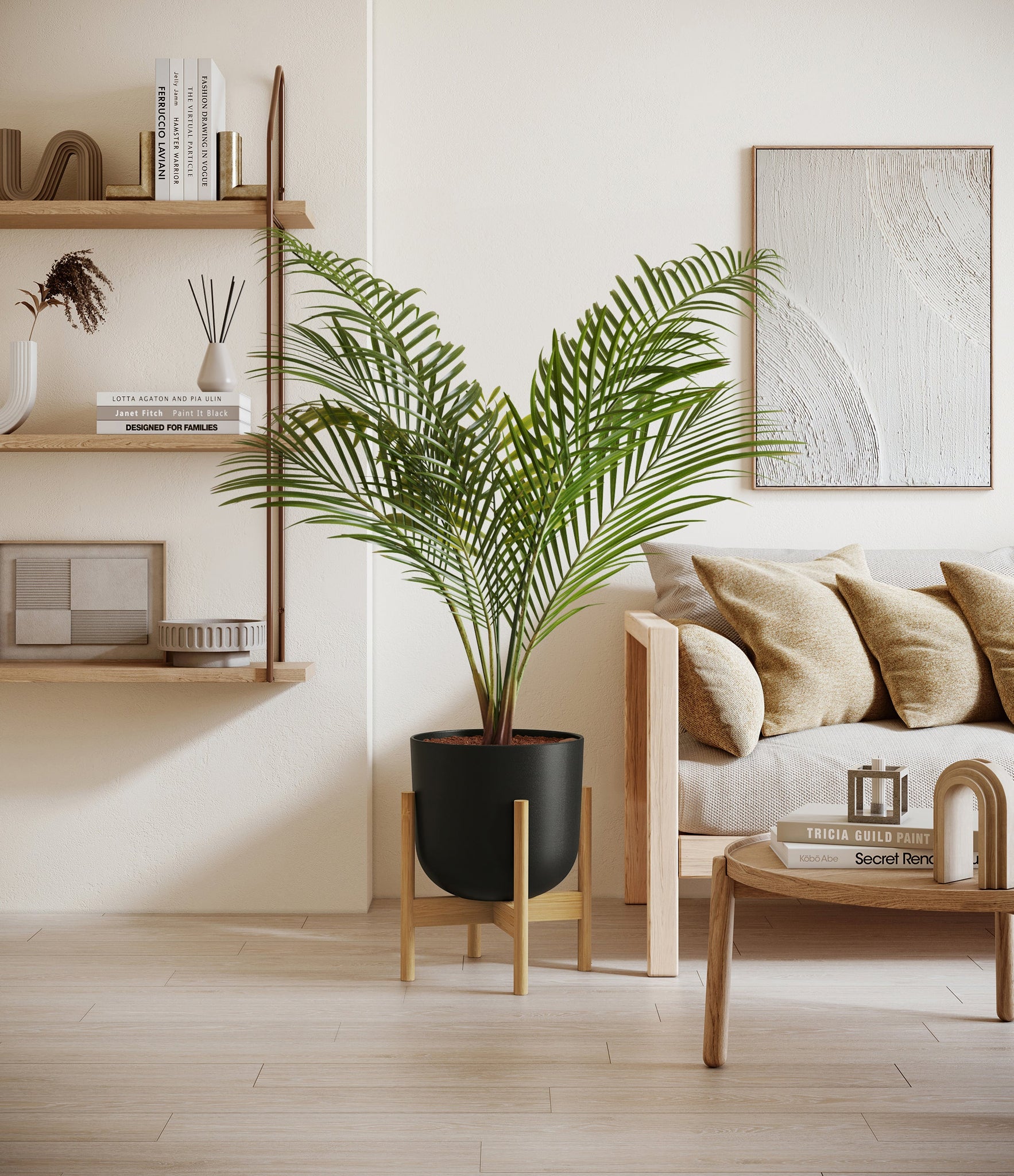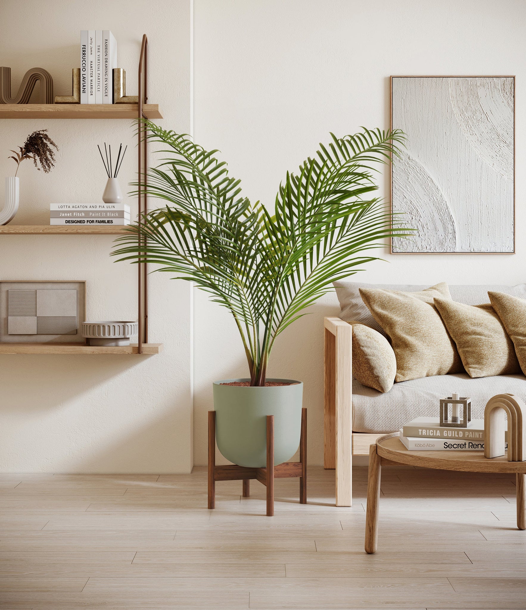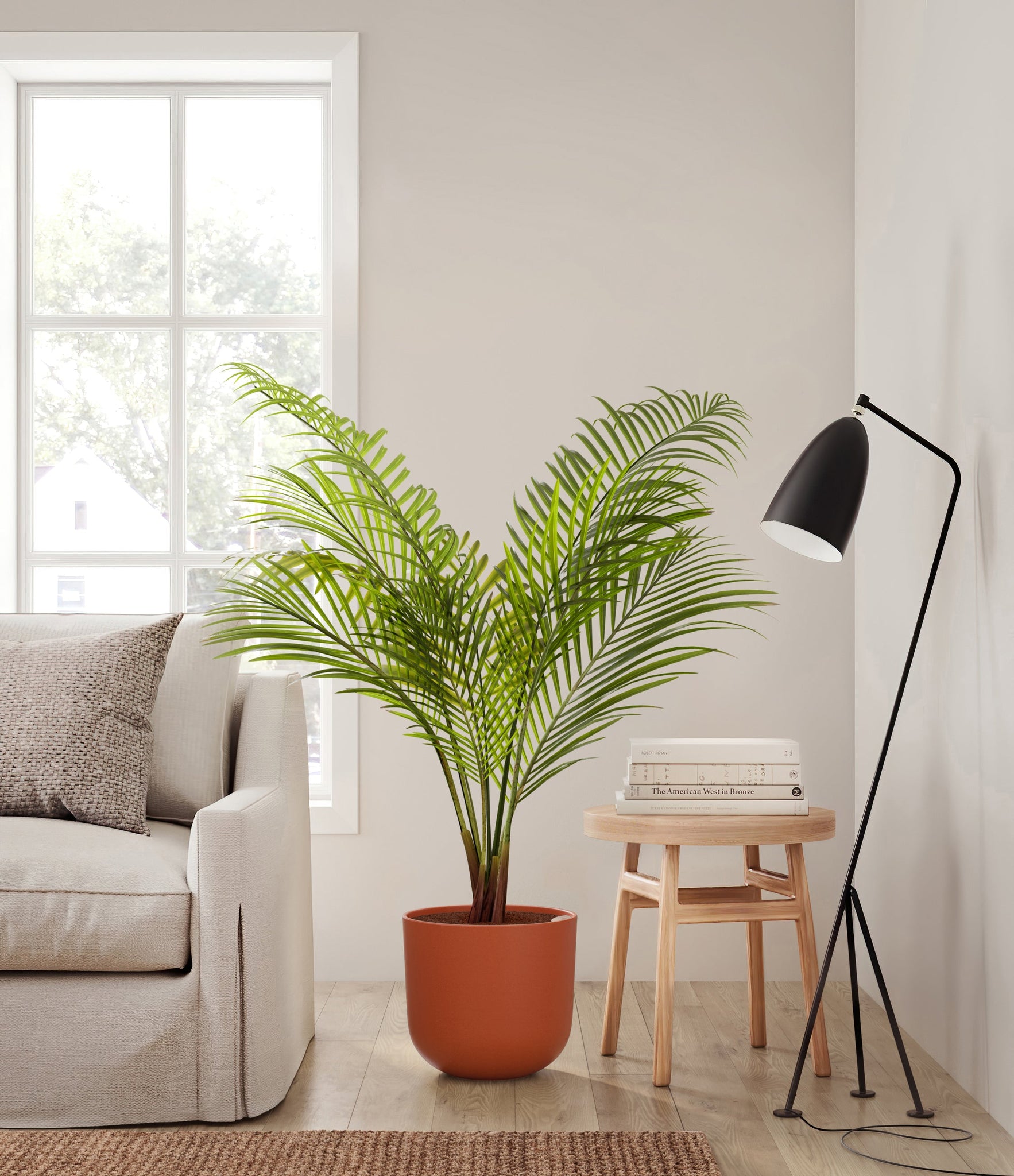 A most rare tropical wonder, Majesty Palm made its way into our homes and hearts from its native wetlands of Madagascar only in the last few years. With elegantly bright green fronds, it gracefully arches and curves to perfectly fill up the space, weaving joy and life into any room.