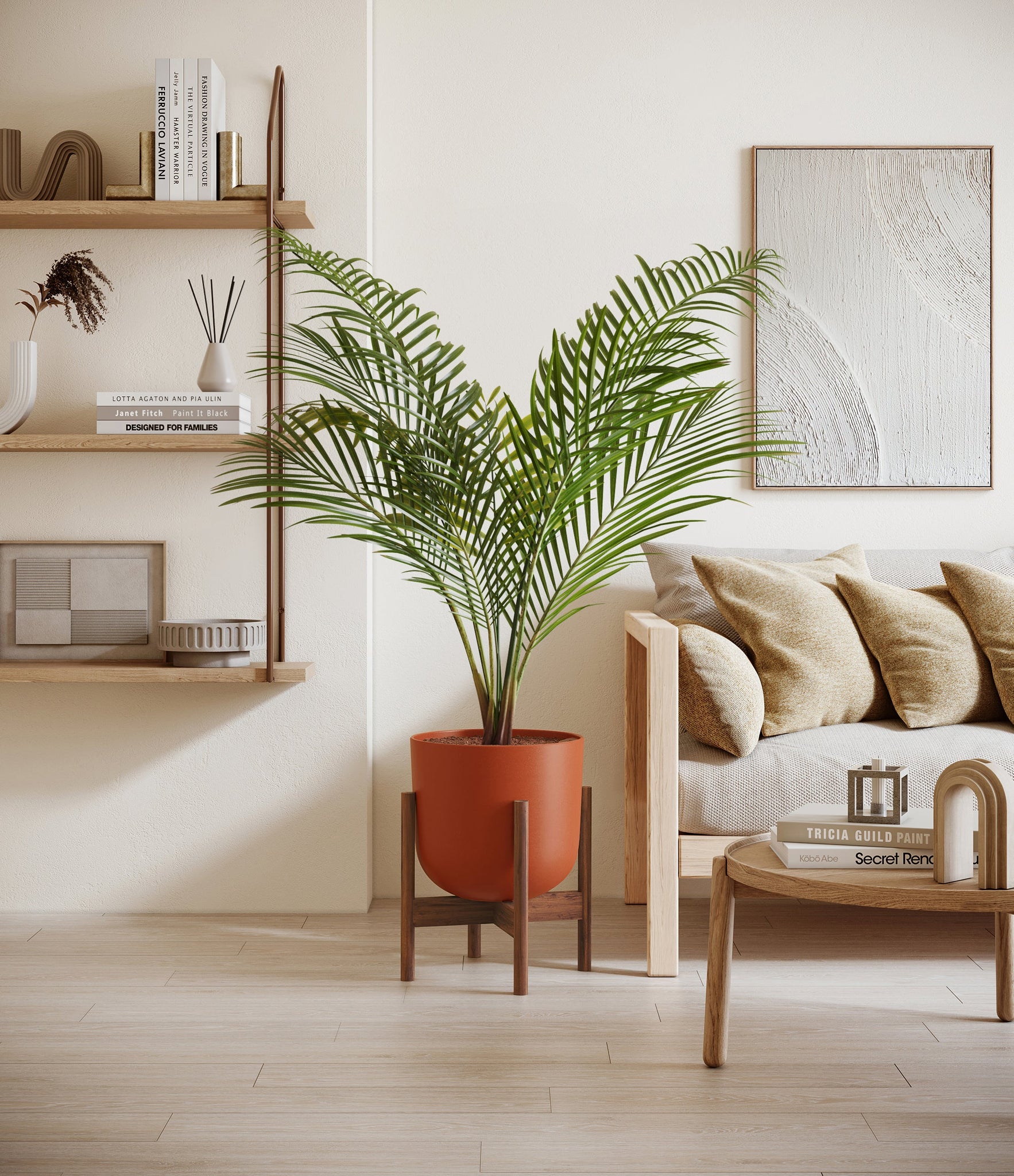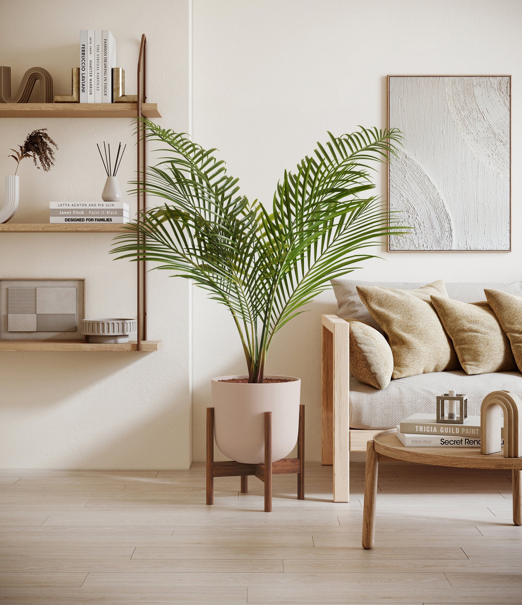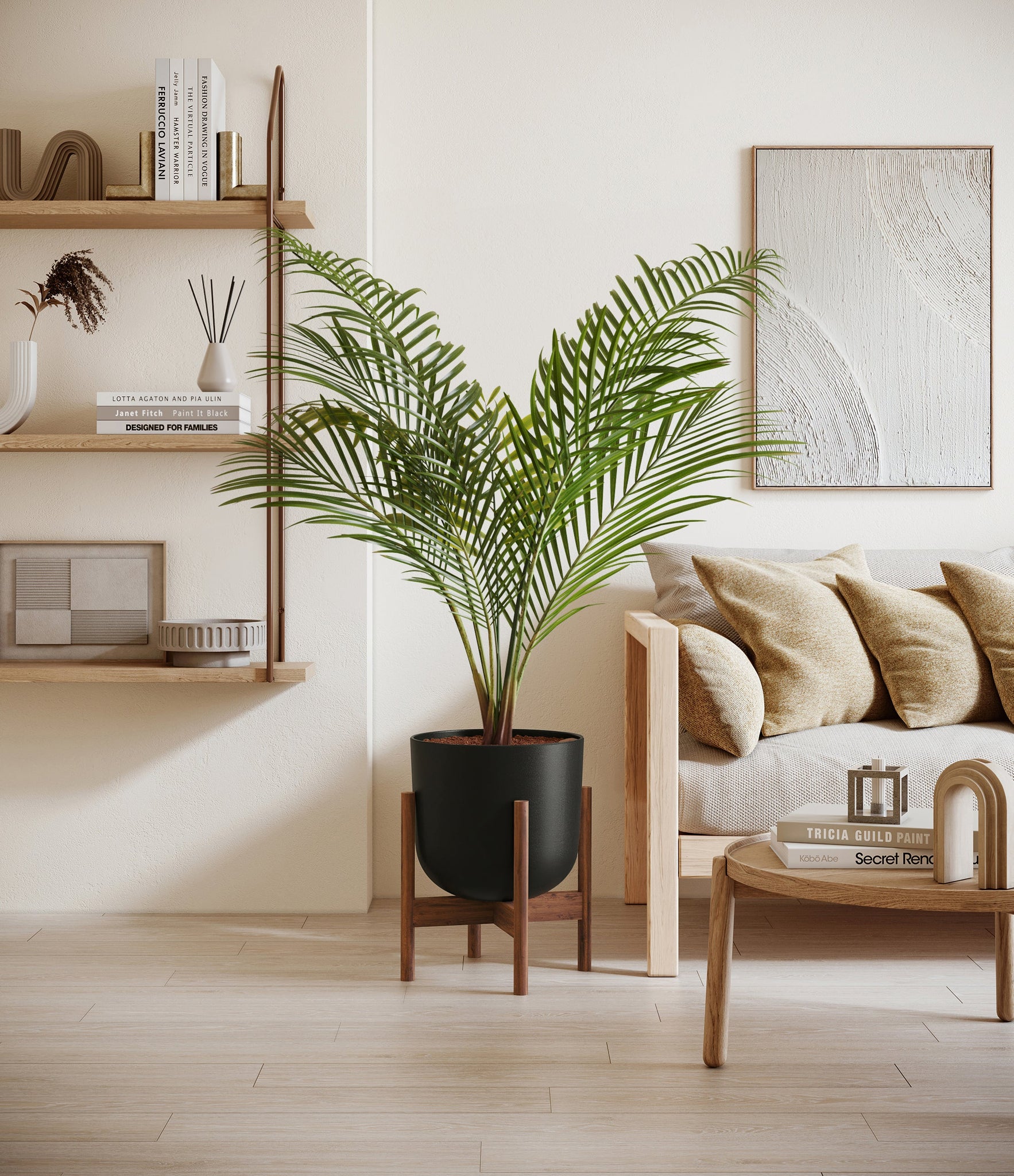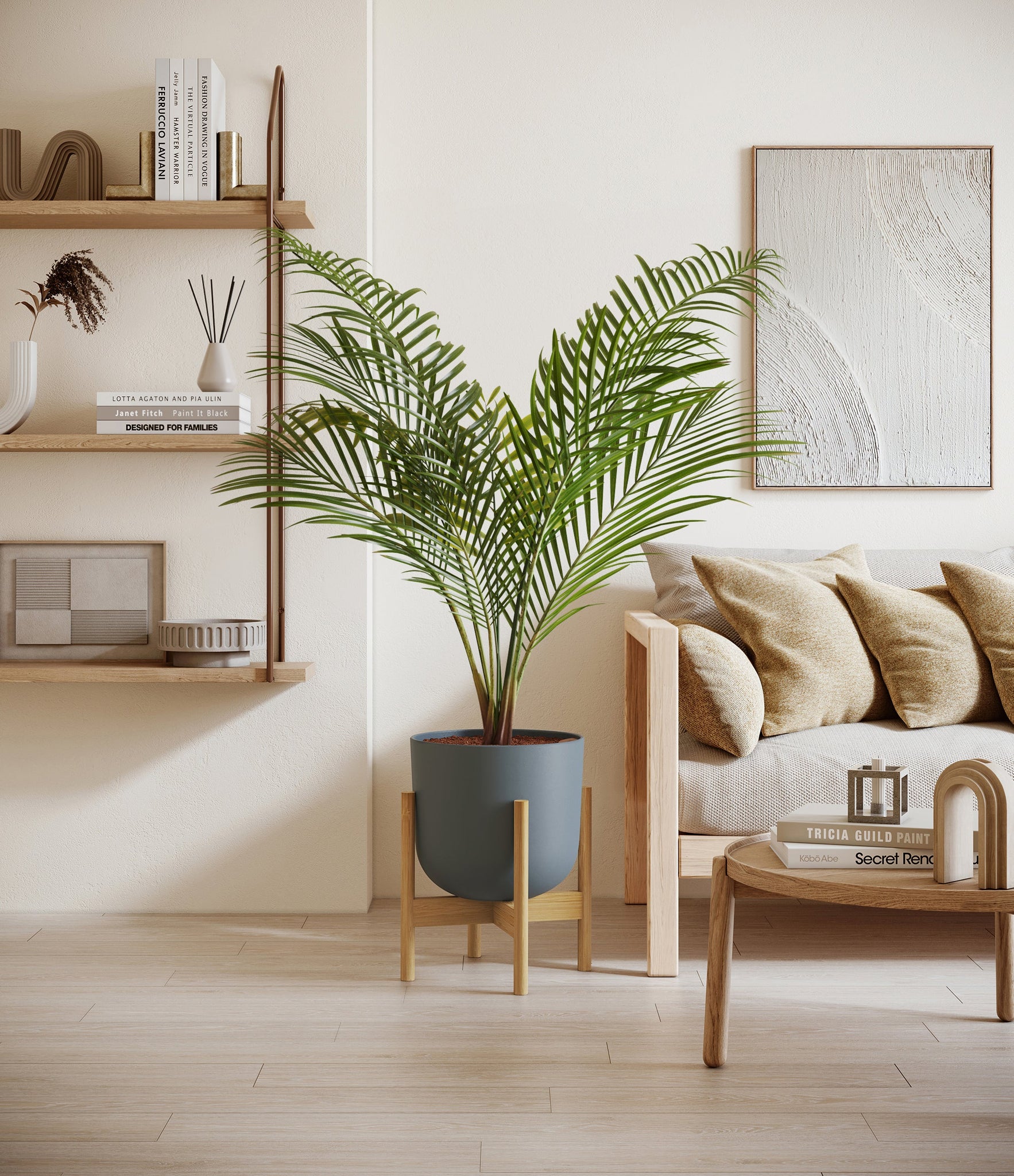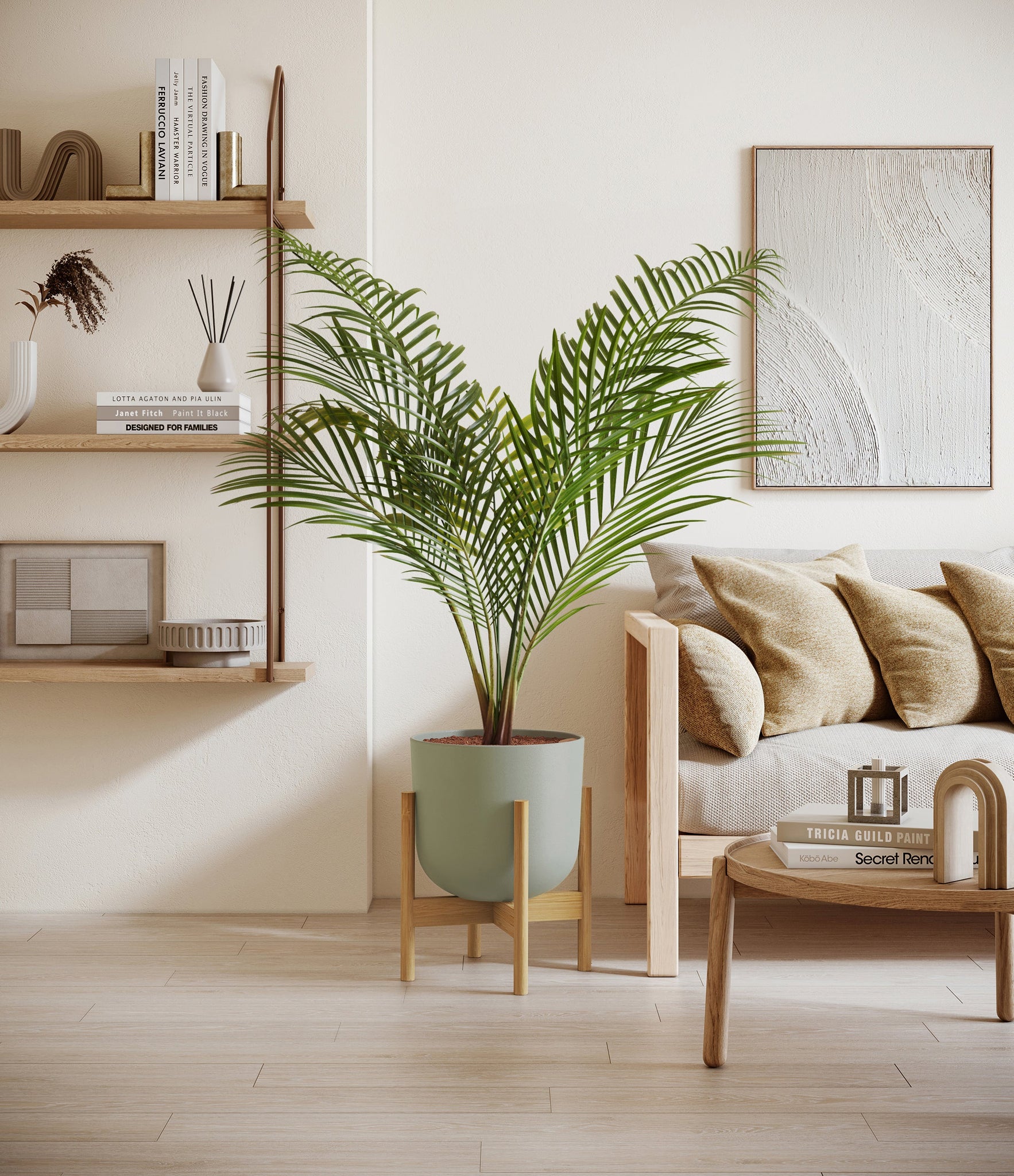 A most rare tropical wonder, Majesty Palm made its way into our homes and hearts from its native wetlands of Madagascar only in the last few years. With elegantly bright green fronds, it gracefully arches and curves to perfectly fill up the space, weaving joy and life into any room.