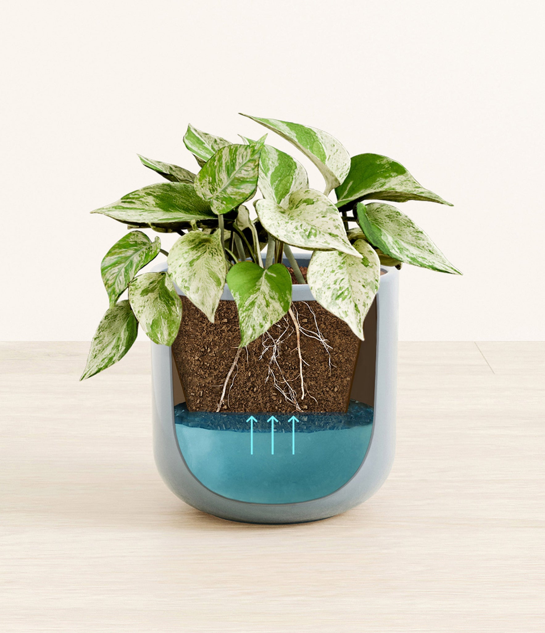 Our love for this natural trailer is as ancient as love itself, earning it the name Pothos - the god of love, who was named after the Greek word for ‘yearning’ and symbolized carrying a vine stretching as far and wide as the heart’s desire. Hailing from the Pacific Islands, Marble Pothos is known for its admirable resilience and graceful vines, and wears a royal pattern of marbled minty green that adds a sparkle anywhere it goes.