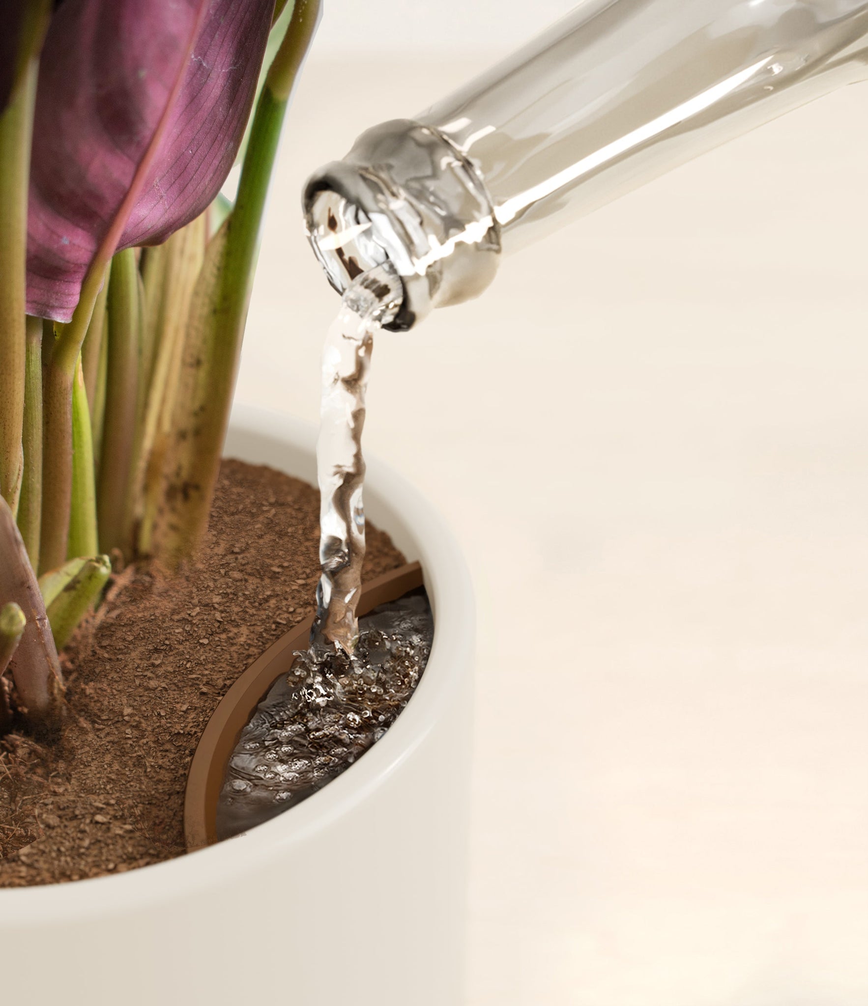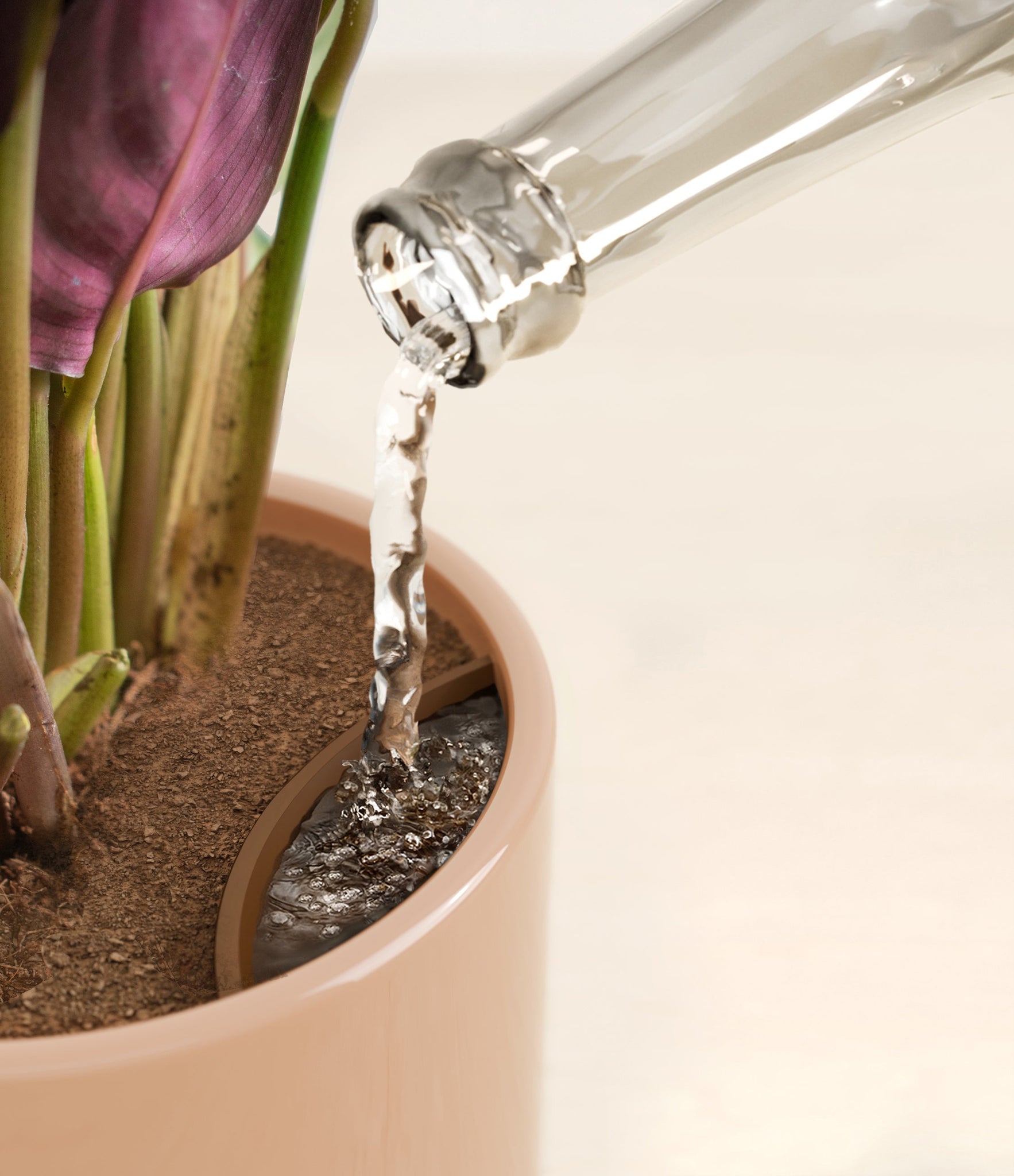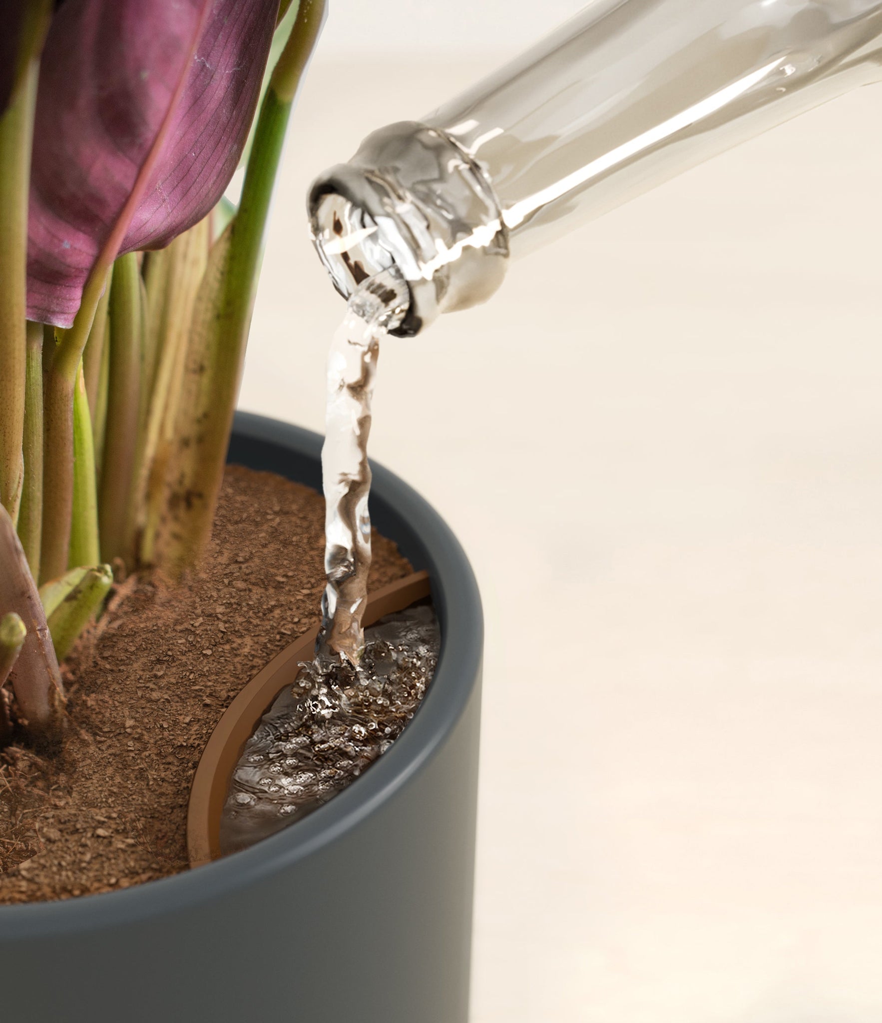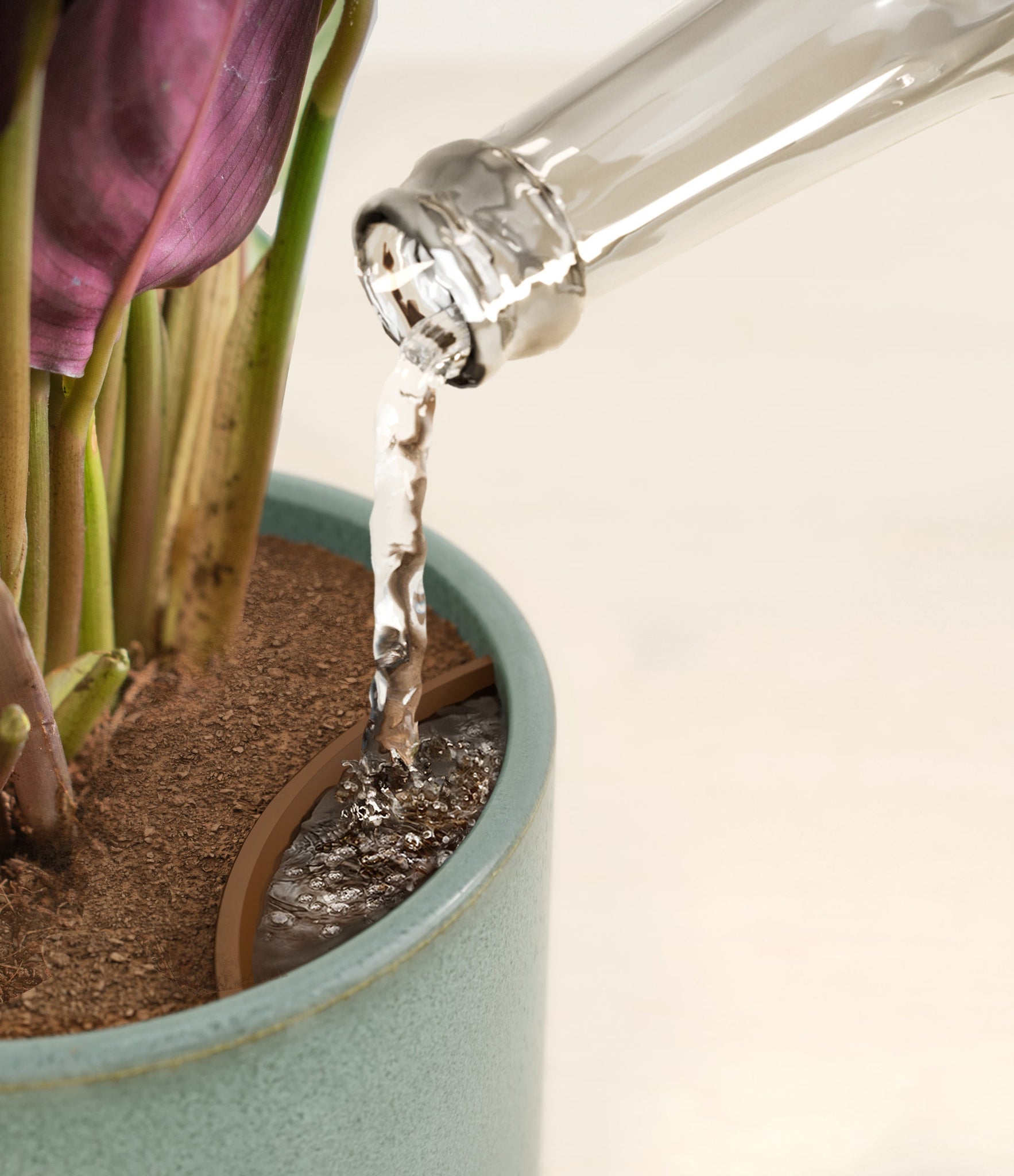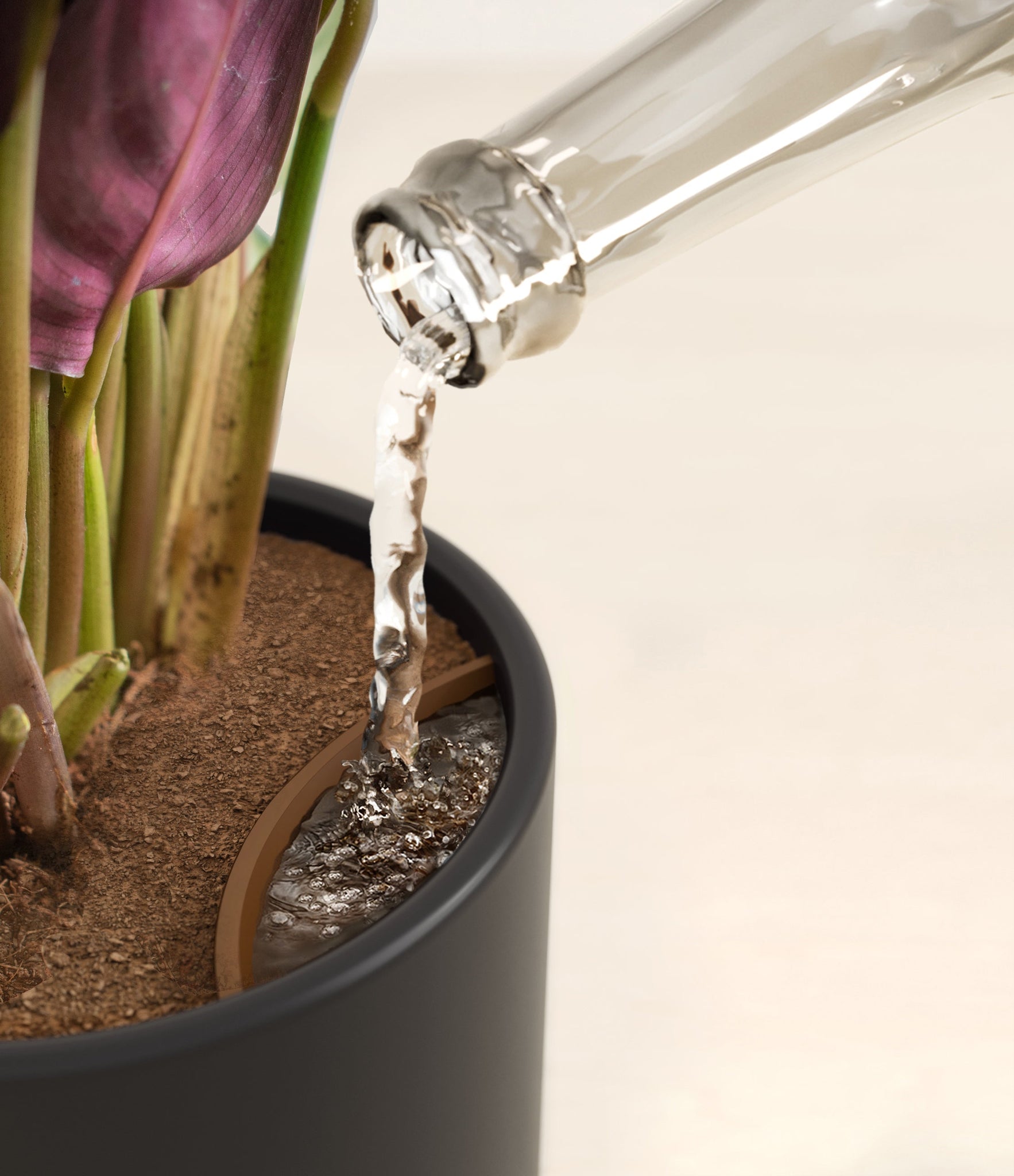 Native to the Amazonian jungles of South America, Calathea Marxii wears large emblem-shaped leaves, with bold strokes of forest green atop a deep burgundy underside. It belongs to the Marantaceae family, known as ‘Prayer Plants’, which much like humans and unlike most plants, have a wake-and-sleep cycle according to a circadian rhythm. This means the leaves move upwards during the night and downwards throughout the day in search of the sun.