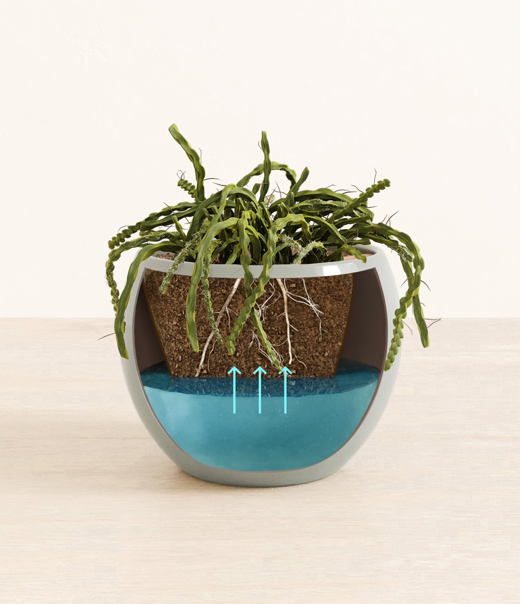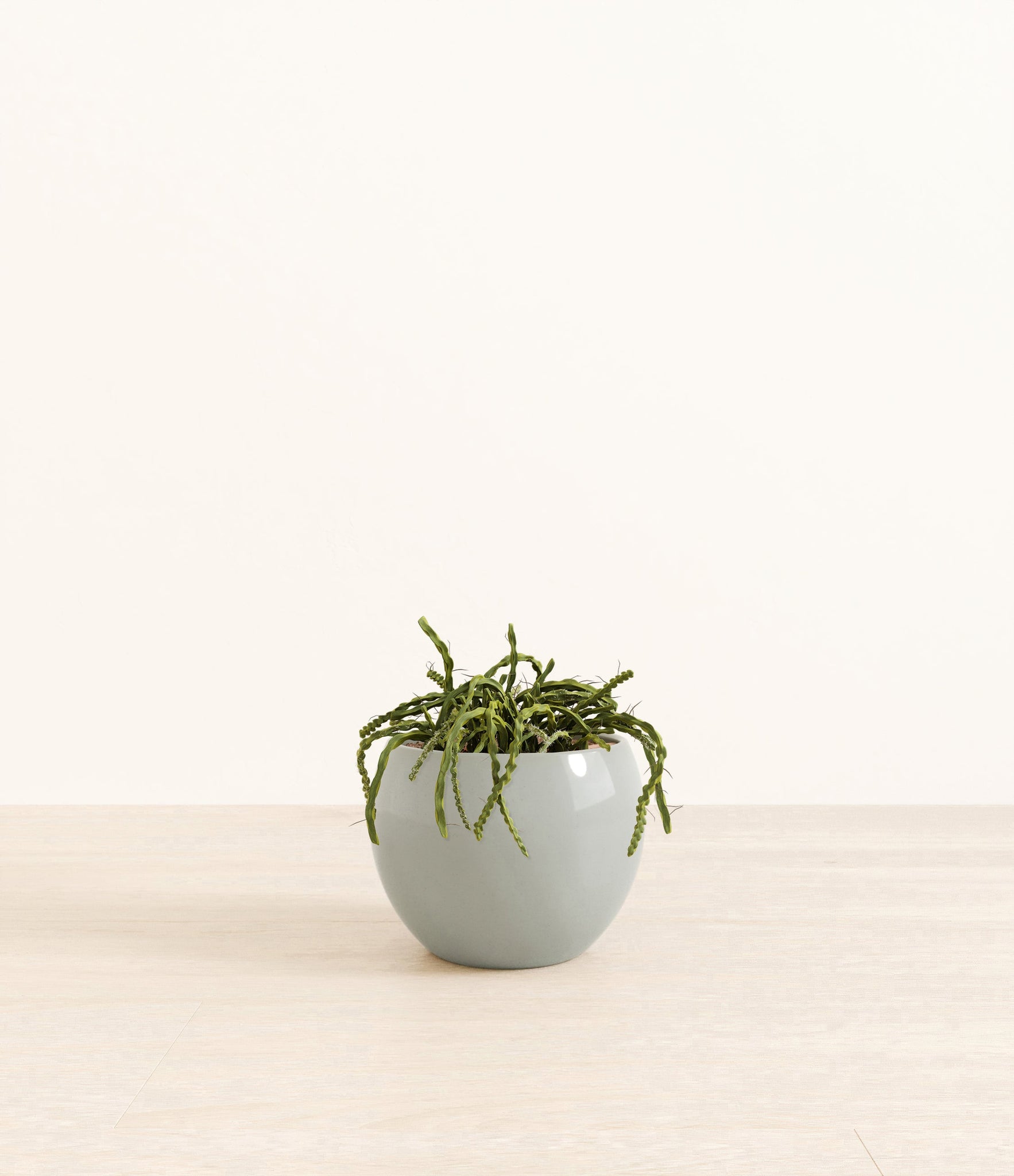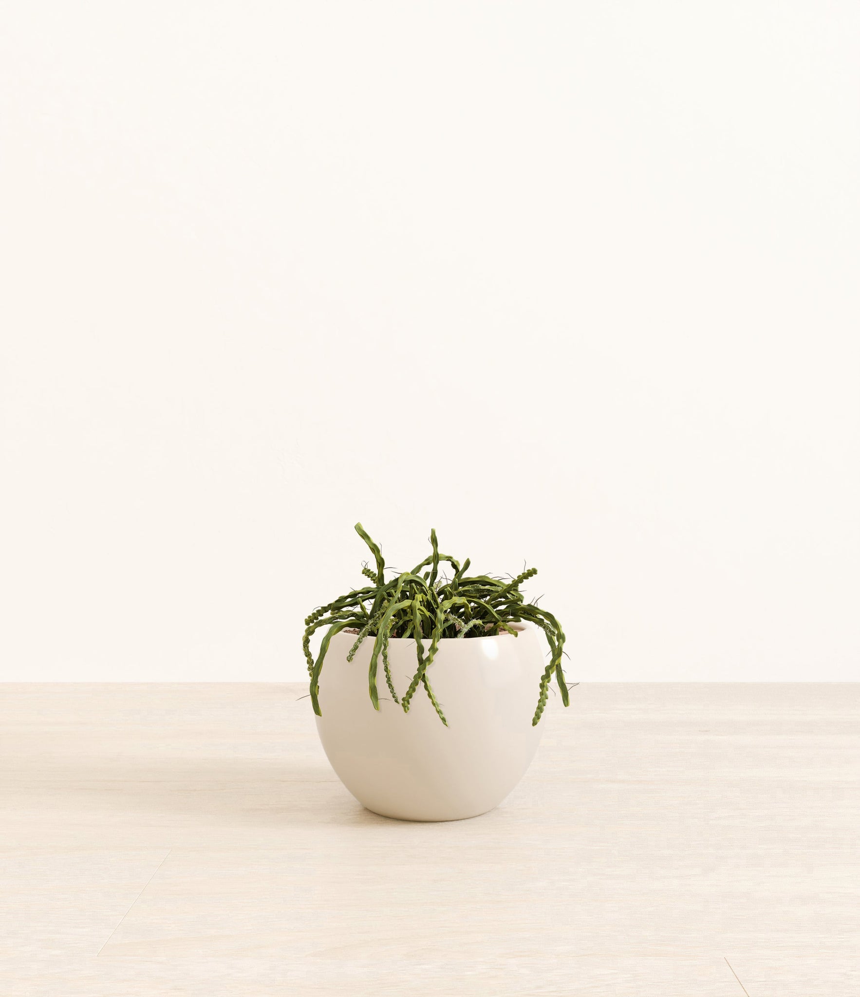 A magnificent plant with an extraordinary leaf structure, the Mistletoe Cactus is admired for its bright green pencil-thin foliage that effortlessly trails.Potted in a premium quality self-watering pot with a soft matte finish, this exquisite plant can reach up to 6 feet indoors. Native to tropical and subtropical regions in South America, Central America, and Africa, the Mistletoe Cactus thrives in warm, humid environments, so be sure to keep it somewhere cozy to make it feel at home.