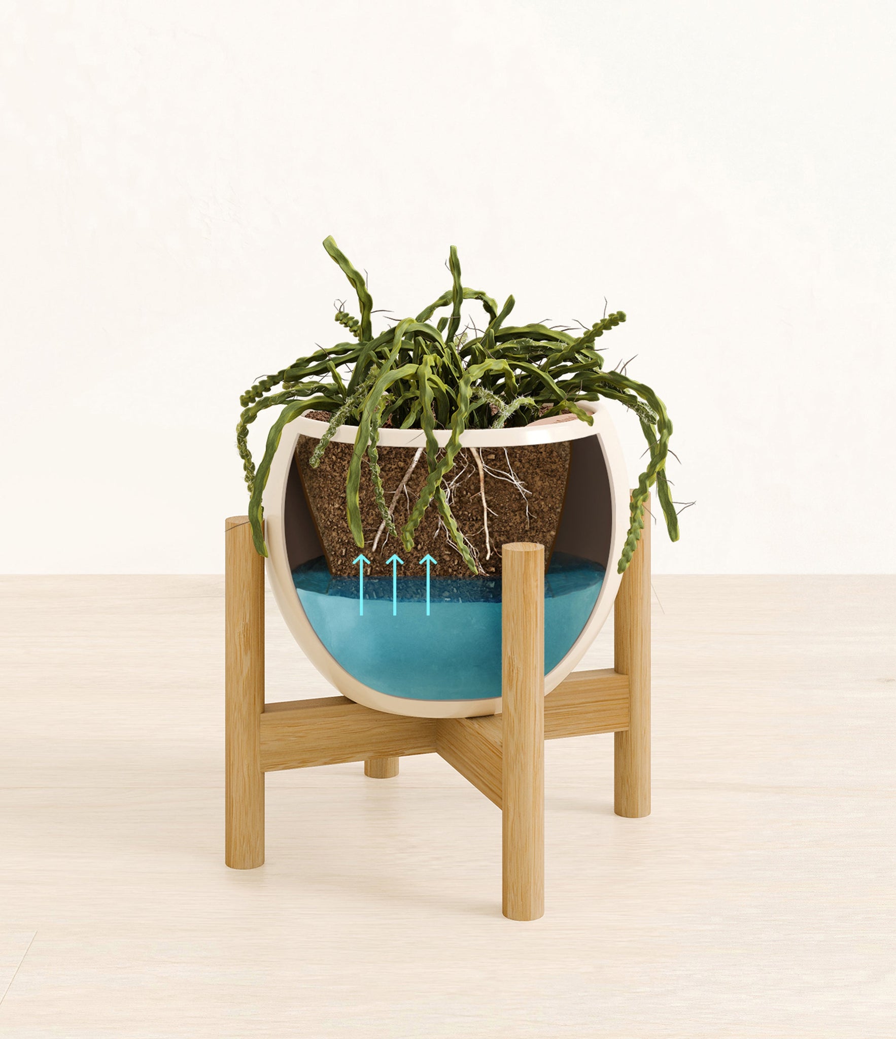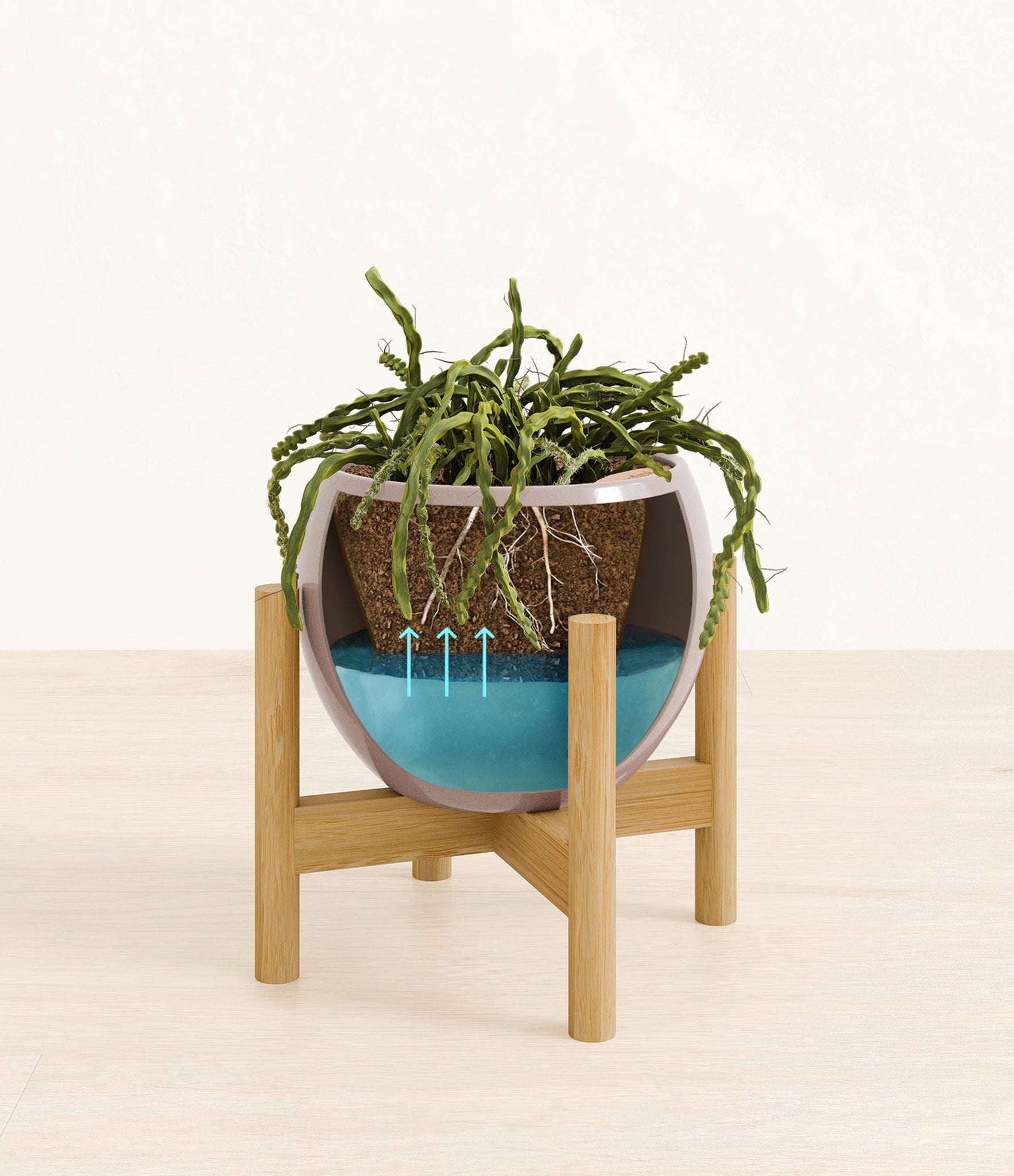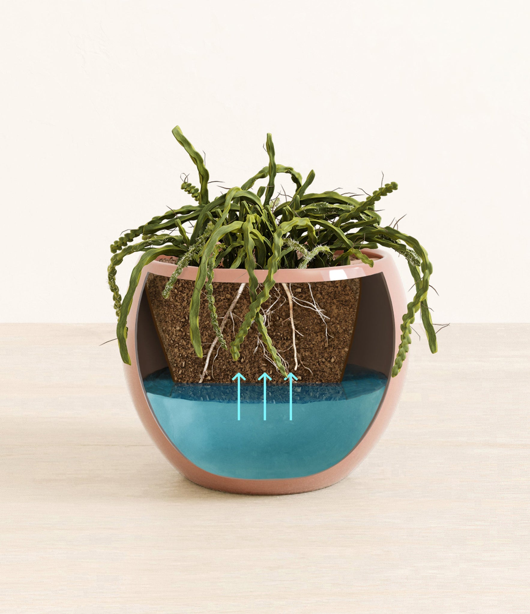 A magnificent plant with an extraordinary leaf structure, the Mistletoe Cactus is admired for its bright green pencil-thin foliage that effortlessly trails.Potted in a premium quality self-watering pot with a soft matte finish, this exquisite plant can reach up to 6 feet indoors. Native to tropical and subtropical regions in South America, Central America, and Africa, the Mistletoe Cactus thrives in warm, humid environments, so be sure to keep it somewhere cozy to make it feel at home.