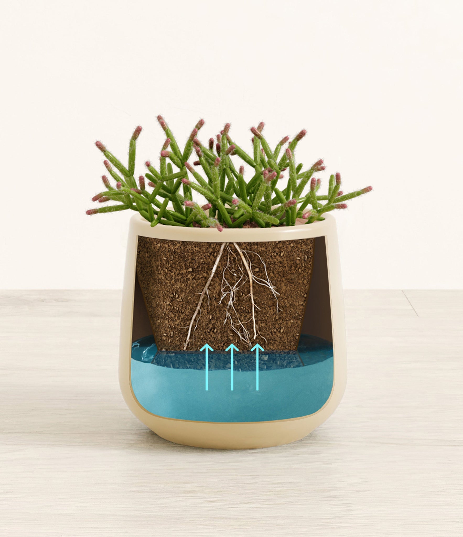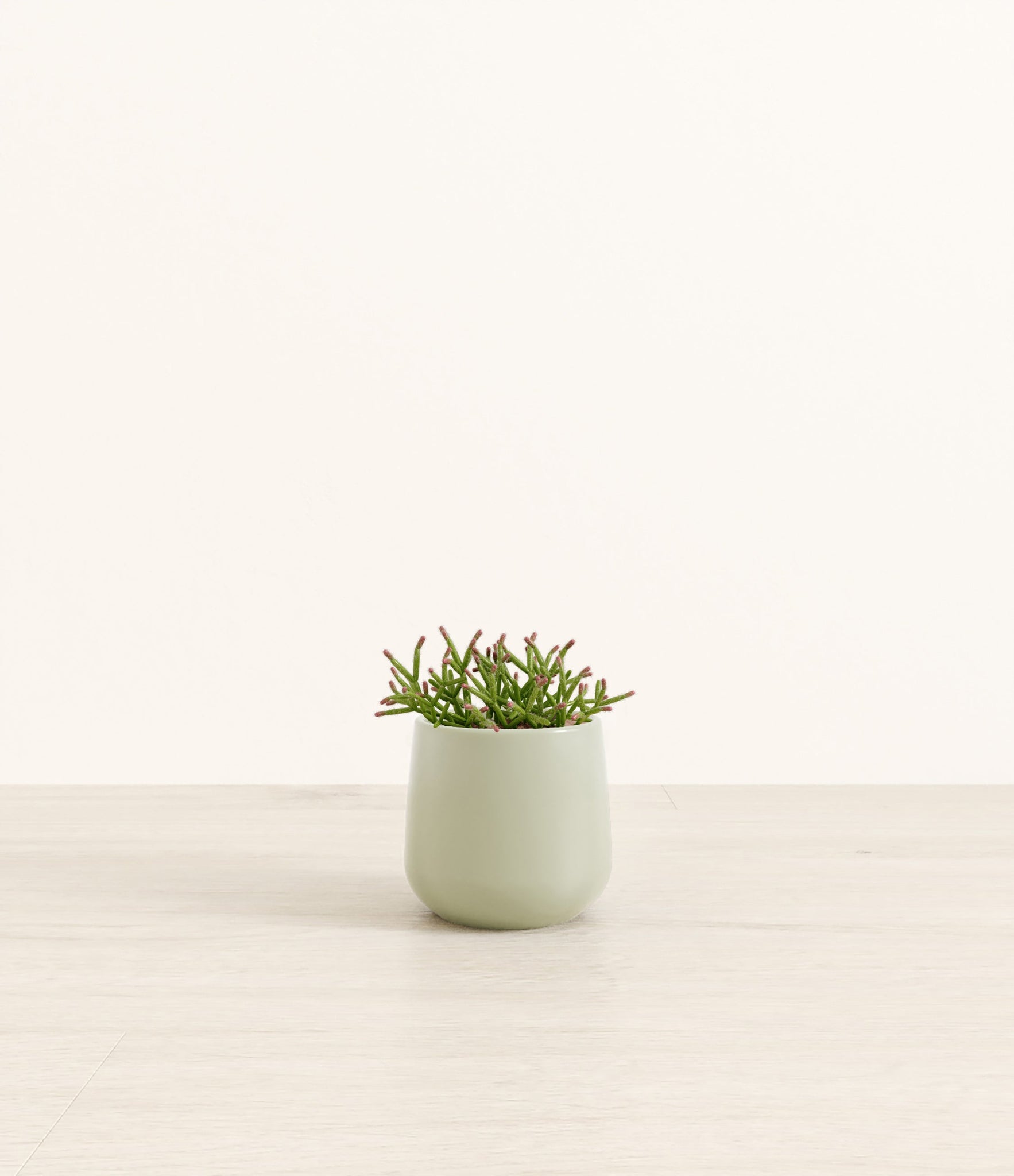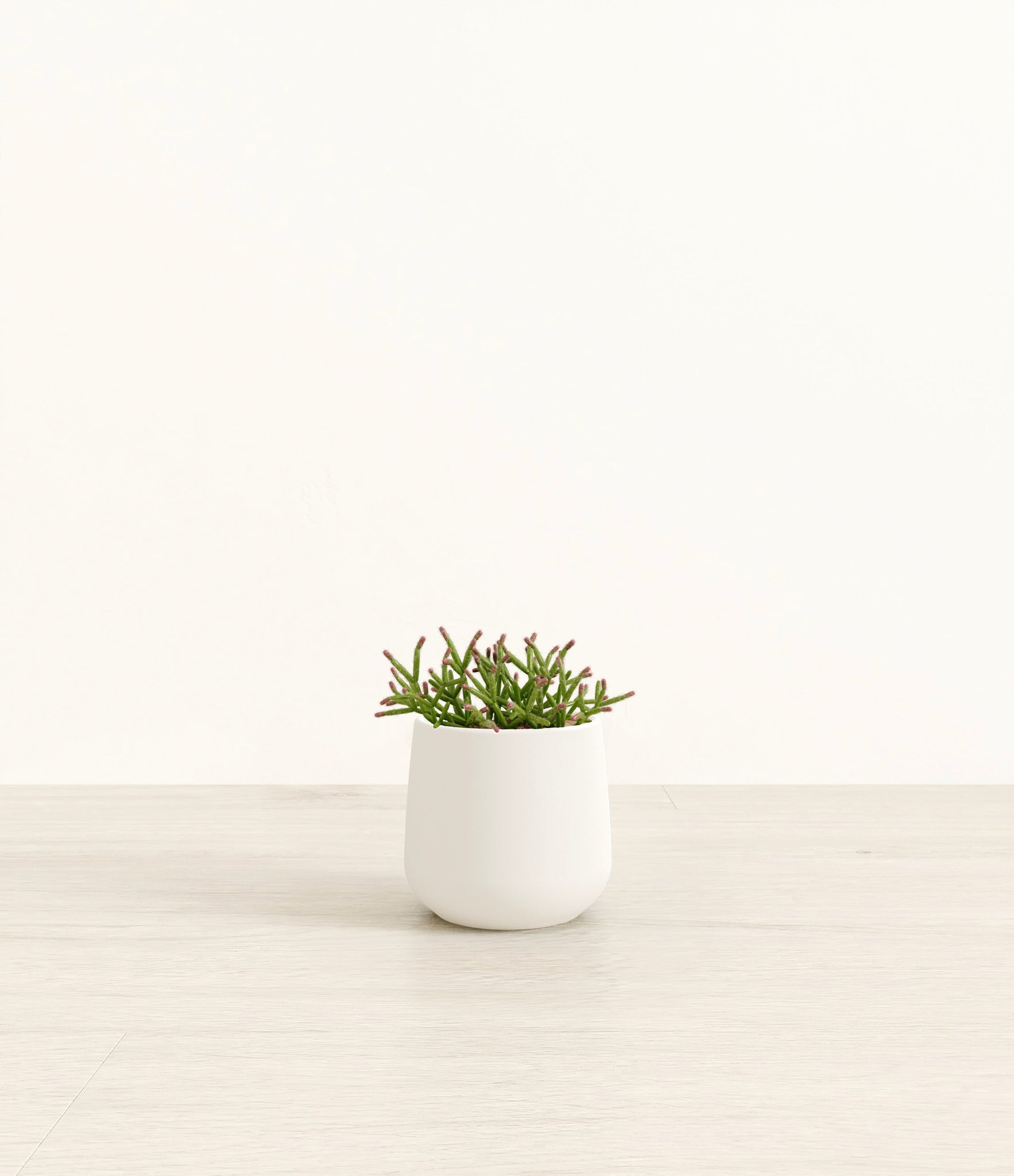 A magnificent plant with an extraordinary leaf structure, the Mistletoe Cactus is admired for its bright green pencil-thin foliage that effortlessly trails. Potted in a premium quality self-watering pot with a soft matte finish, this exquisite plant can reach up to 6 feet indoors. Native to tropical and subtropical regions in South America, Central America, and Africa, the Mistletoe Cactus thrives in warm, humid environments, so be sure to keep it somewhere cozy to make it feel at home.