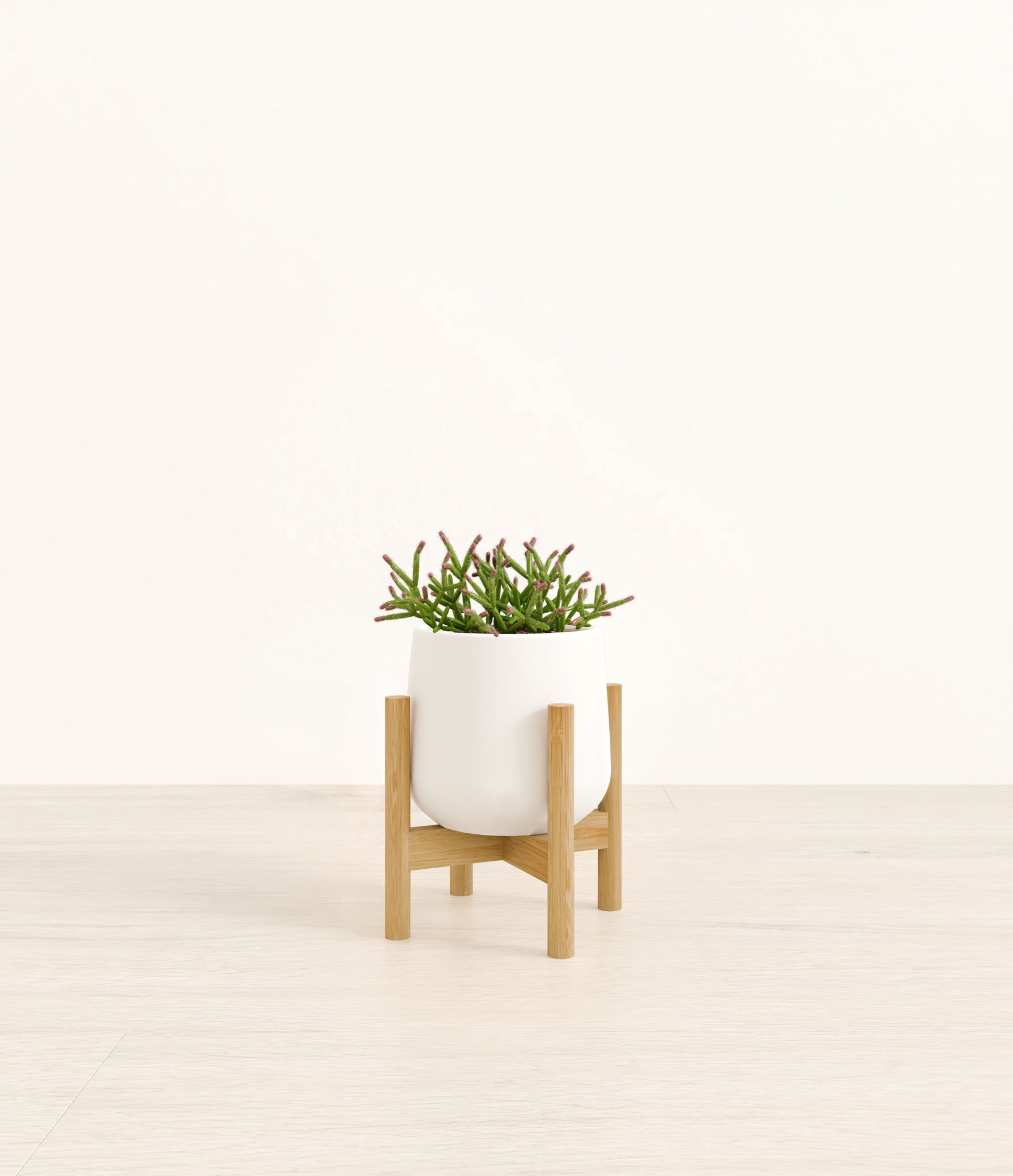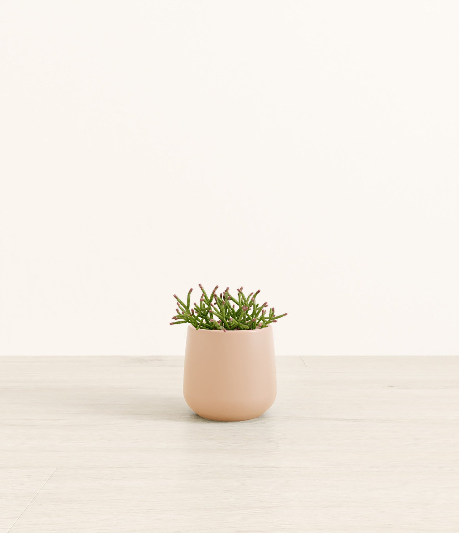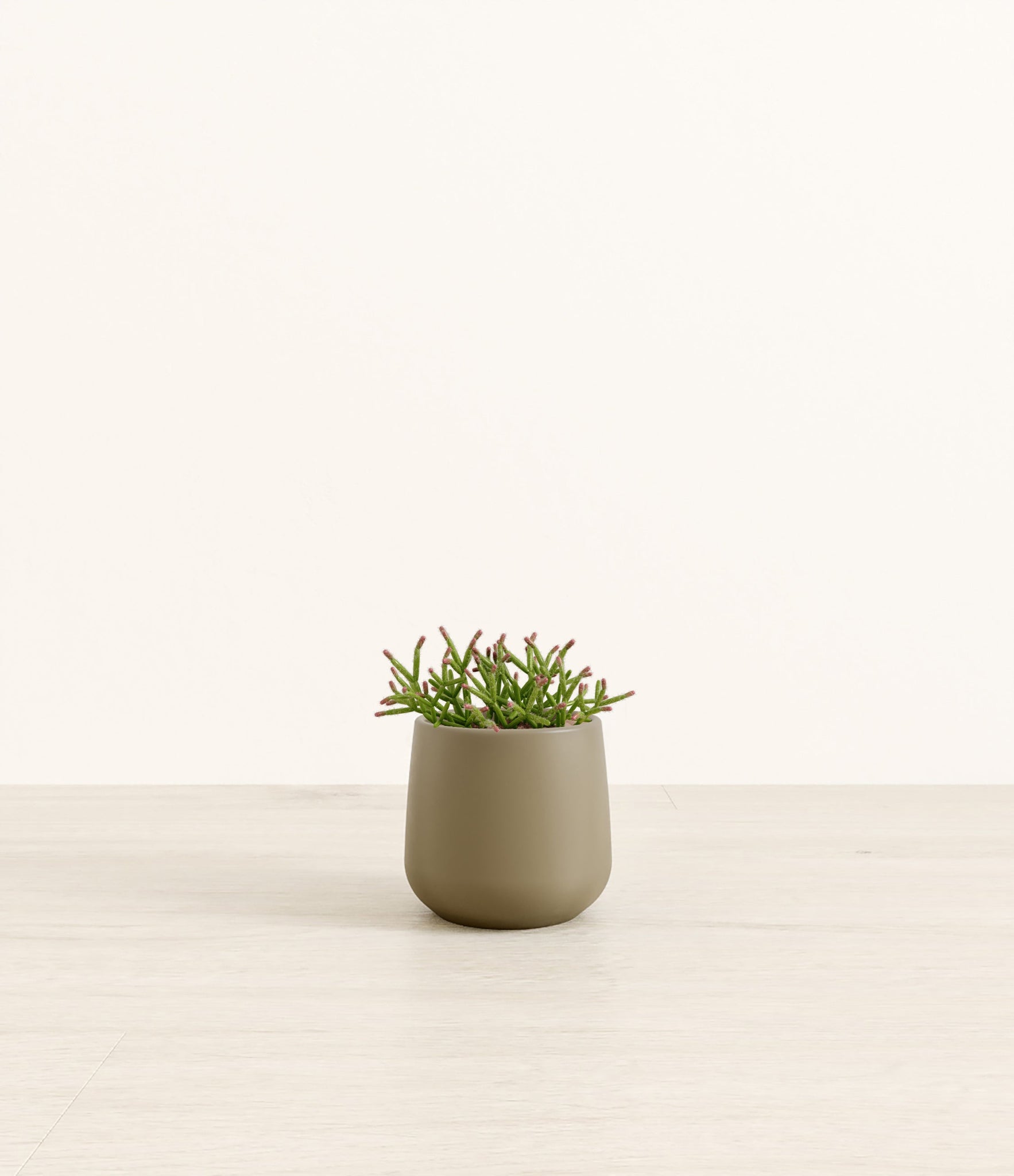 A magnificent plant with an extraordinary leaf structure, the Mistletoe Cactus is admired for its bright green pencil-thin foliage that effortlessly trails. Potted in a premium quality self-watering pot with a soft matte finish, this exquisite plant can reach up to 6 feet indoors. Native to tropical and subtropical regions in South America, Central America, and Africa, the Mistletoe Cactus thrives in warm, humid environments, so be sure to keep it somewhere cozy to make it feel at home.