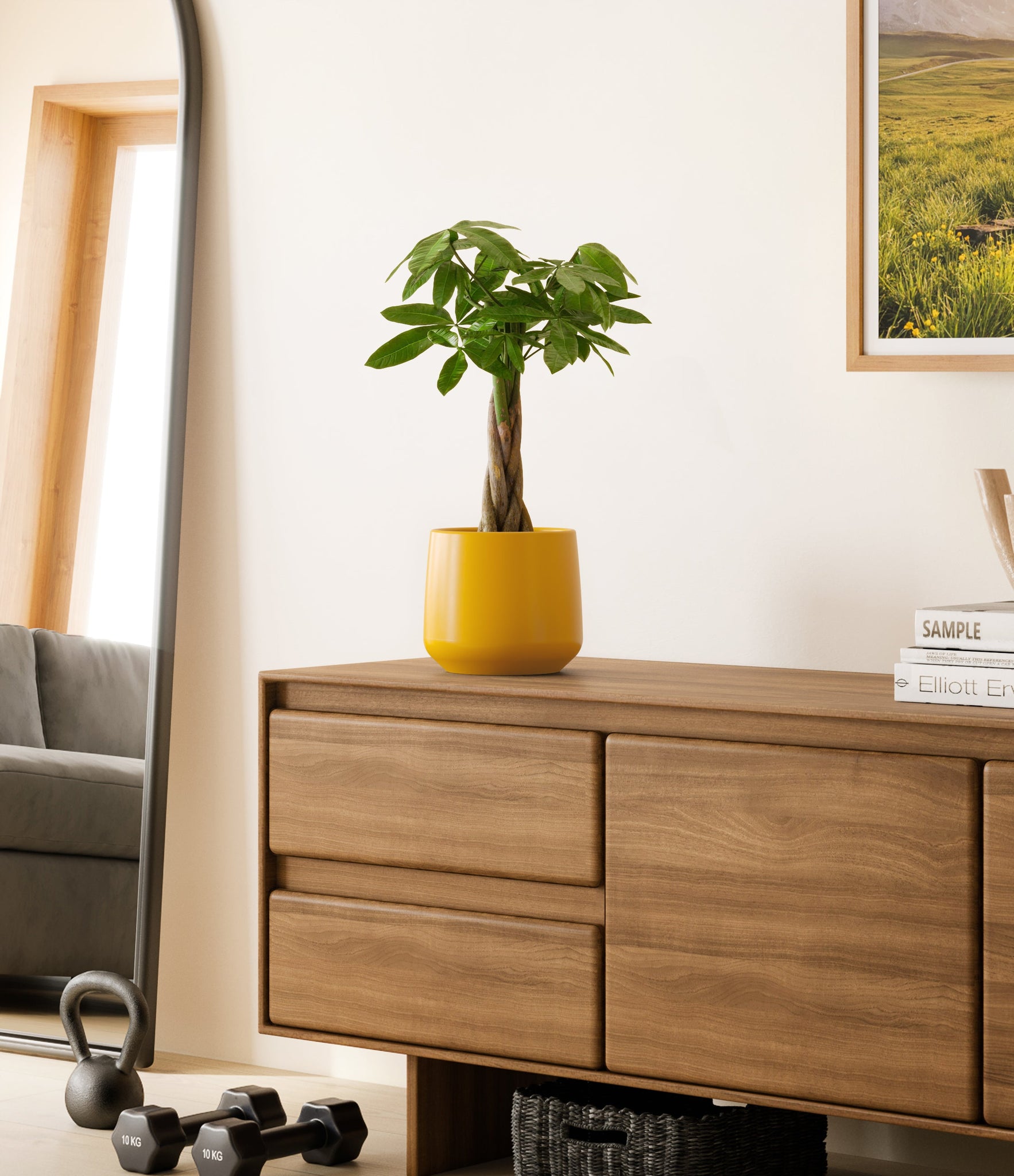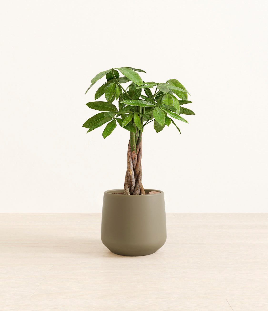 Though native to Mexico and South America, Money Tree rose to fame in East Asia, where it is cultivated as one of the luckiest ornaments, symbolizing prosperity. Its trunk is believed to hold within its folds good fortune, and its palmate leaves resemble open hands offering great abundance. Despite its outstanding appearance and symbolic meaning, this evergreen is very easy to care for, and makes for a great indoor plant.