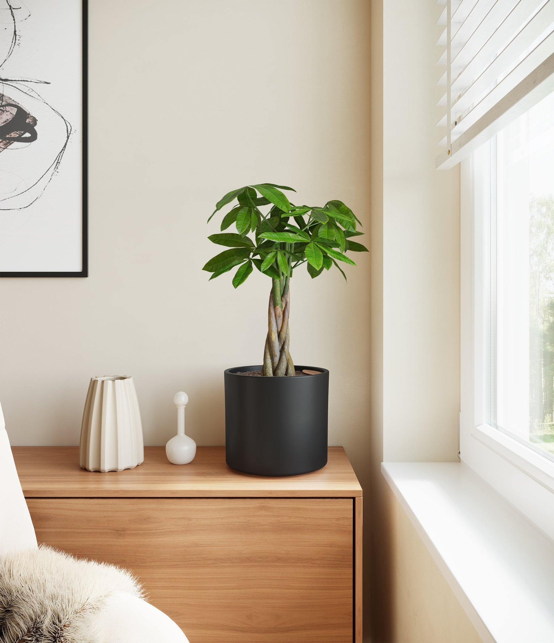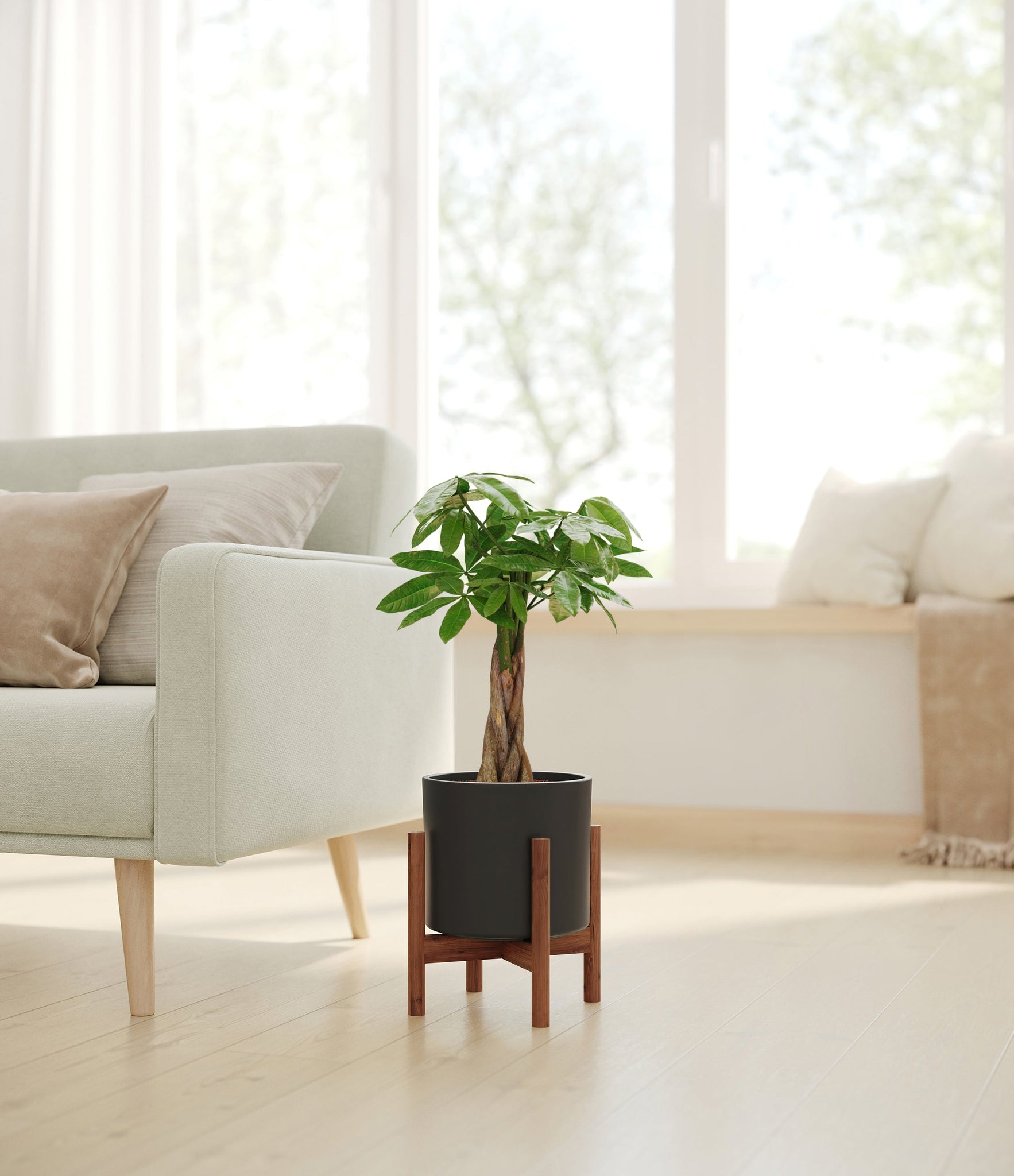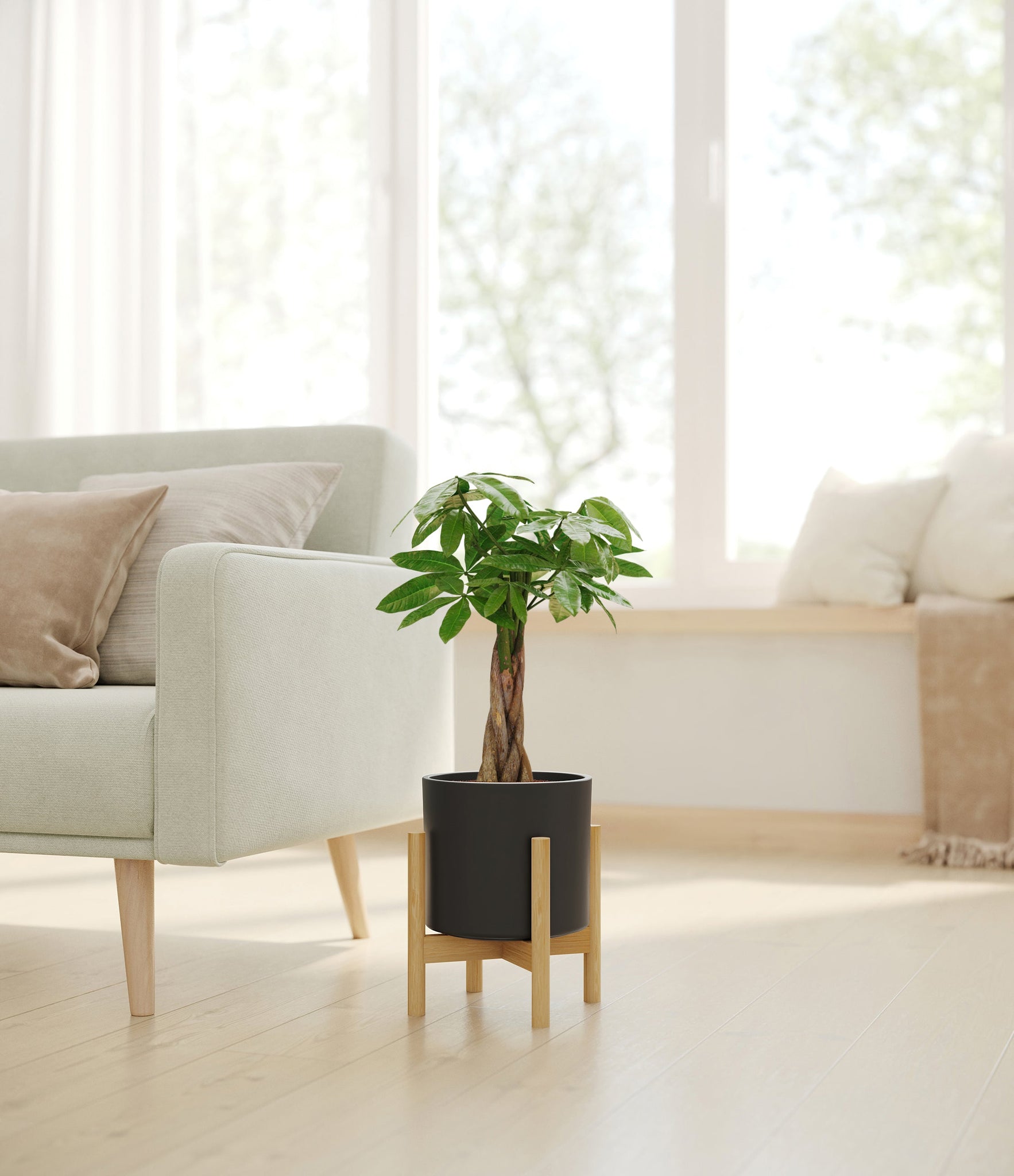 Though native to Mexico and South America, Money Tree rose to fame in East Asia, where it is cultivated as one of the luckiest ornaments, symbolizing prosperity. Its trunk is believed to hold within its folds good fortune, and its palmate leaves resemble open hands offering great abundance. Despite its outstanding appearance and symbolic meaning, this evergreen is very easy to care for, and makes for a great indoor plant.