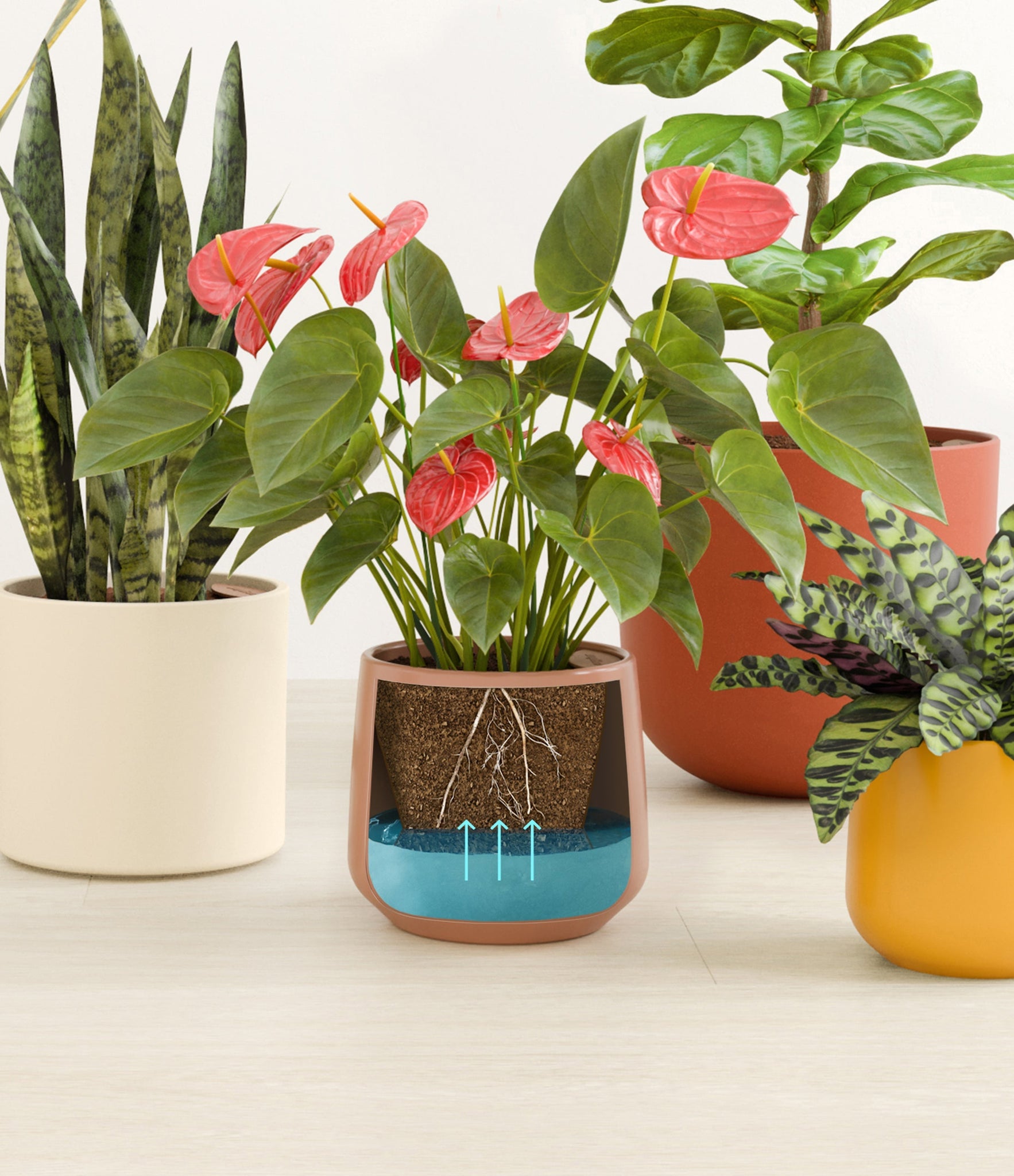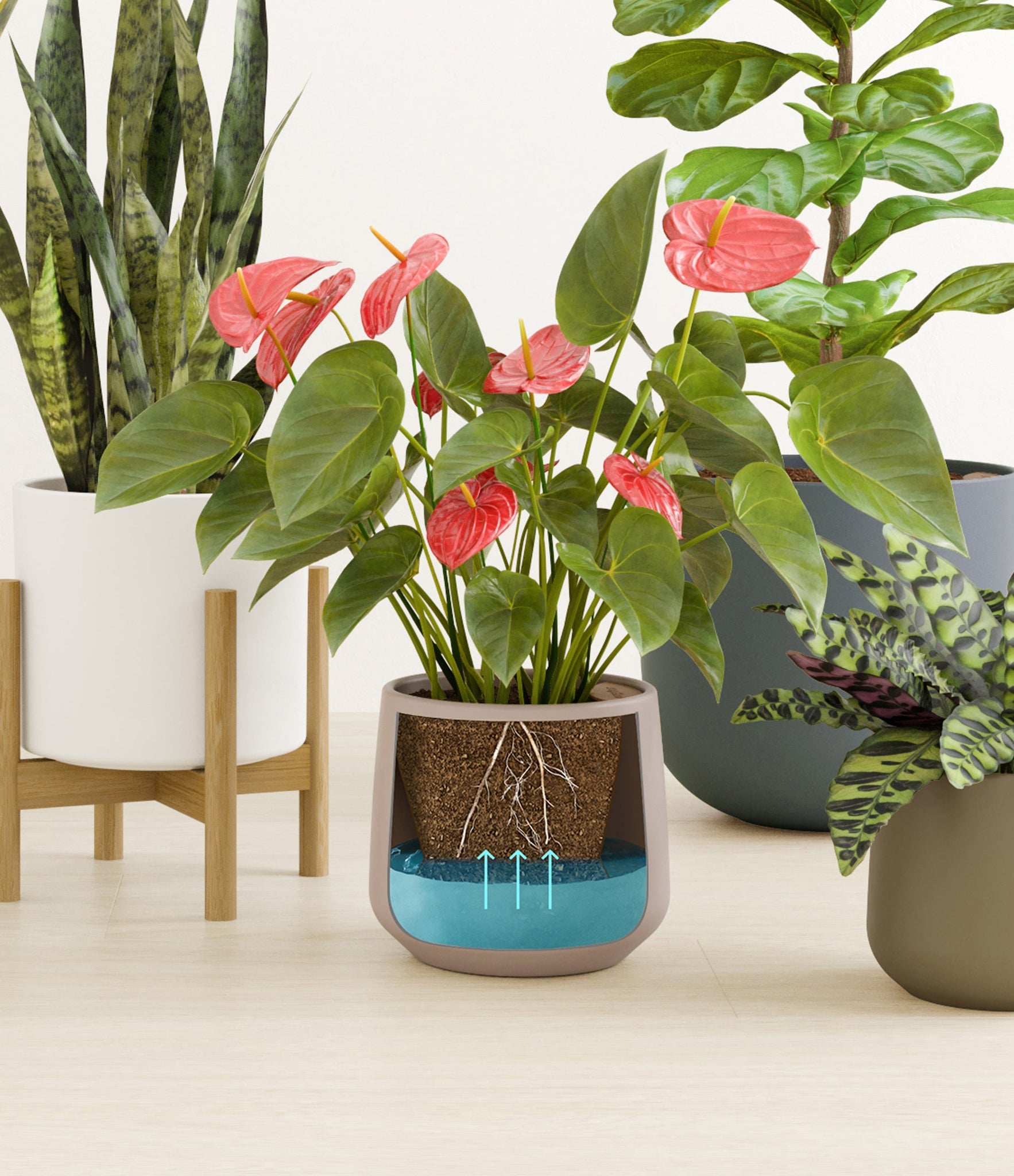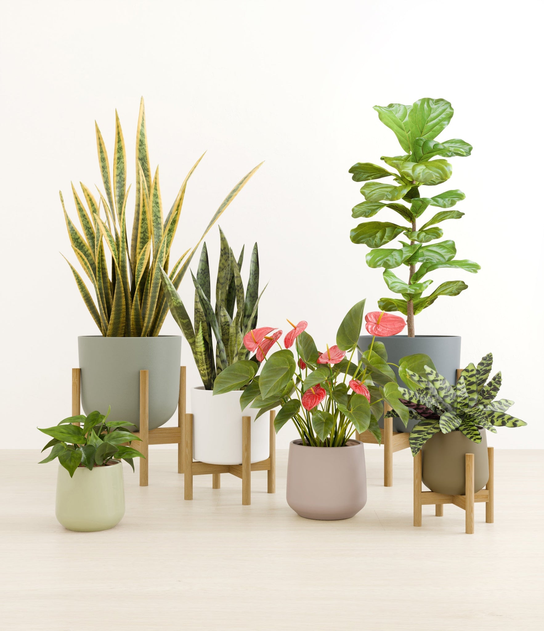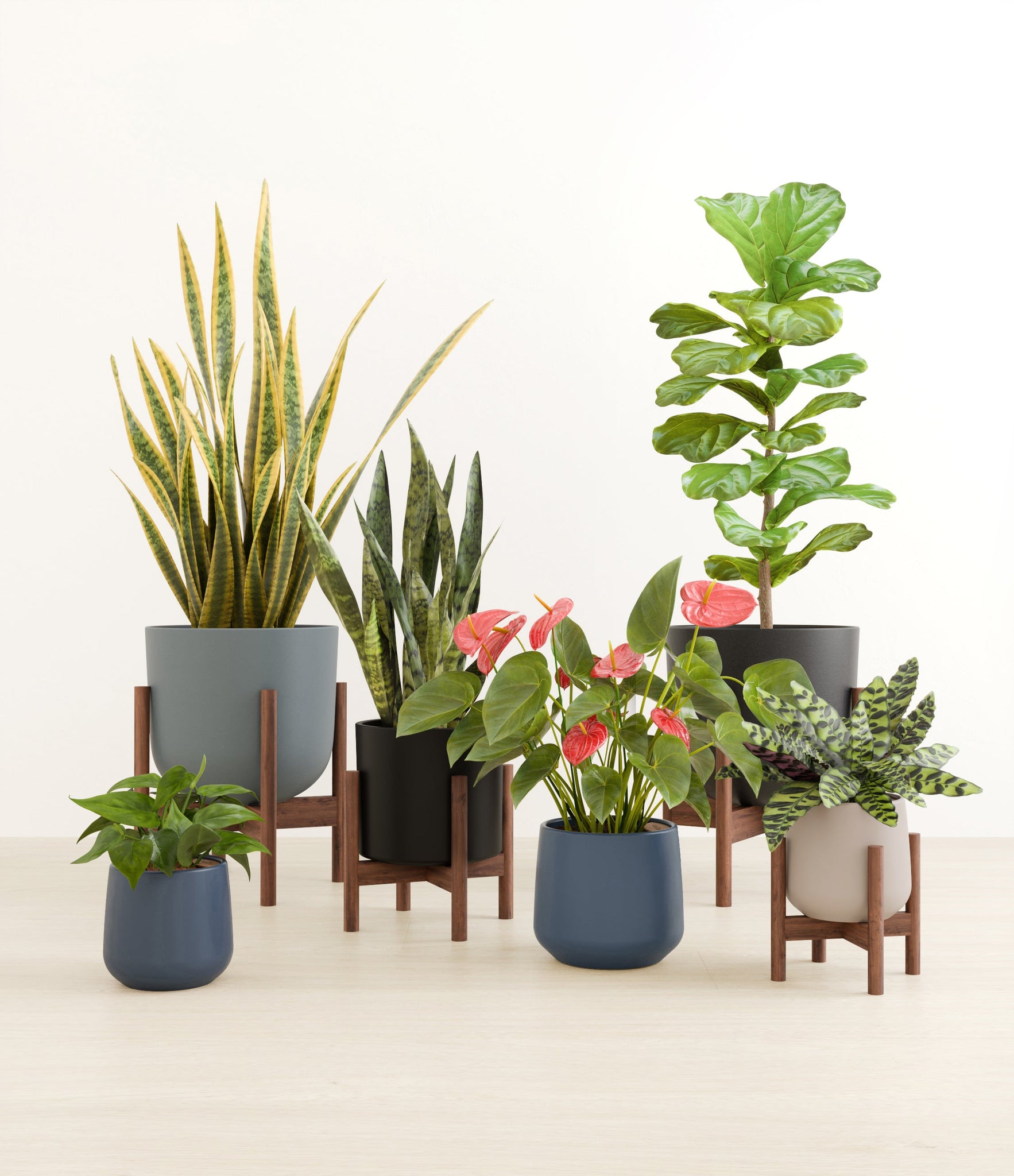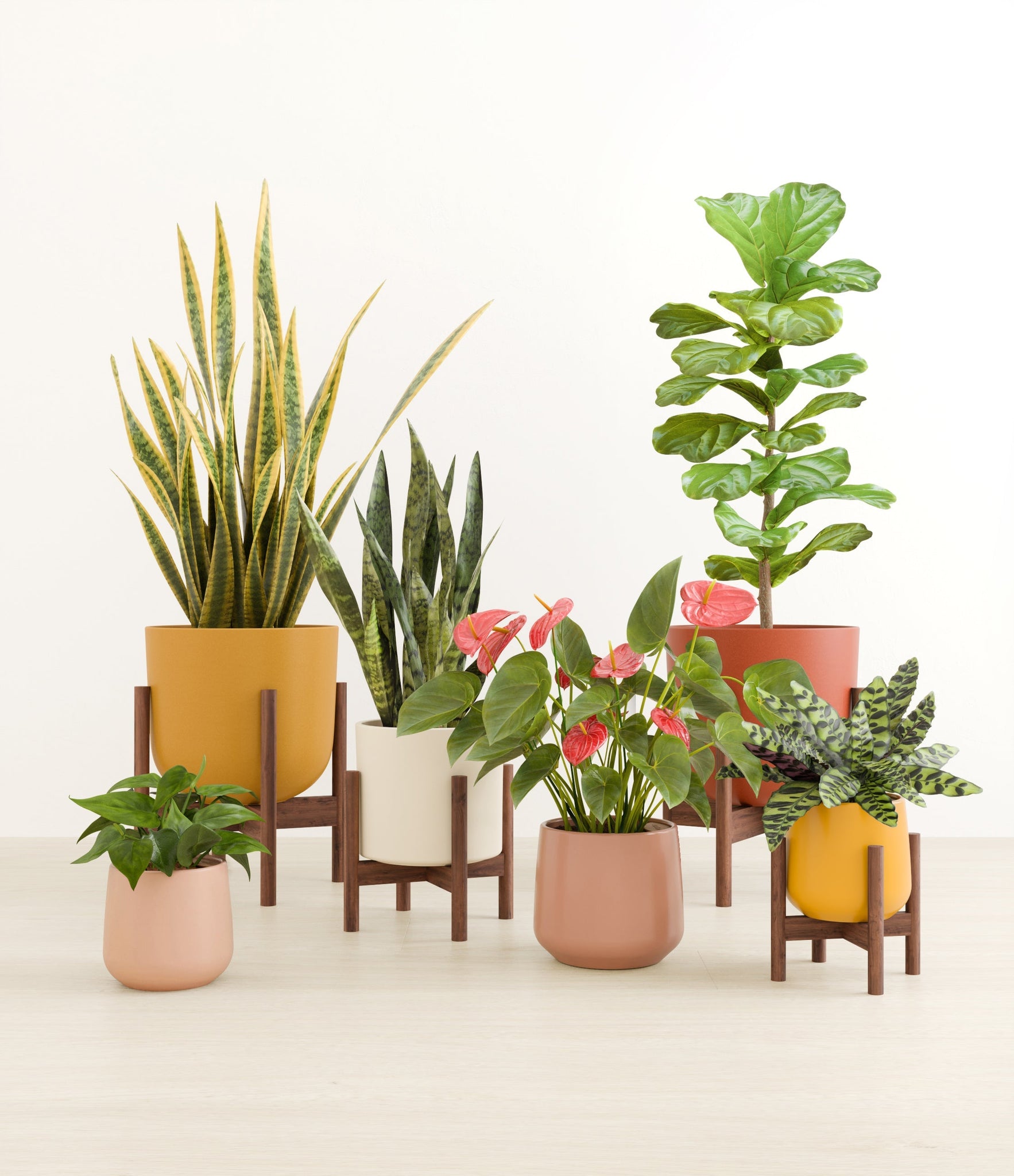 Welcome a touch of nature into your home with this carefully curated collection of six exquisite houseplants, each chosen to transform the look and feel of any indoor space with its unique beauty. This collection includes a small Heartleaf Philodendron with glossy, vibrant heart-shaped foliage; a small Rattlesnake Calathea with an eccentric reptilian pattern on its leaves; a medium Green Snake plant with mesmerizing swatches of silver and sage; a medium Red Anthurium that brings out the best and brightest in any space it inhabits; a large Golden Snake plant with tall vibrant green leaves edged with streaks of sunshine; and a large Fiddle Leaf Fig Bush with massive and vibrant lyre-shaped leaves.