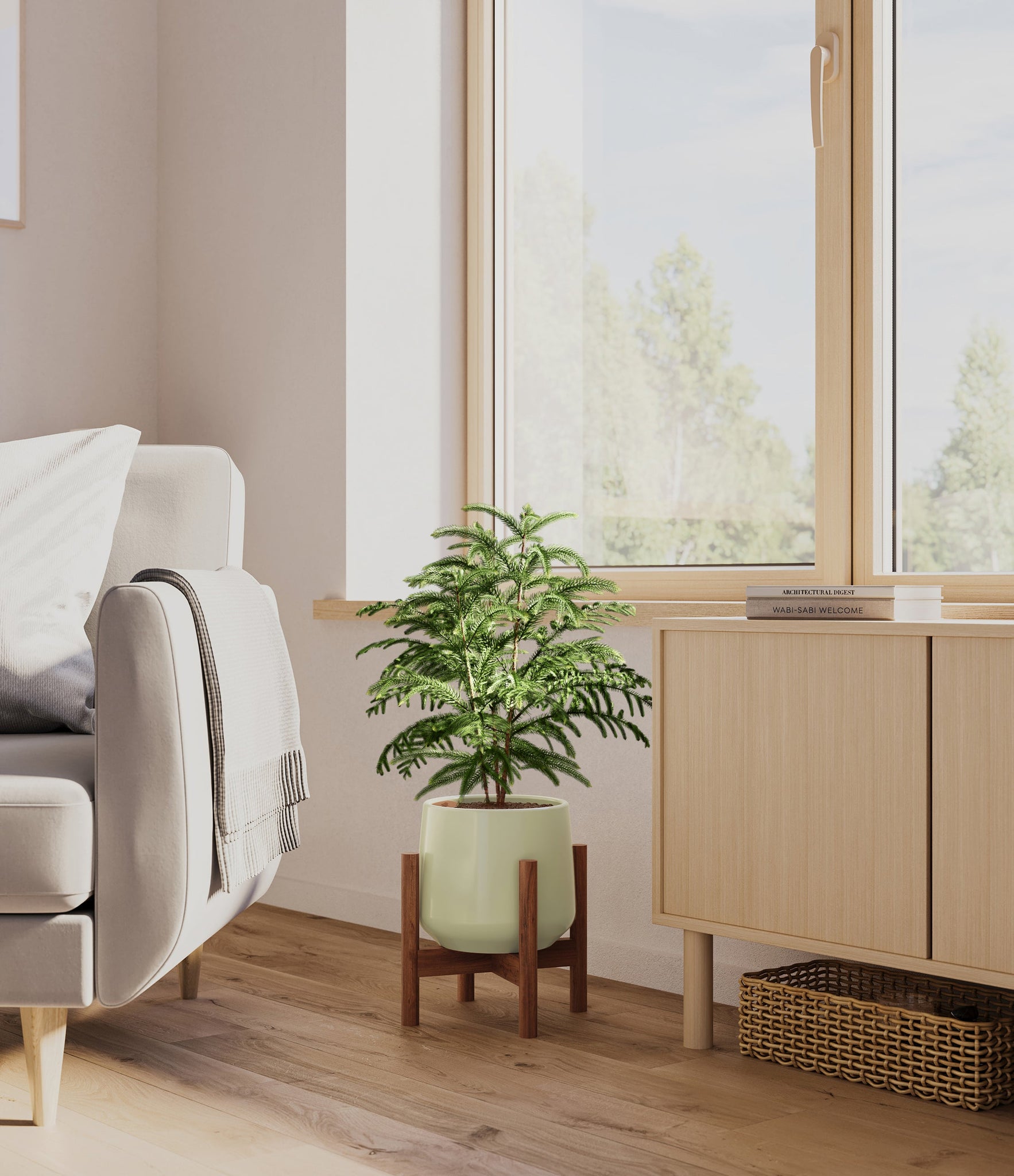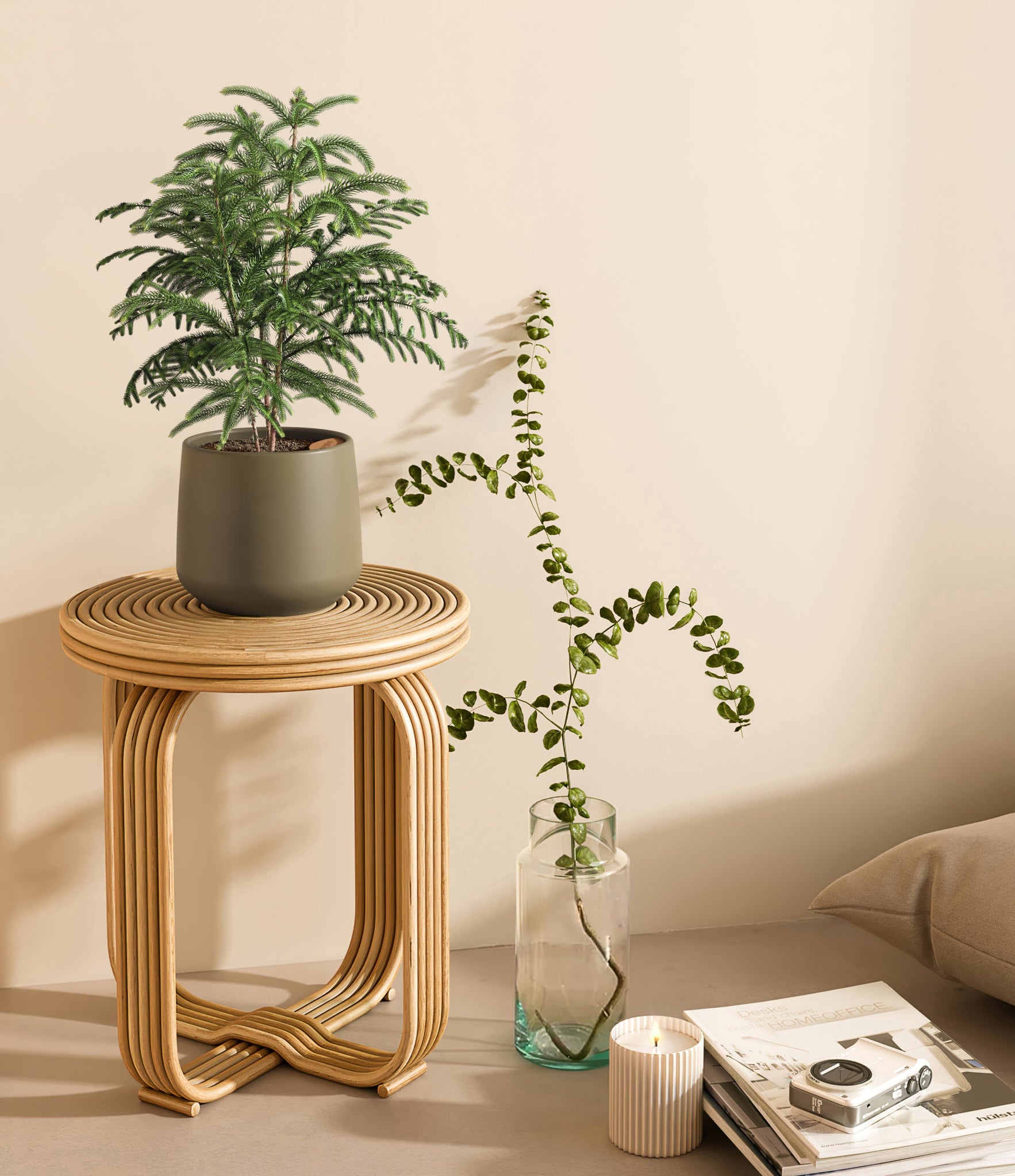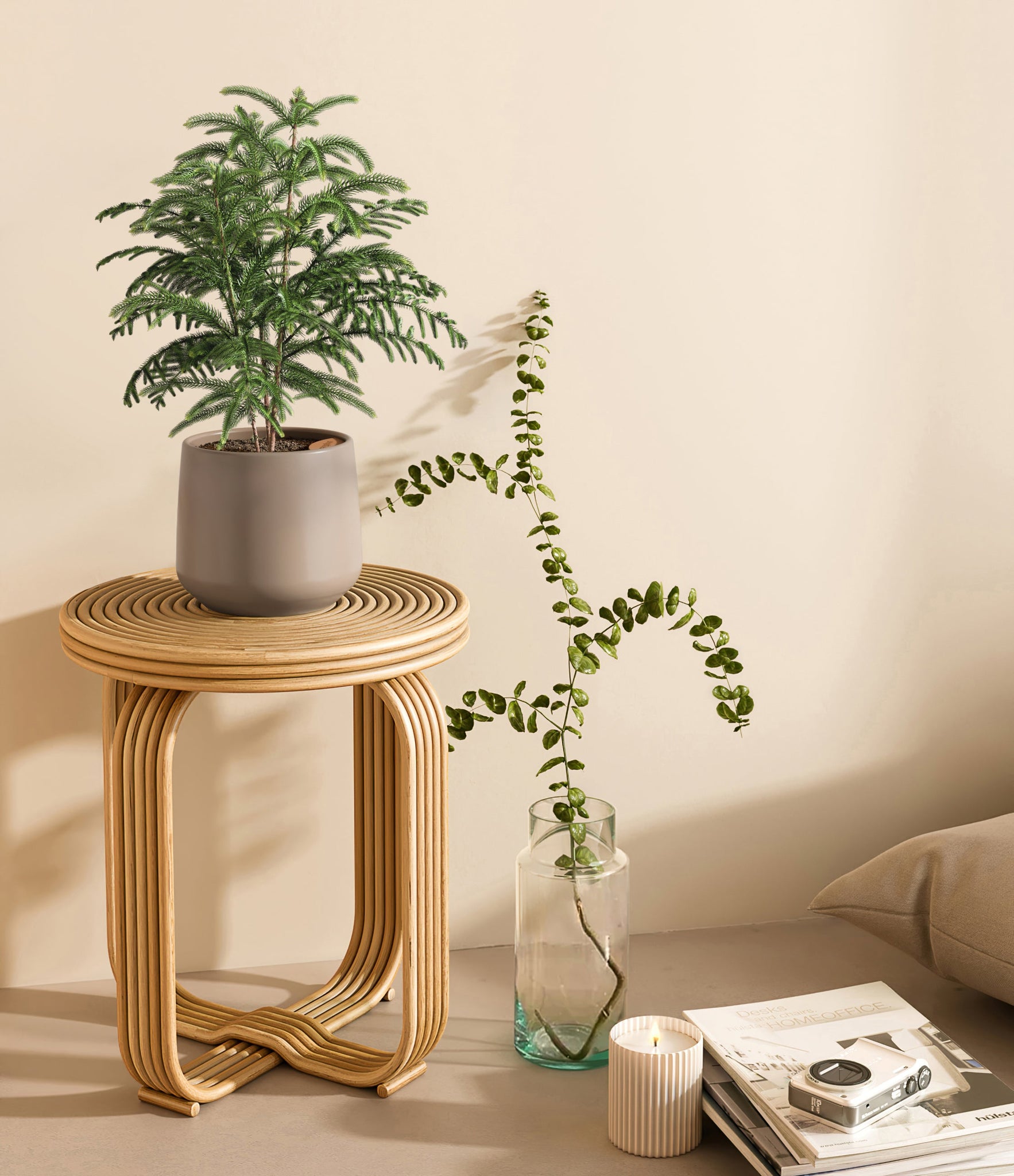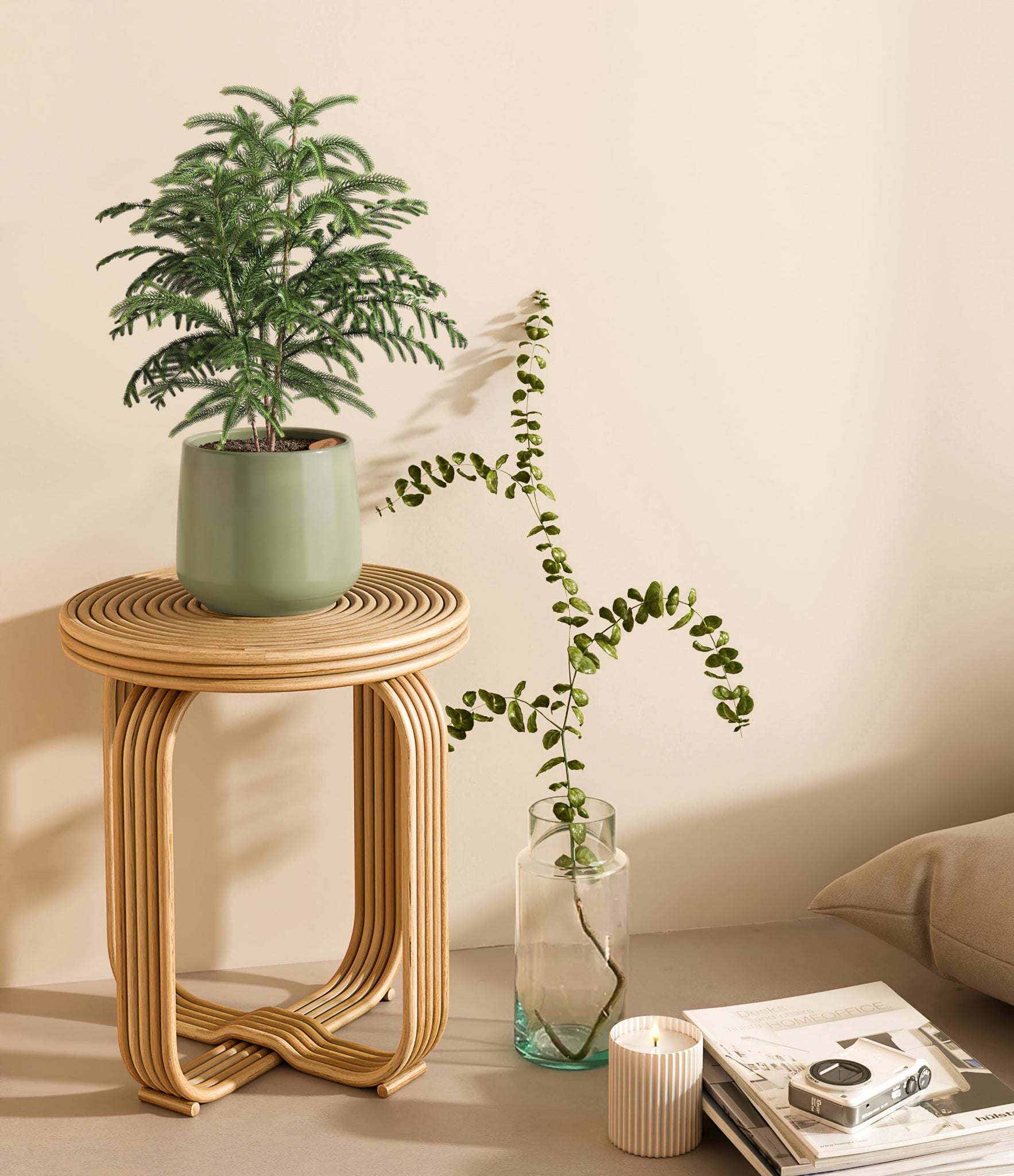 Native to the South Pacific, Norfolk Island Pine is a tropical beauty and plant lover’s favorite. Famous for its role as the mini Christmas tree, its delicate needle branches are just as stunning without all the decorations, and guarantee keeping any space cheery and charming year round. Norfolk Island Pine grows best in a space with bright indirect light, where the sun rays are diffused, and can also adapt to spaces with bright direct light, where the sunlight streams inside directly. Avoid placing it in spaces with low light or spaces without natural sunlight.