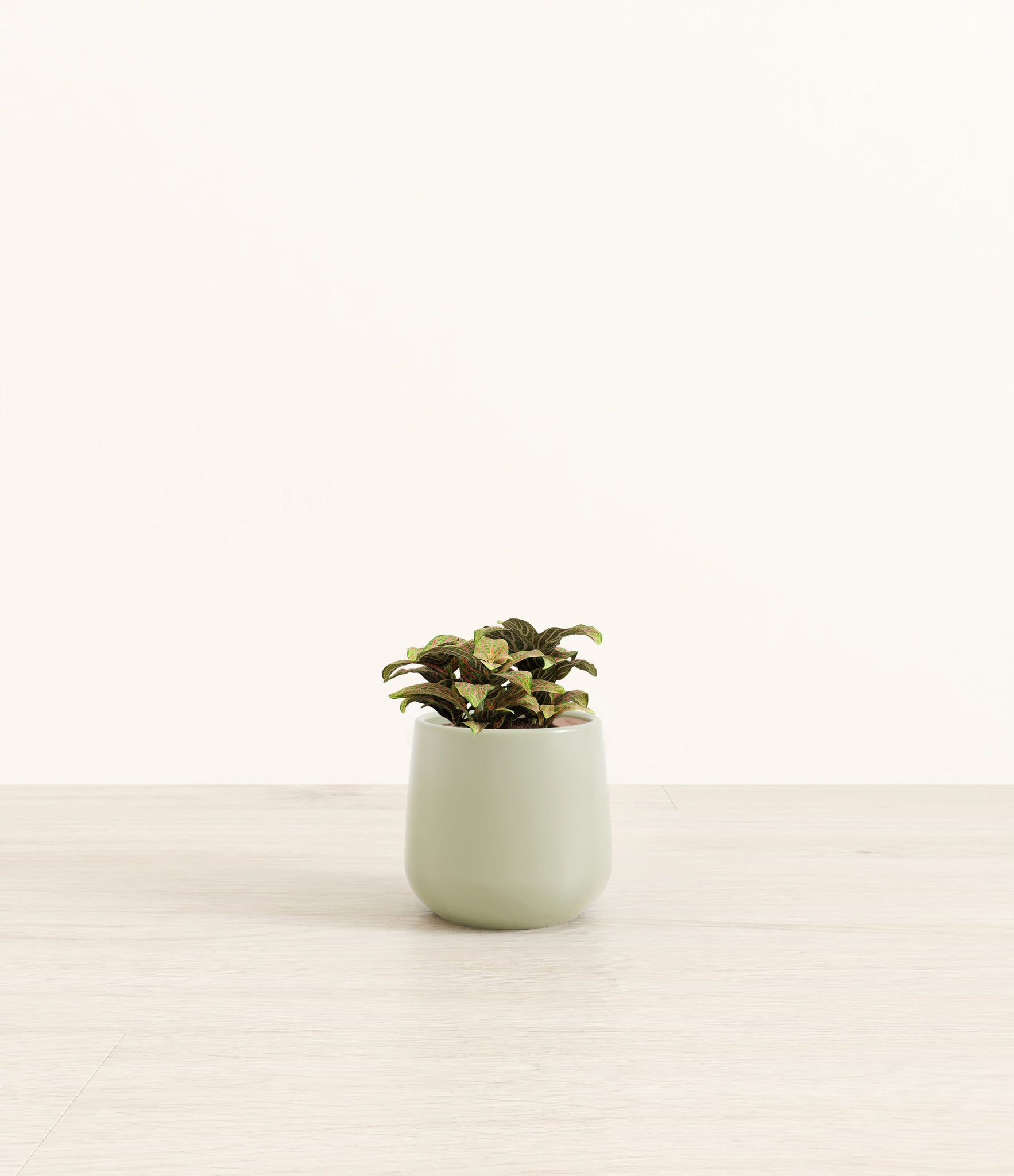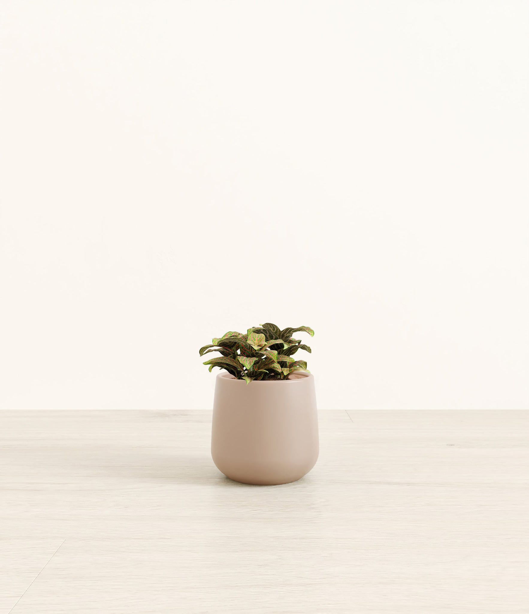 Originating from the lush undergrowth of South America's rainforests, the Pink Nerve Plant, or Fittonia albivenis, enchants with its vibrant green leaves adorned with intricate pink veins. This petite yet eye-catching houseplant is perfect for adding an exotic touch to smaller spaces. Celebrated for its stunning foliage, it acts as a living piece of art, reflecting the rich biodiversity of its tropical home. The Pink Nerve Plant flourishes in conditions that replicate the humid, shaded floors of its natural environment.