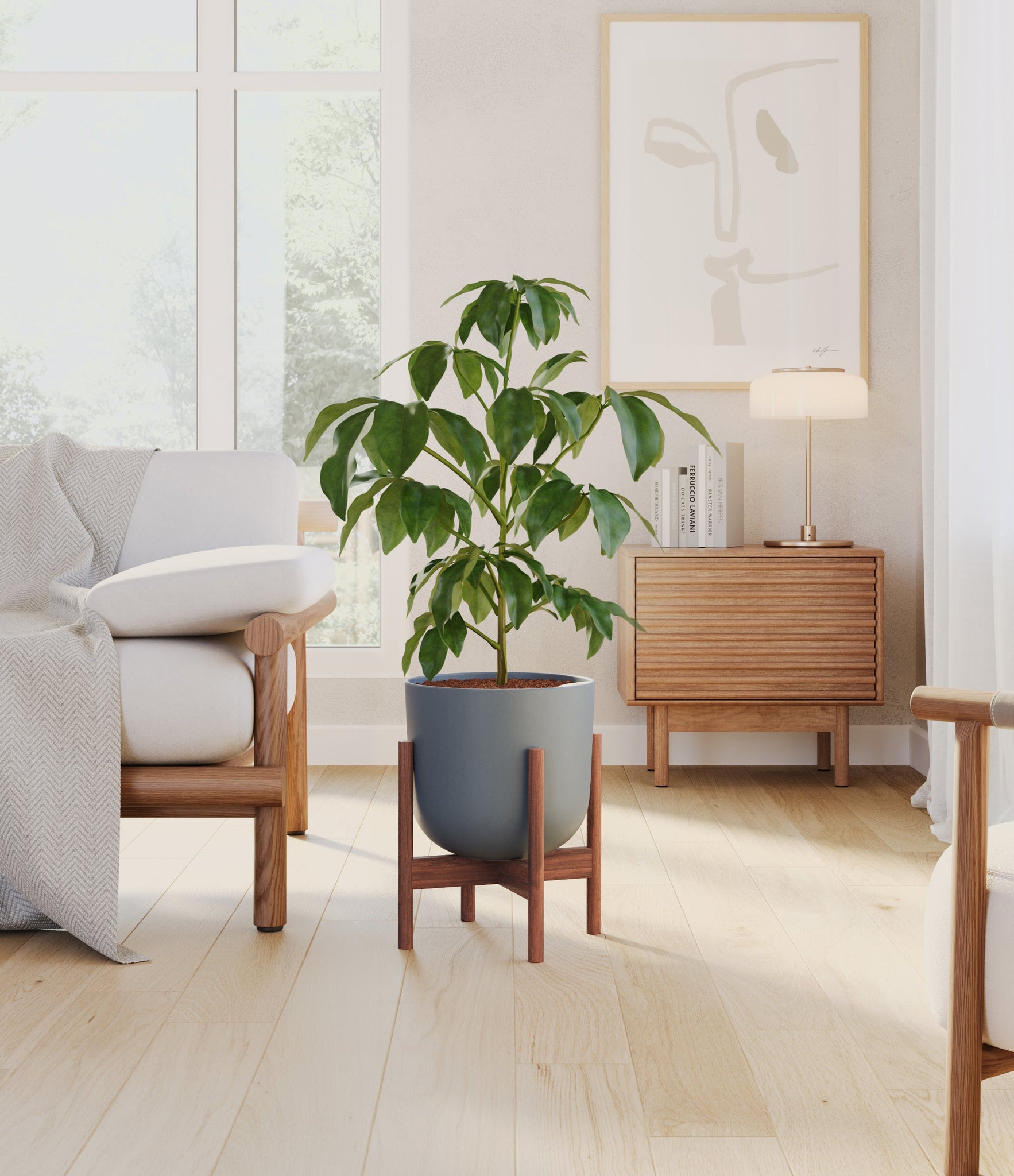 Potted in a premium quality self-watering pot with a soft matte finish, this exquisite plant can grow over 8 feet tall indoors and up to 65 feet tall in its natural habitat – the rainforest canopies in Australia and New Guinea!