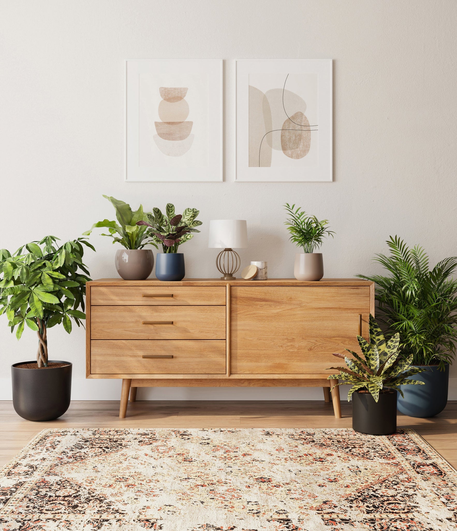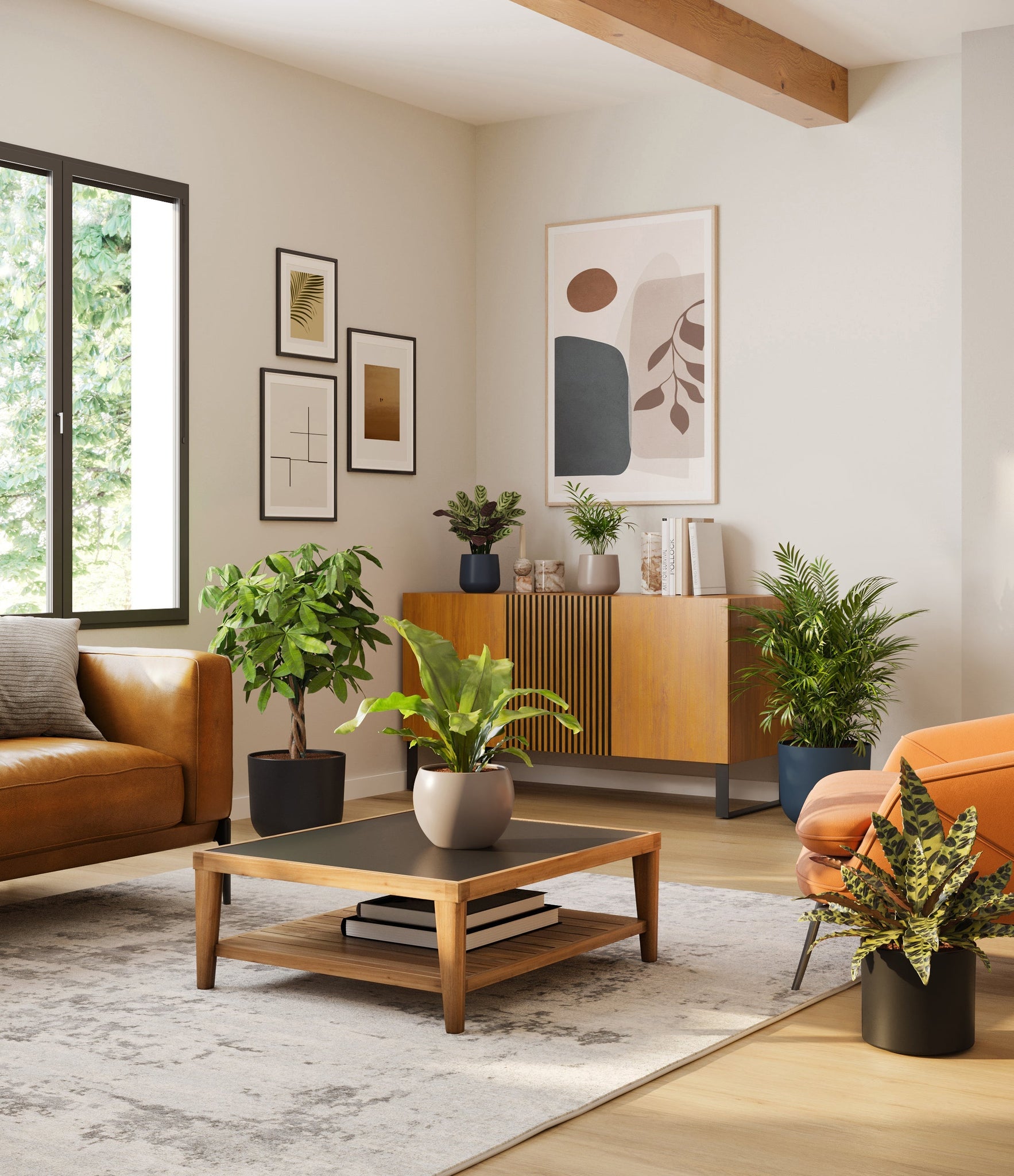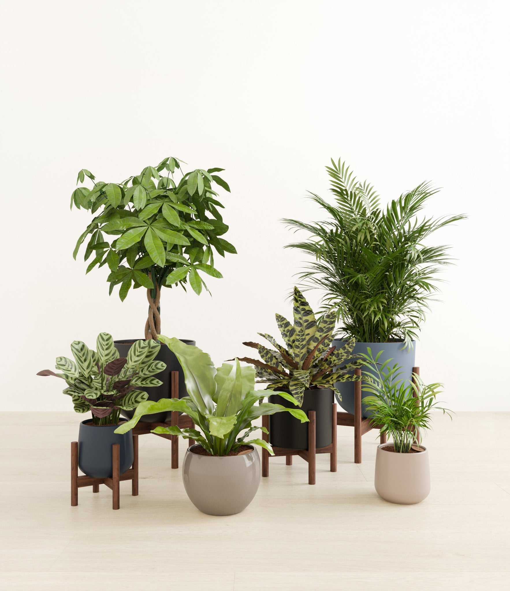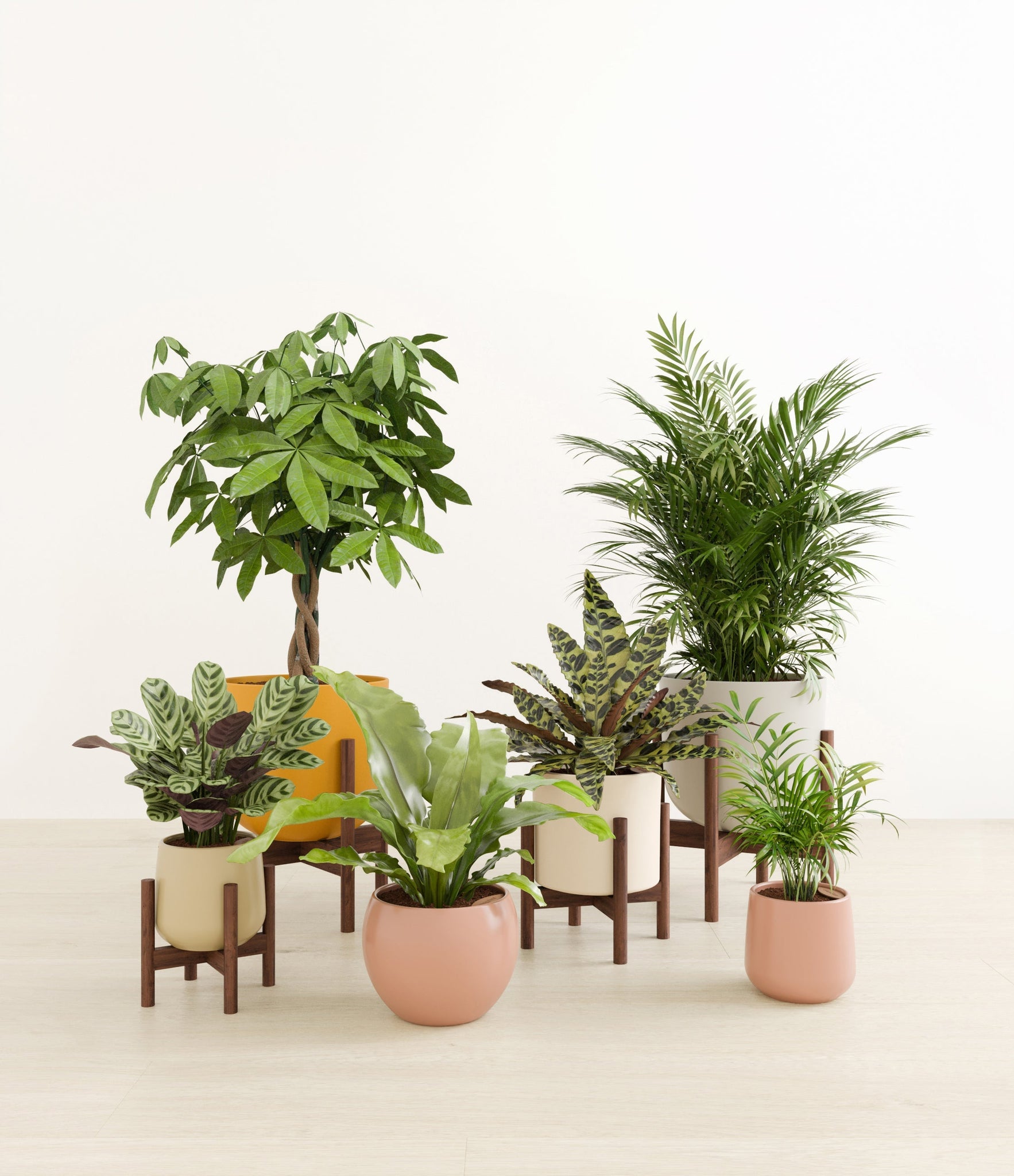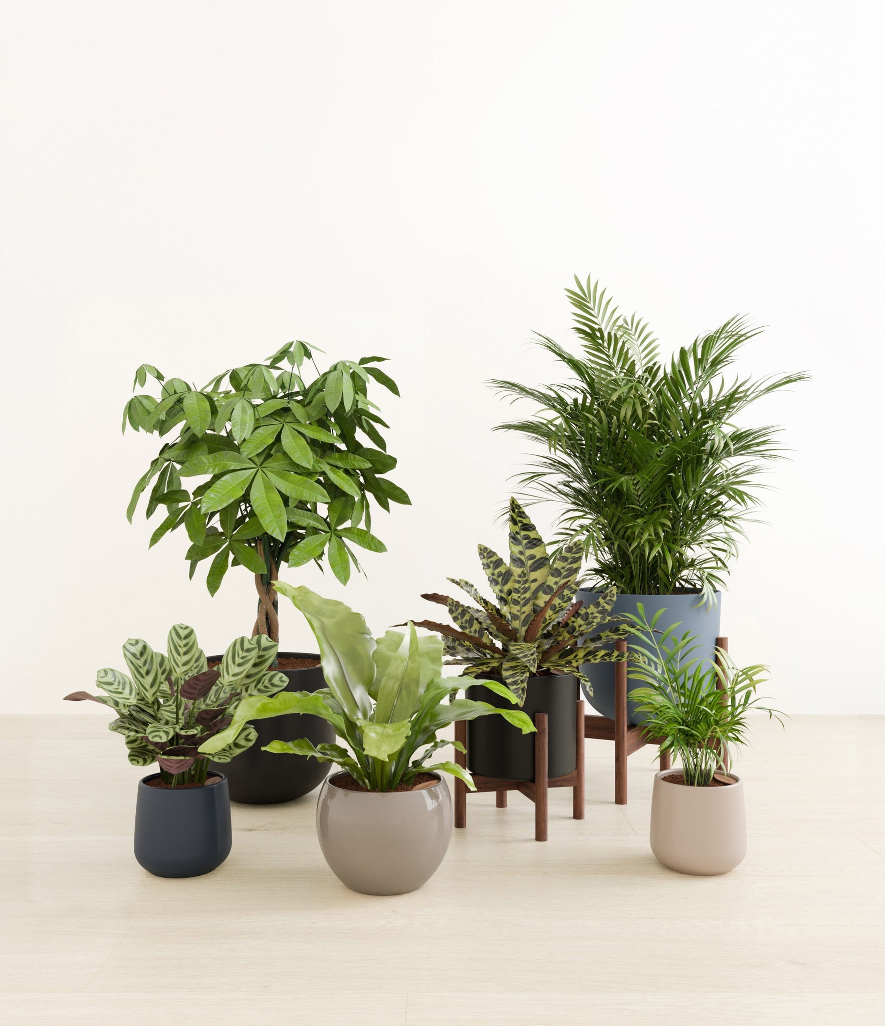 In this collection, you’ll receive six elegant, pet-friendly houseplants that make any indoor space a natural sanctuary. This set includes a small Marxii Calathea – wearing an eccentric reptilian pattern on its leaves; a small and large Parlor Palms requiring little light to deliver absolute radiance; a medium Birds’ Nest Fern bursting with bright green, wavy fronds in a fluttering rosette; a medium Rattlesnake Calathea, wearing its signature reptilian pattern; and a large Money Tree with leaves and a trunk symbolizing good fortune and prosperity.