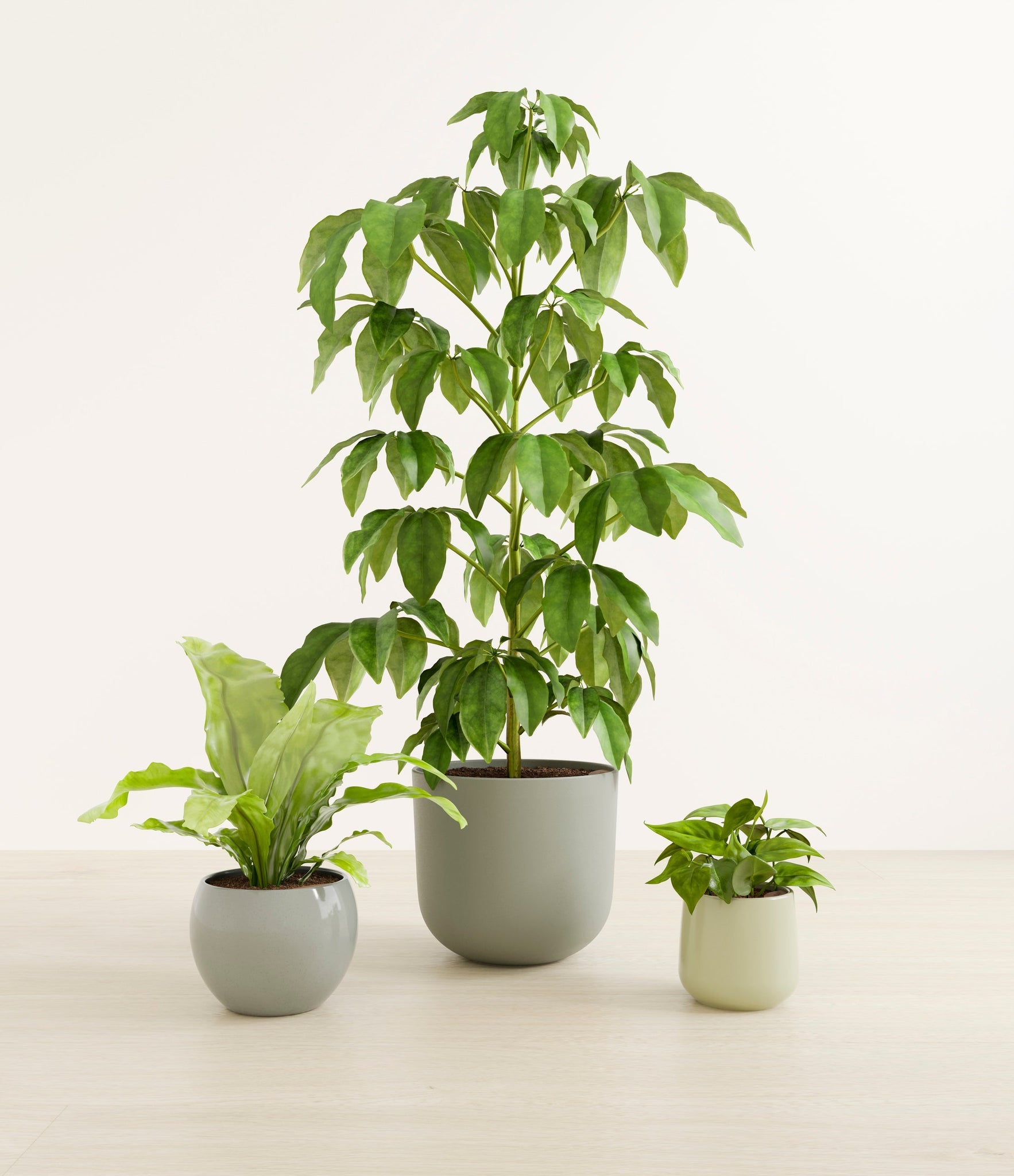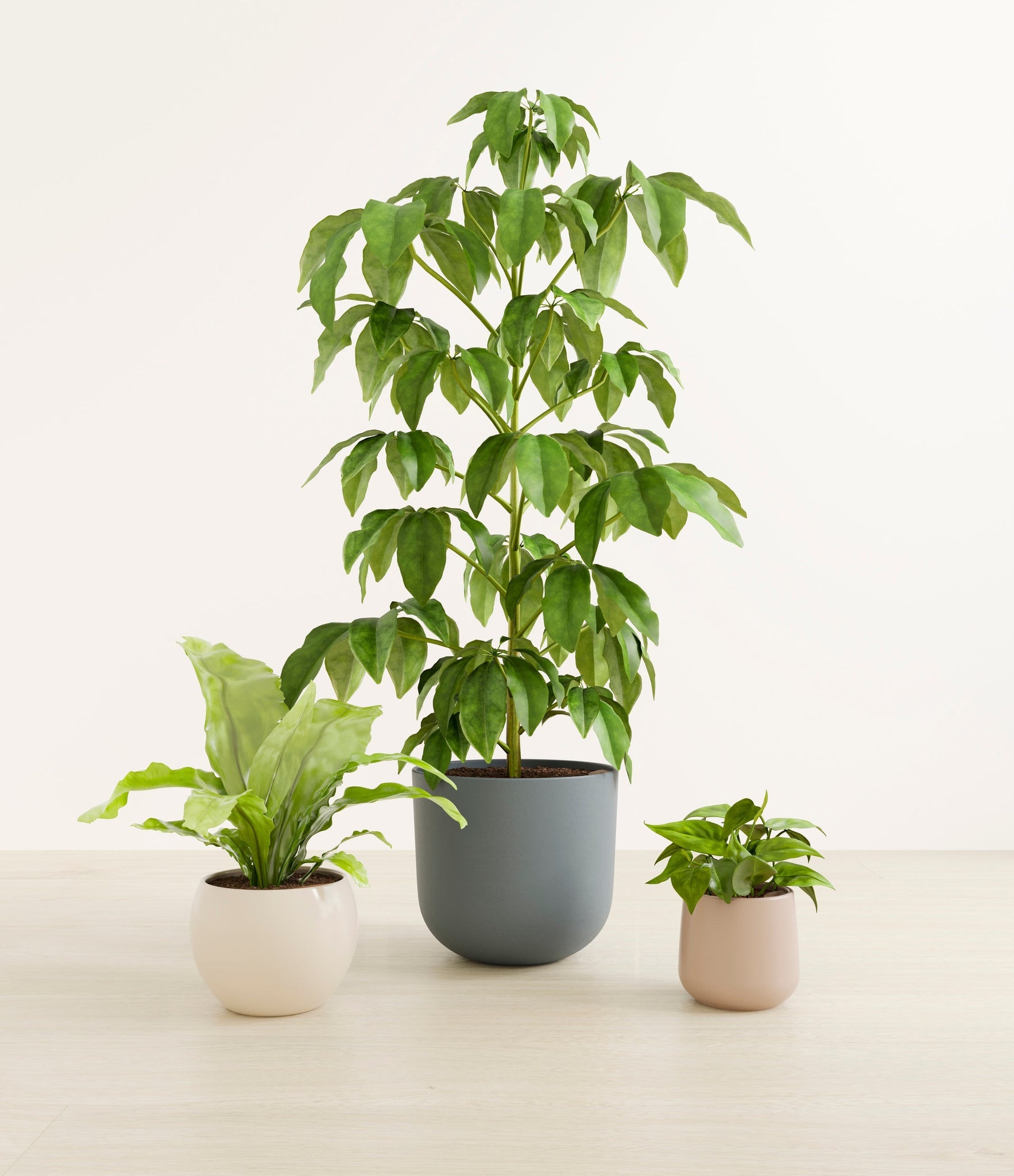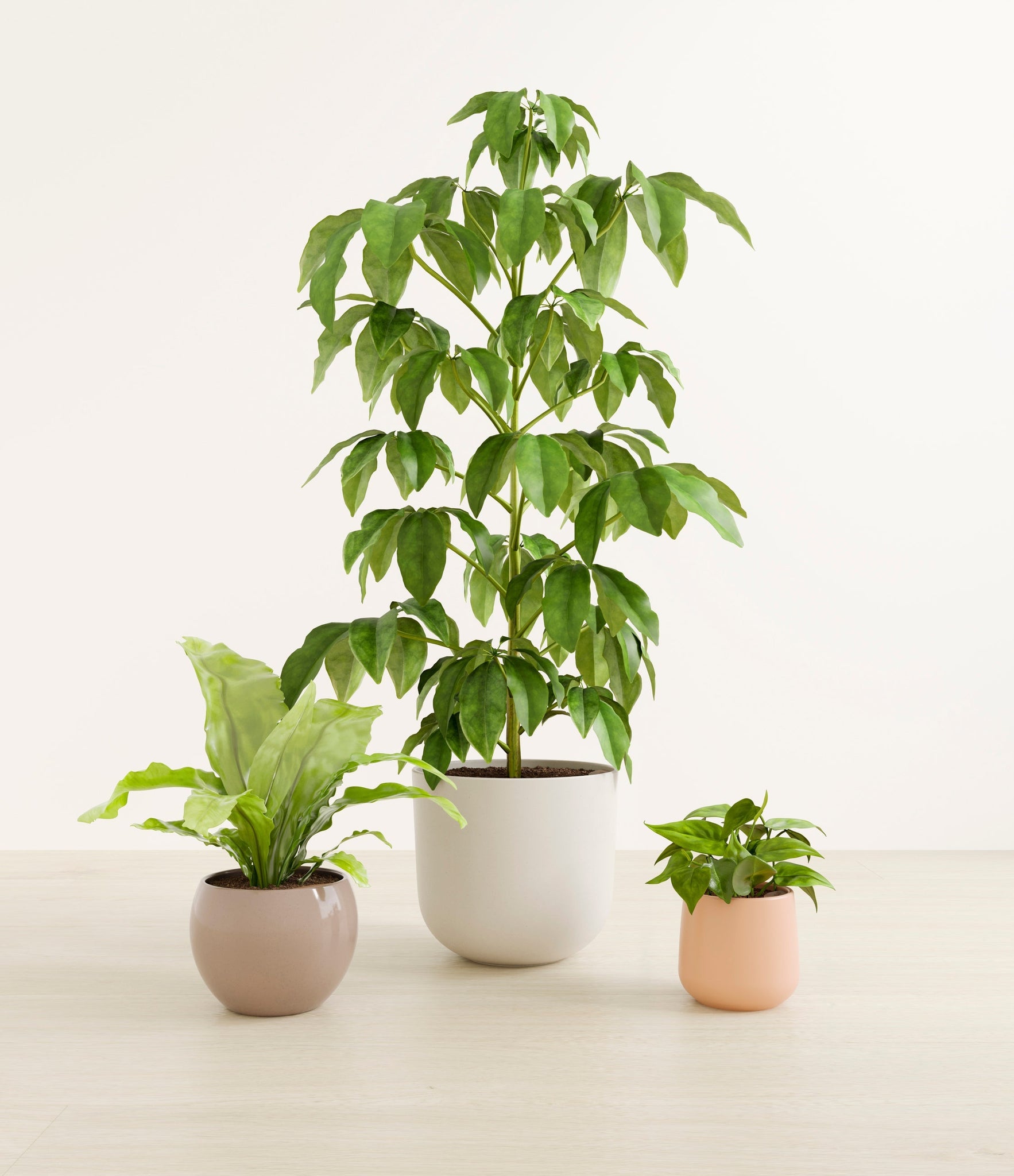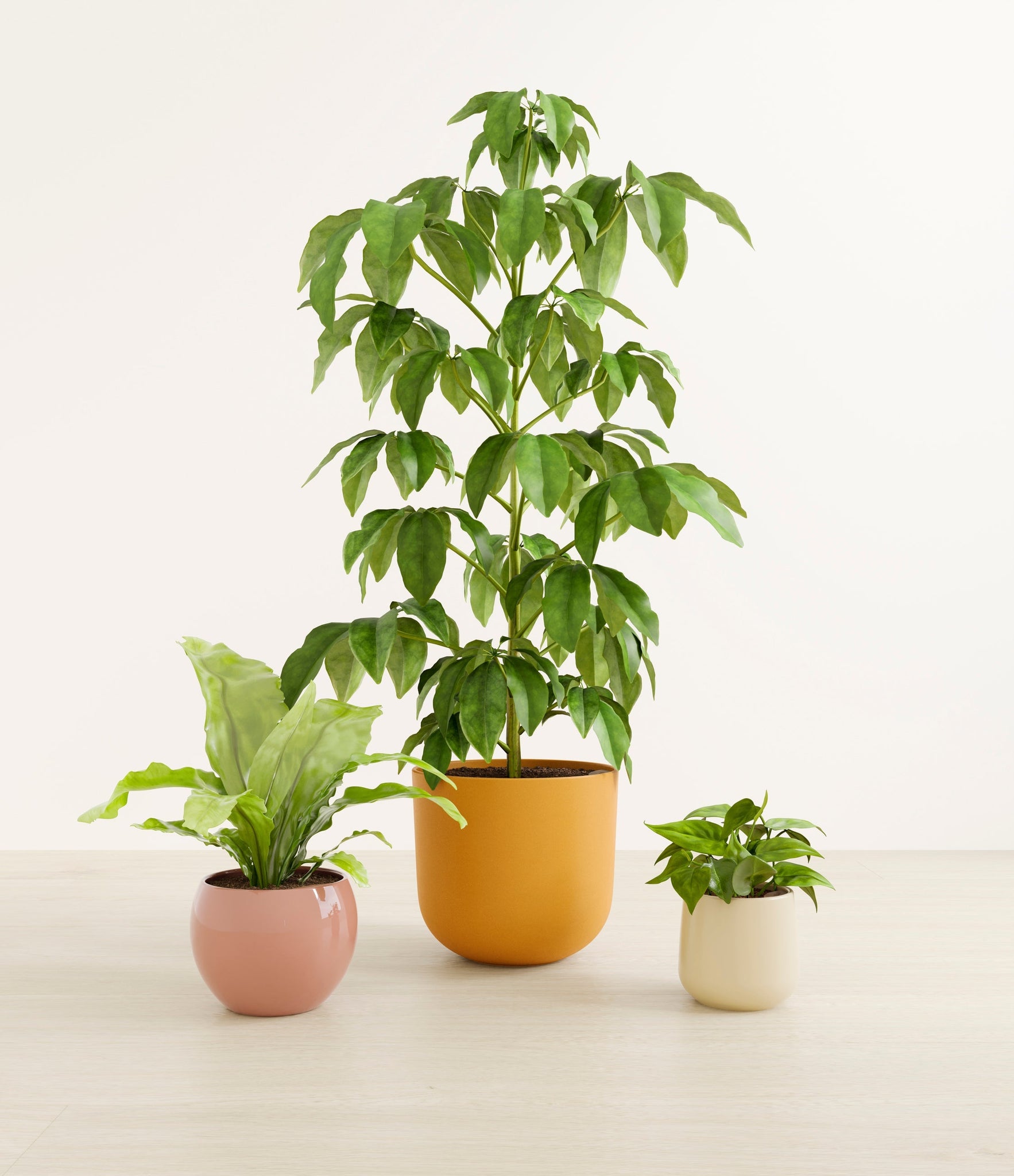 *****In this collection, you'll receive a curated trio of tropical plants designed to bring a harmonious, springy vibe to any space. The set includes a small Heartleaf Philodendron, known for its glossy, forest green heart-shaped foliage that lightens up any living space with a tropical jungle vibe. Alongside, a medium Bird’s Nest Fern with bright green, wavy fronds add a delicate touch to the collection. The finale is a huge Schefflera Amate, a stunning plant adored for its bright glossy green leaves that add a perfect touch of the tropics. Together, these three make a melody of lush greenery, sure to be the perfect spring ensemble for any plant lover.