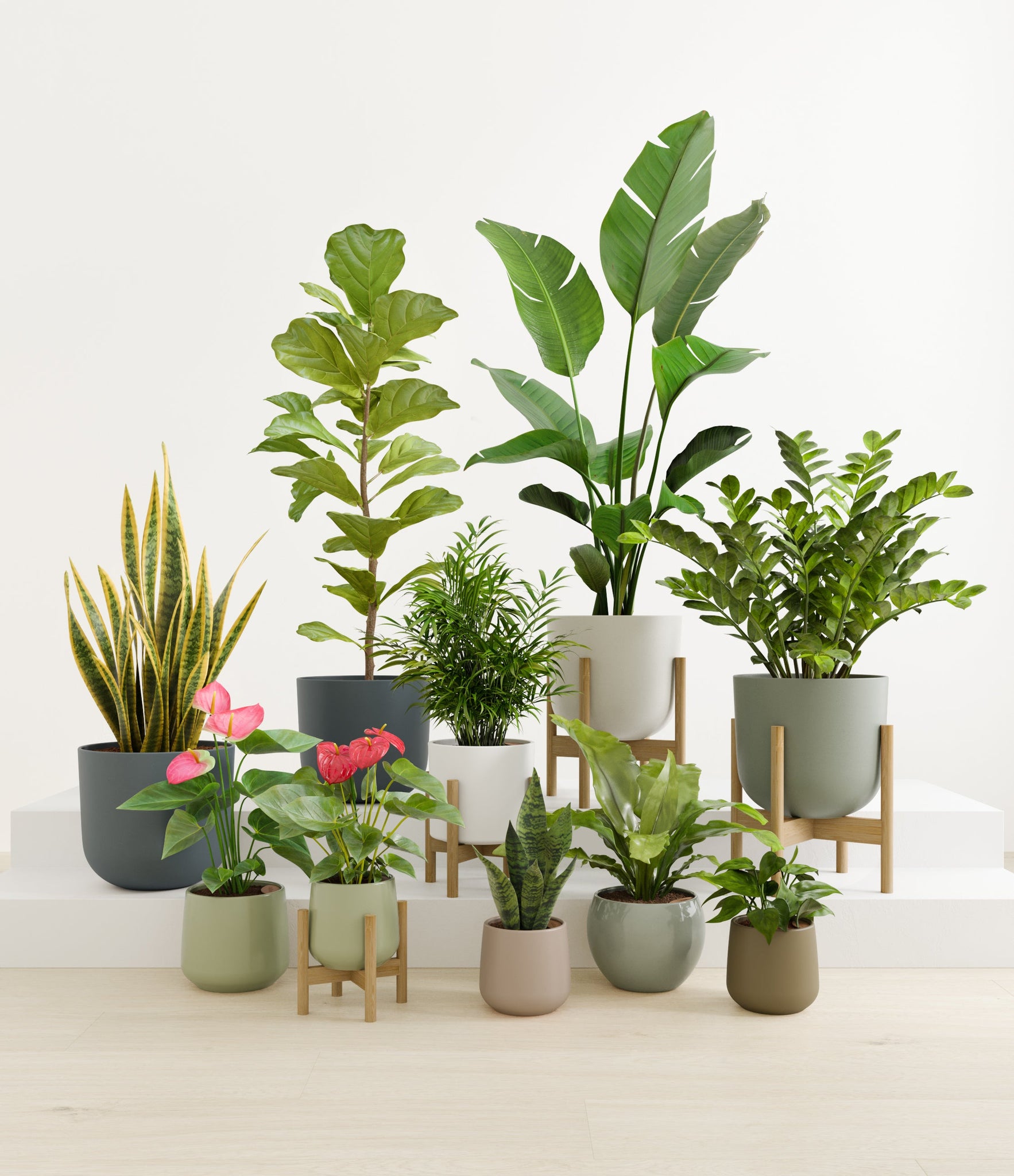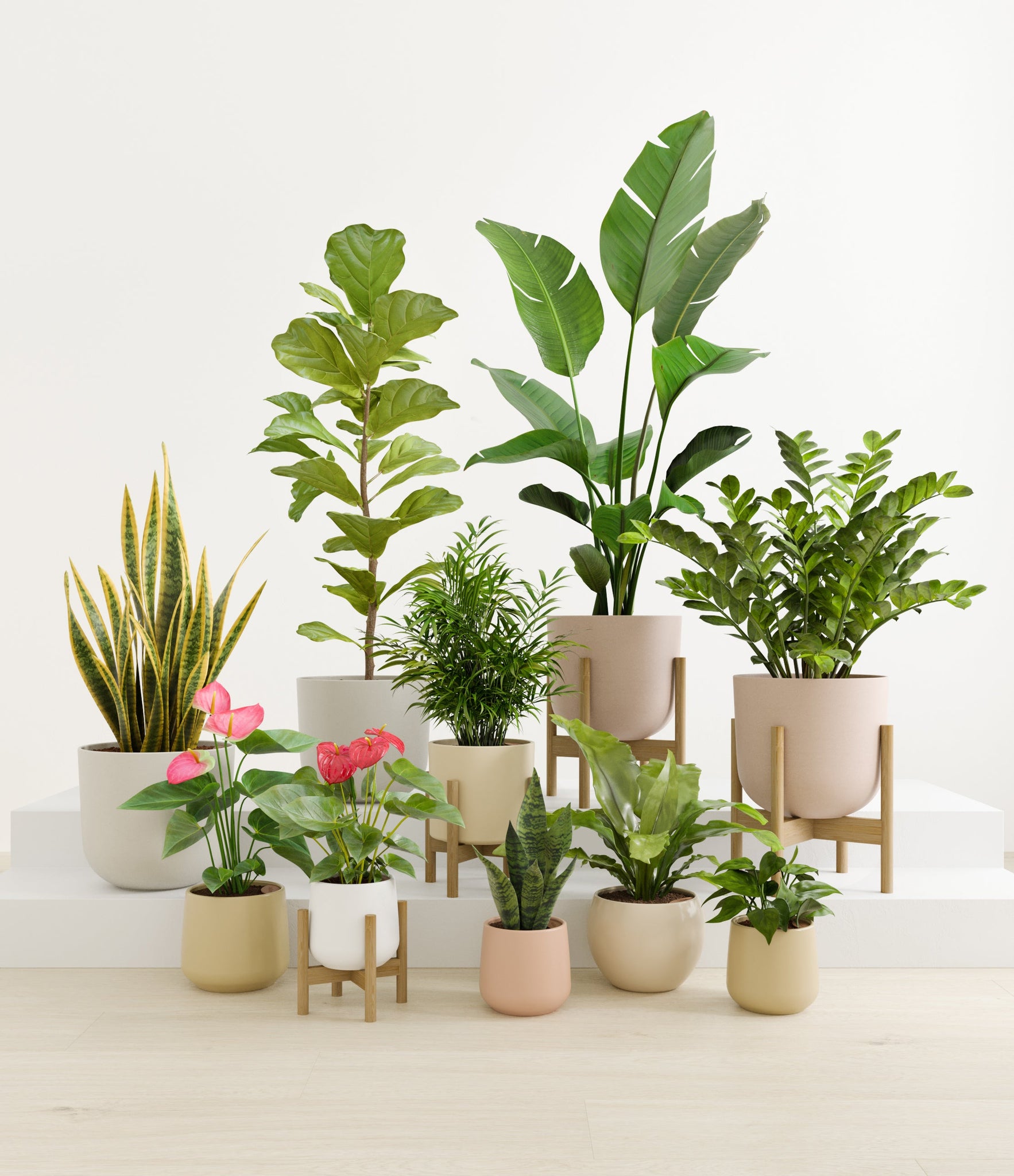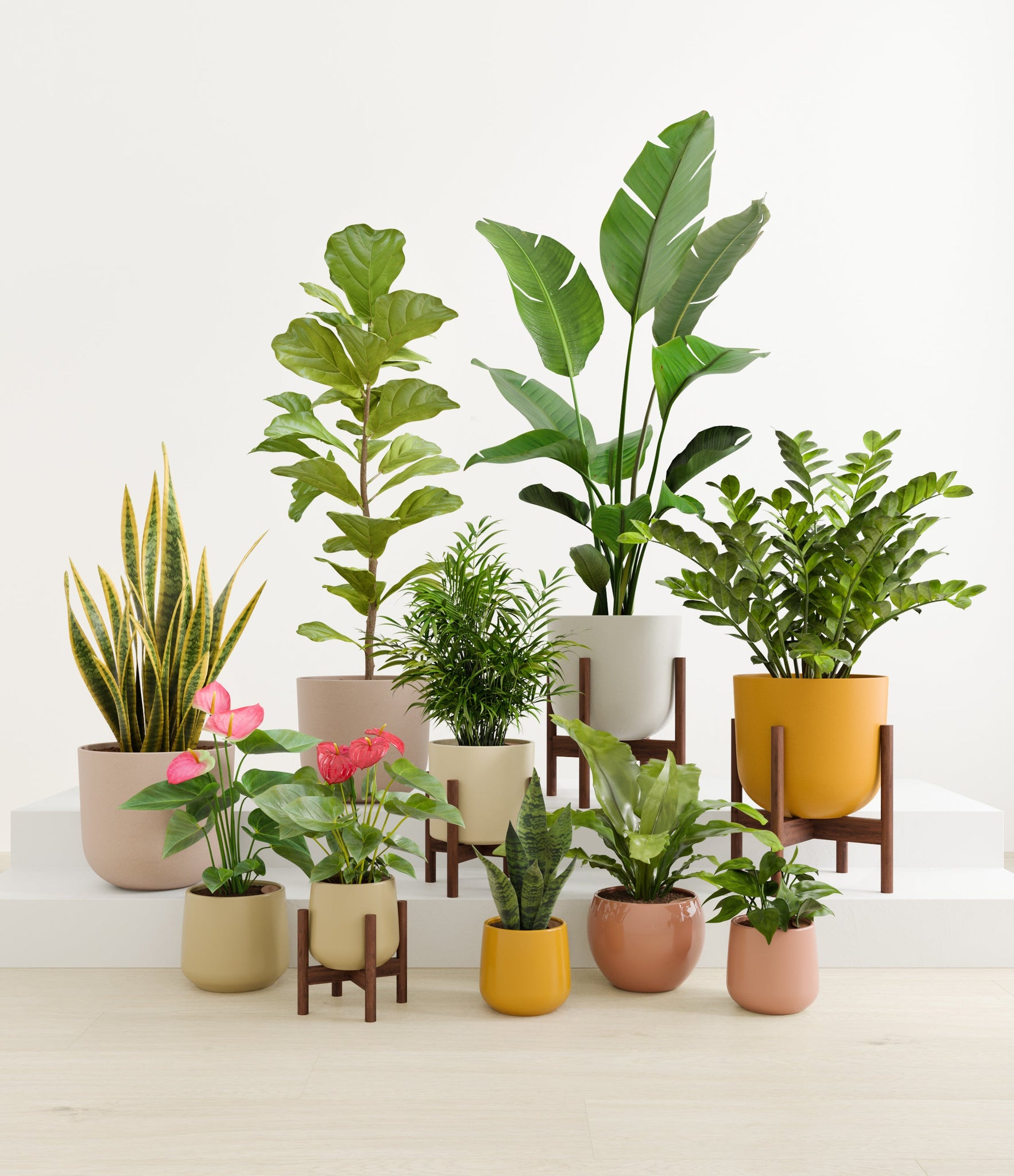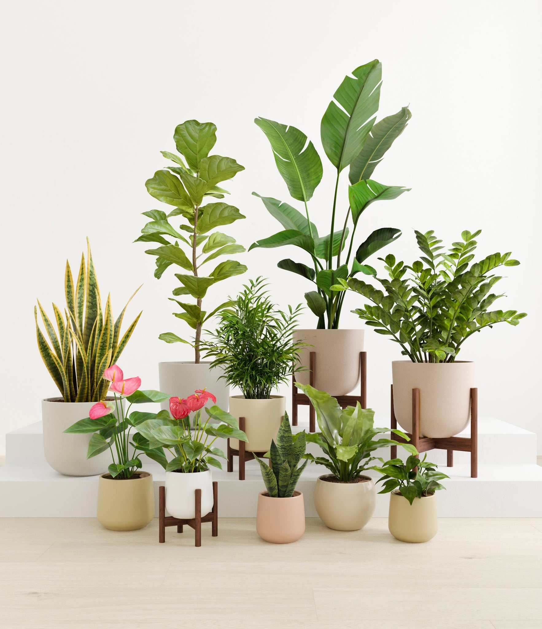 *****In this collection, you’ll receive ten beloved houseplants that blend structure, softness, and tropical flair in perfect harmony. The set includes a small Heartleaf Philodendron, trailing gently with soft, heart-shaped foliage; a small Anthurium Red, with heart-shaped waxy leaves that add a radiant pop of color; a small Green Snake Plant, known for its upright, sword-shaped leaves and effortless charm; a medium Birds’ Nest Fern, with bright, wavy fronds in a fluttering rosette; a medium Anthurium Sweet Dream, dressed in delicate pink spathes kissed with soft green; a medium Parlor Palm, a timeless classic with feathery fronds; a large Golden Snake Plant, offering resilience and vertical structure; a large ZZ Plant, loved for its glossy green leaves and tough nature; a huge Bird of Paradise, a striking centerpiece with long, arching fronds that bring height and movement; and a huge Fiddle Leaf Fig, with bold, lyre-shaped leaves that make any room feel styled and intentional. Together, these ten create a lush, layered indoor jungle, combining color, height, texture, and ease.