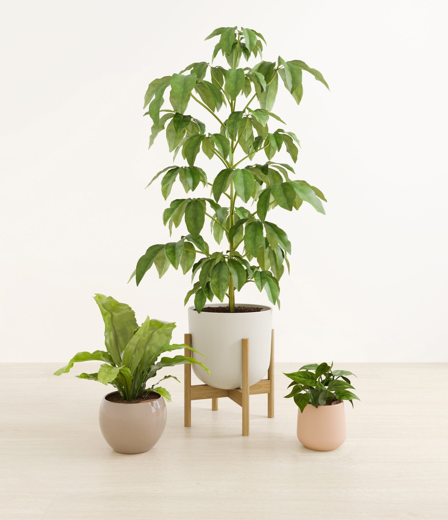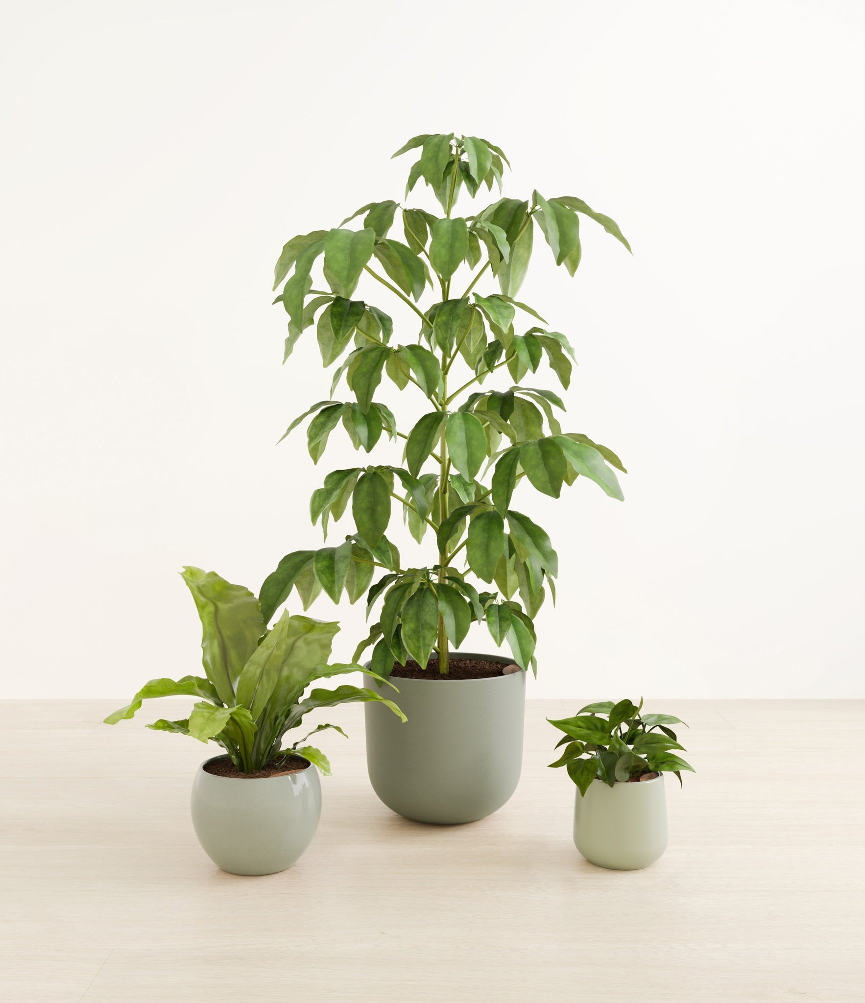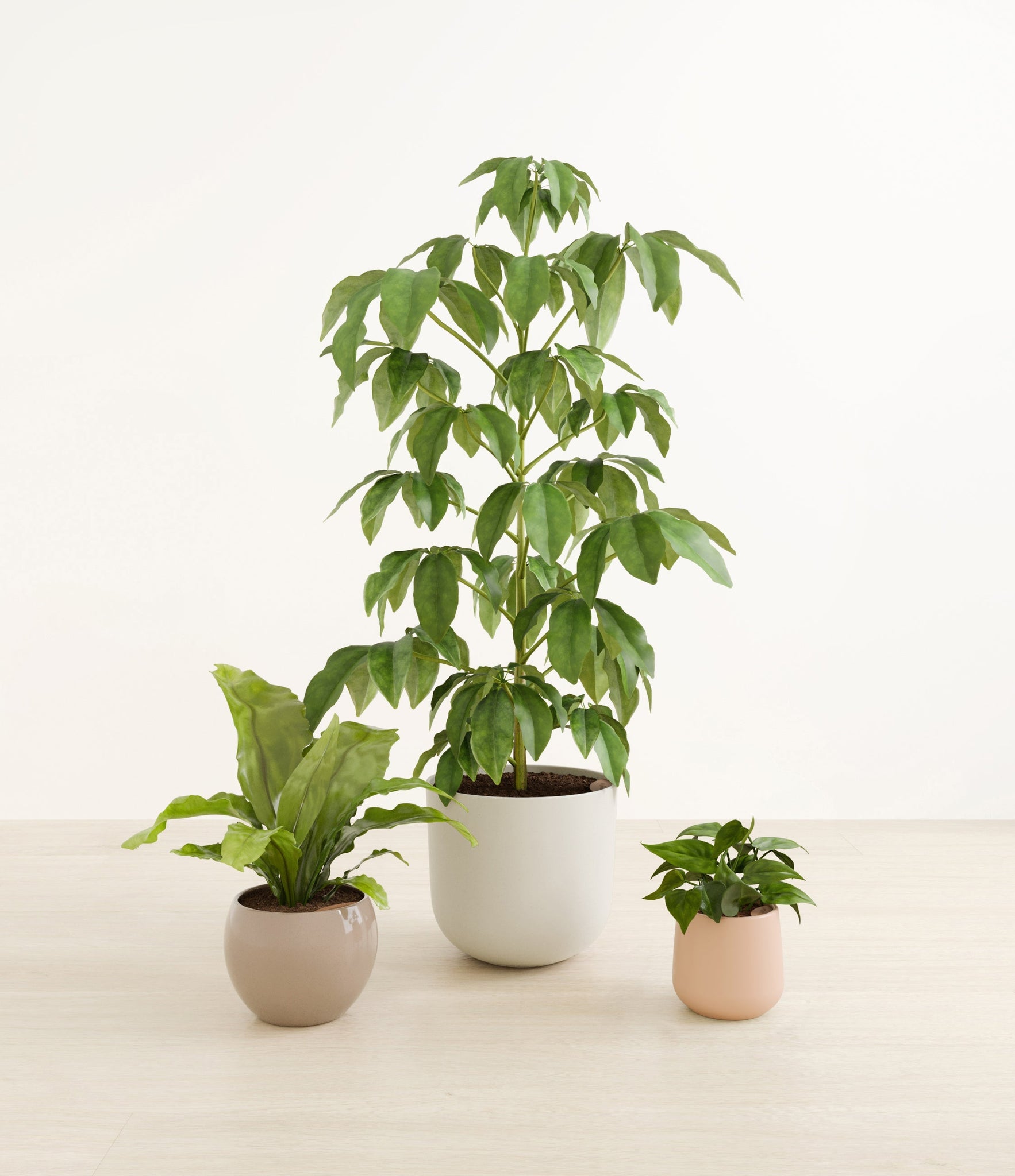 *****In this collection, you'll receive a curated trio of tropical plants designed to bring a harmonious, summery vibe to any space. The set includes a small Heartleaf Philodendron, known for its glossy, forest green heart-shaped foliage that lightens up any living space with a tropical jungle vibe. Alongside, a medium Bird’s Nest Fern with bright green, wavy fronds add a delicate touch to the collection. The finale is a huge Schefflera Amate, a stunning plant adored for its bright glossy green leaves that add a perfect touch of the tropics. Together, these three make a melody of lush greenery, sure to be the perfect summer ensemble for any plant lover.