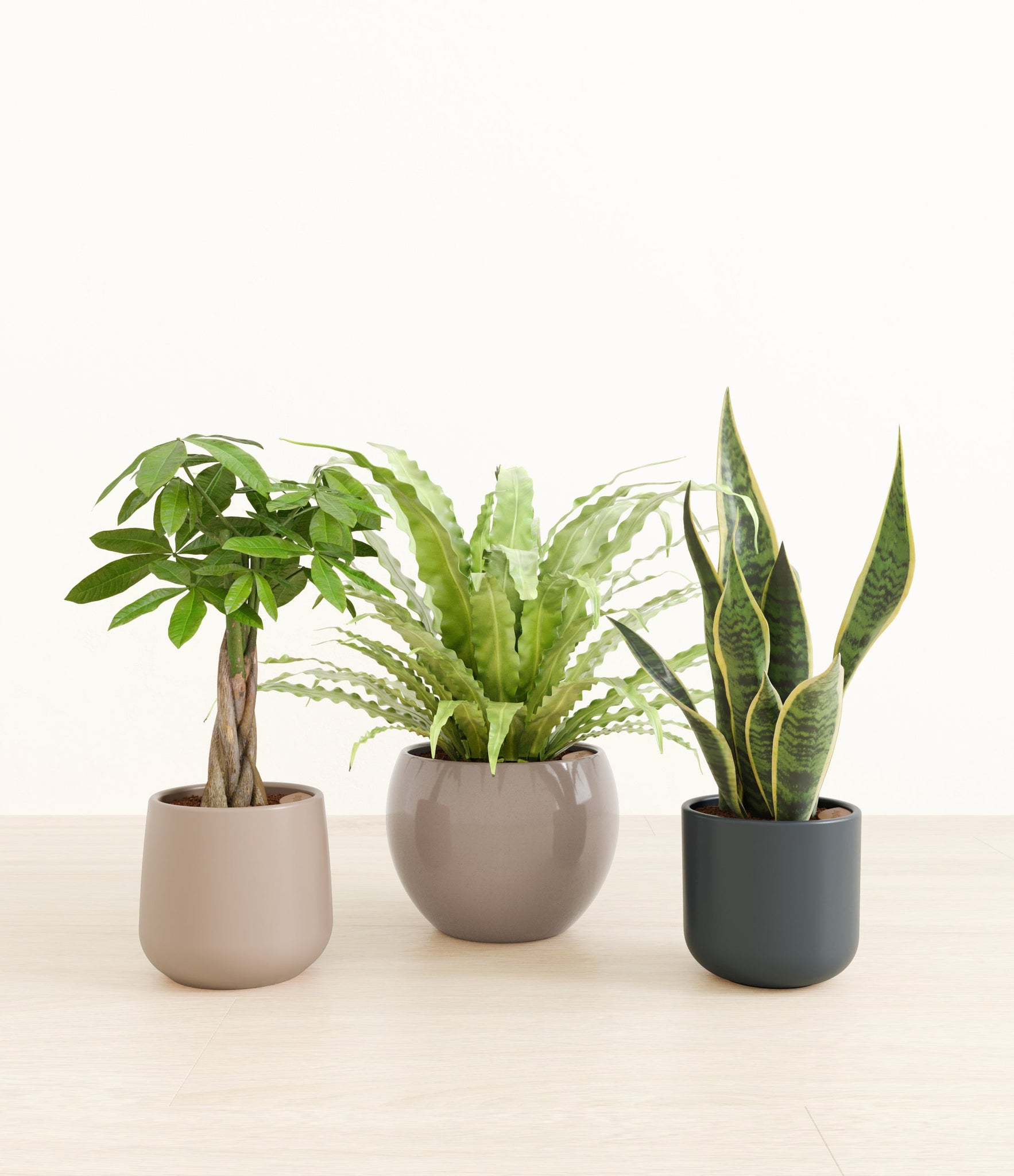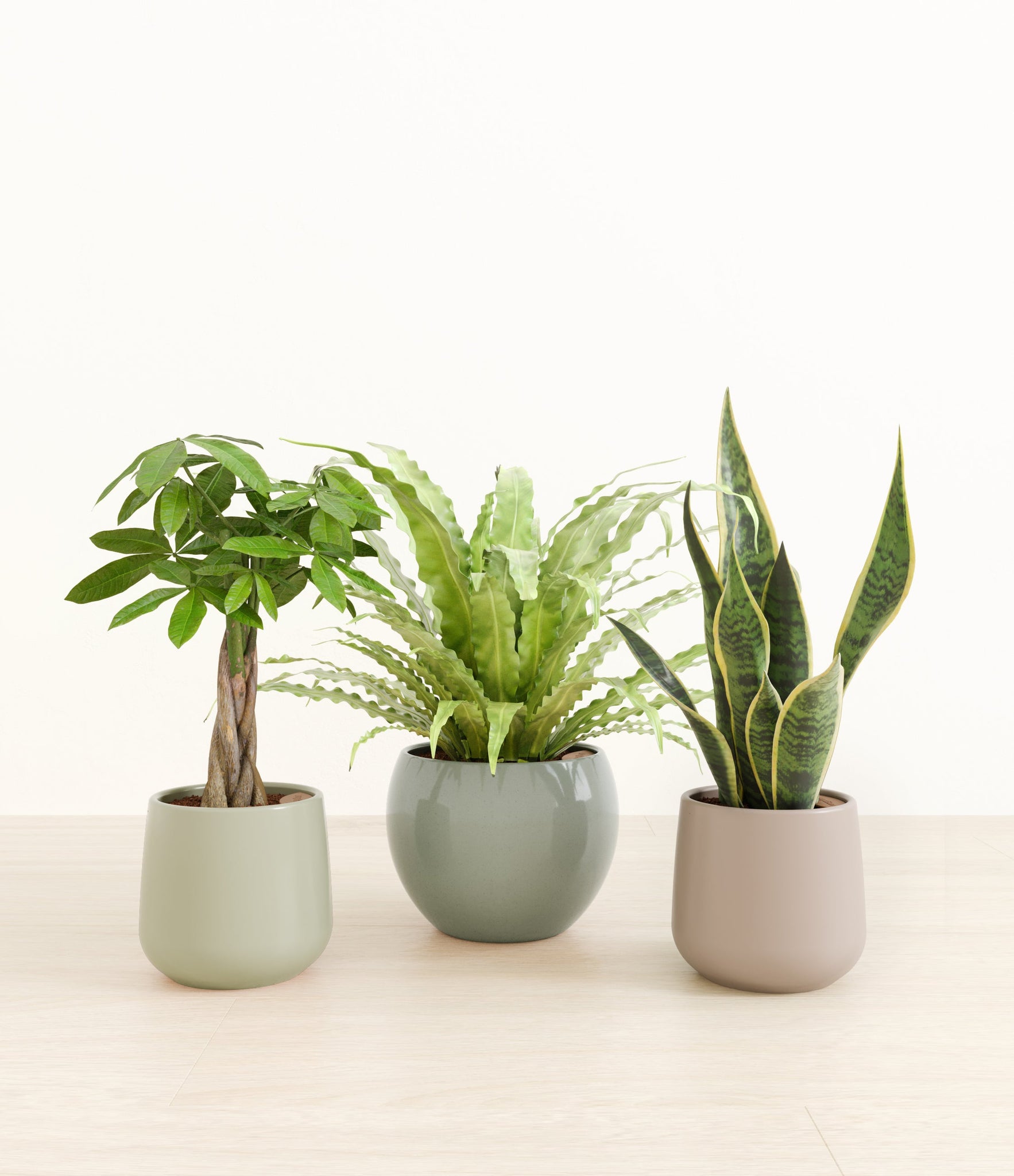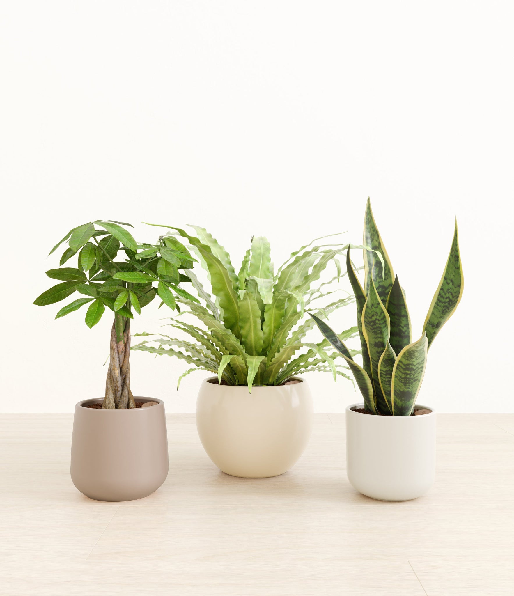 In this special collection, we celebrate New Year's with a trio of nature's finest. It features a small Money Tree, an emblem of wealth and easy upkeep; alongside it, a small Golden Snake Plant stands out with its air-cleaning abilities and lively, sun-kissed leaves; completing the trio is a medium Bird's Nest Fern, bringing a touch of soft, verdant elegance with its gentle, wavy fronds. Ideal for any indoor space, this collection harmonizes well-being and beauty, setting a rejuvenating tone for 2024.