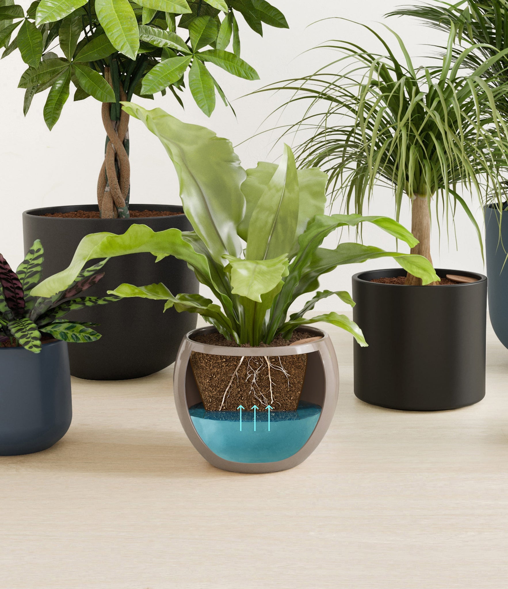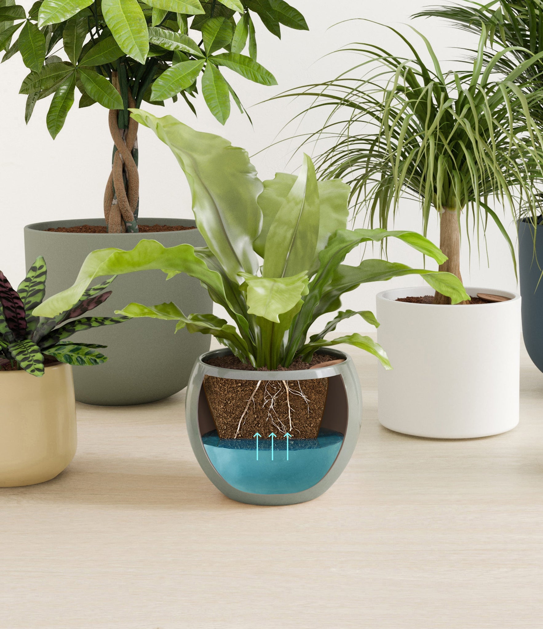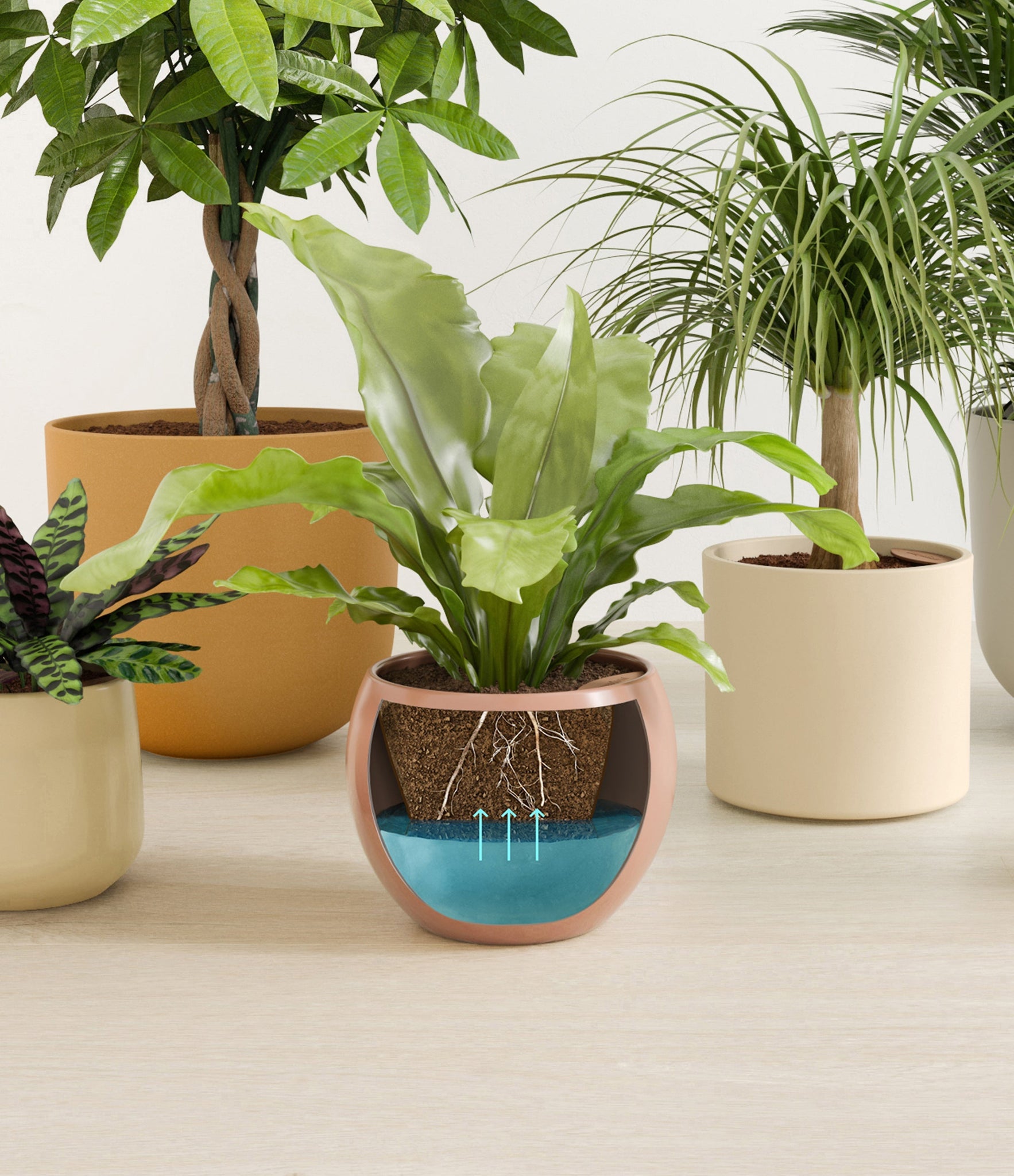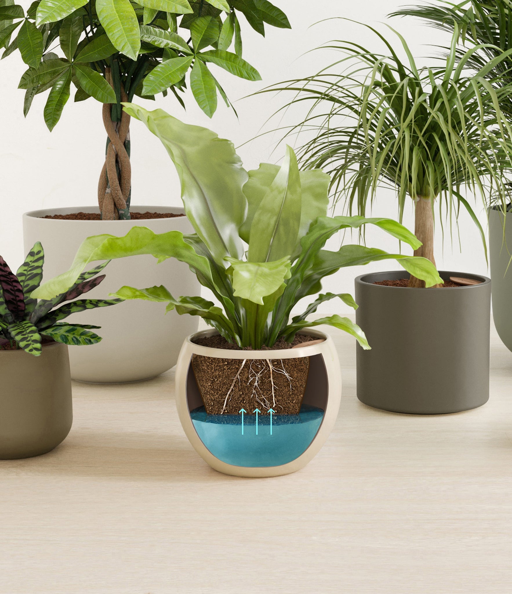 In this collection, you’ll receive six elegant, pet-friendly houseplants that make any indoor space a natural sanctuary. This set includes a small Rattlesnake Calathea – wearing an eccentric reptilian pattern on its leaves; a small and large Parlor Palms requiring little light to deliver absolute radiance; a medium Birds’ Nest Fern bursting with bright green, wavy fronds in a fluttering rosette; a medium Ponytail Palm - a resilient succulent with a flowing mane of leaves; and a large Money Tree with leaves and a trunk symbolizing good fortune and prosperity.