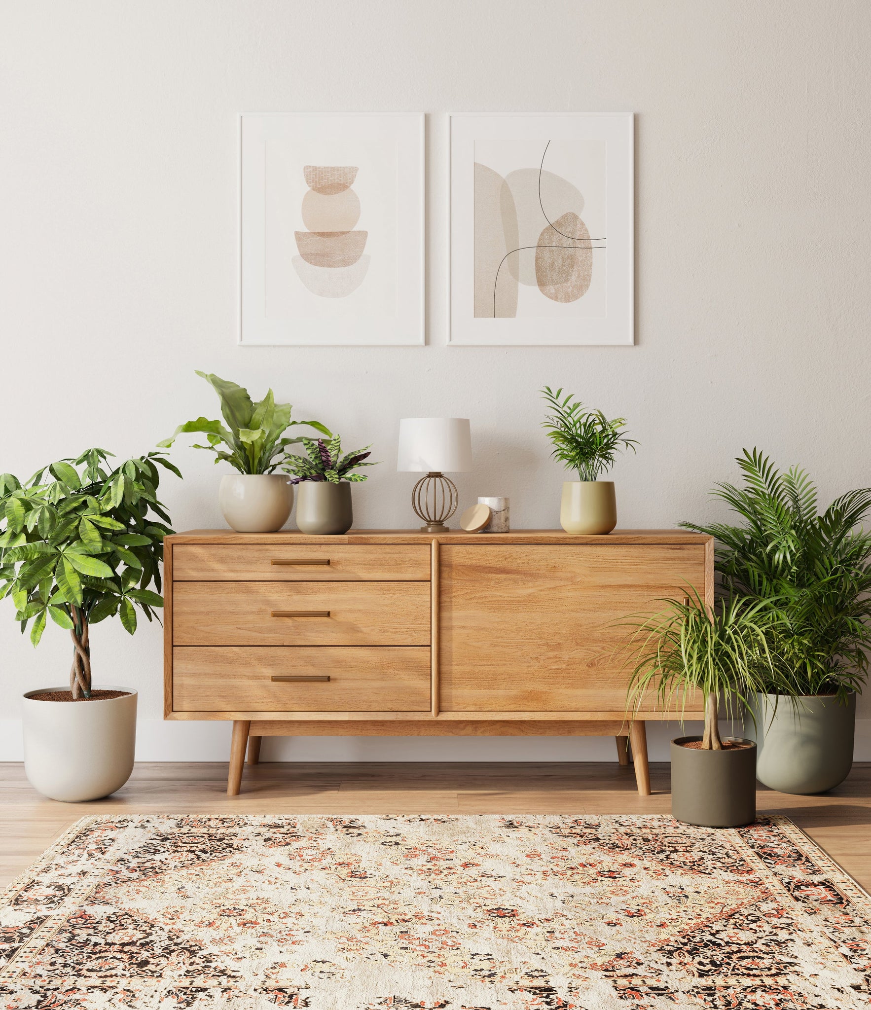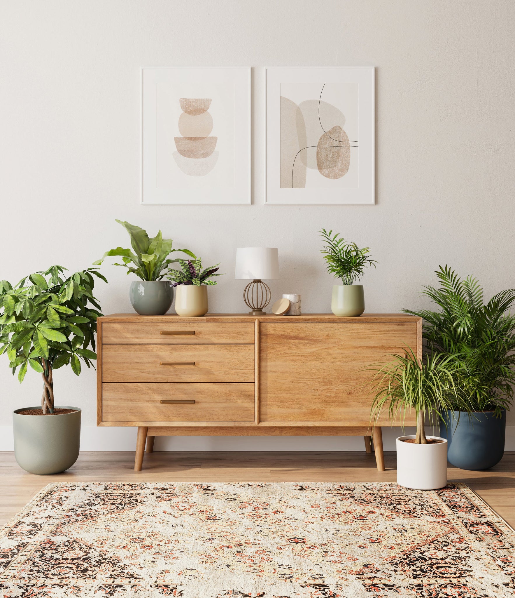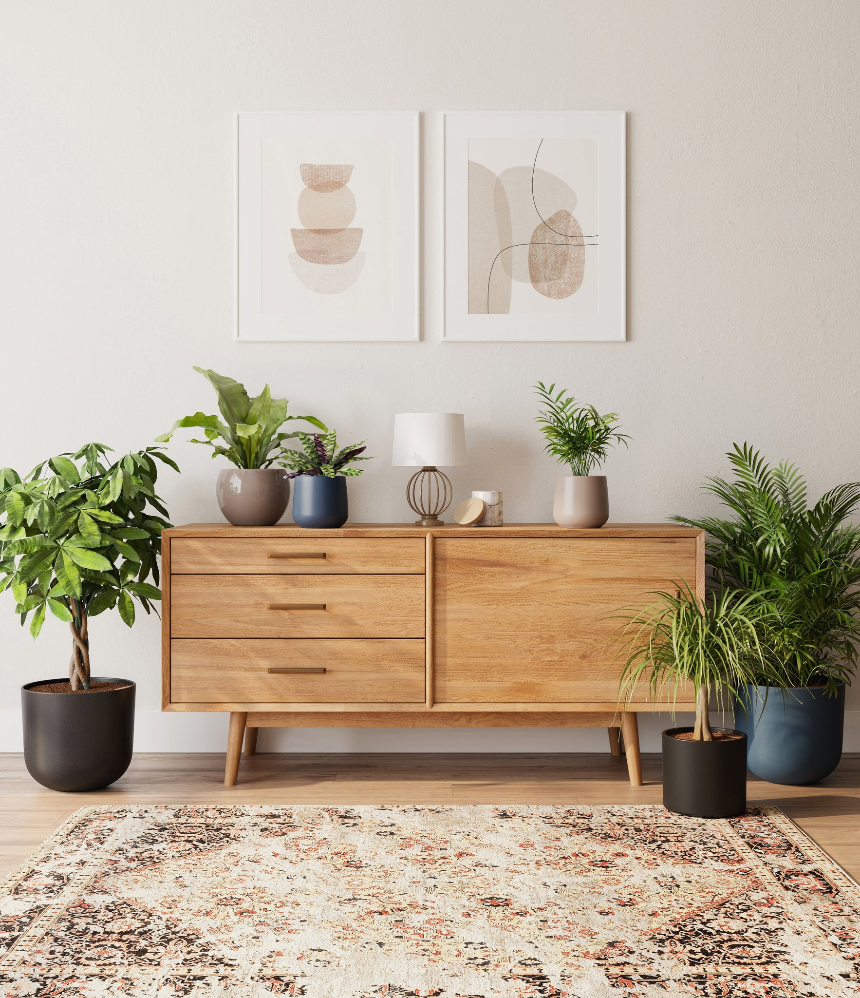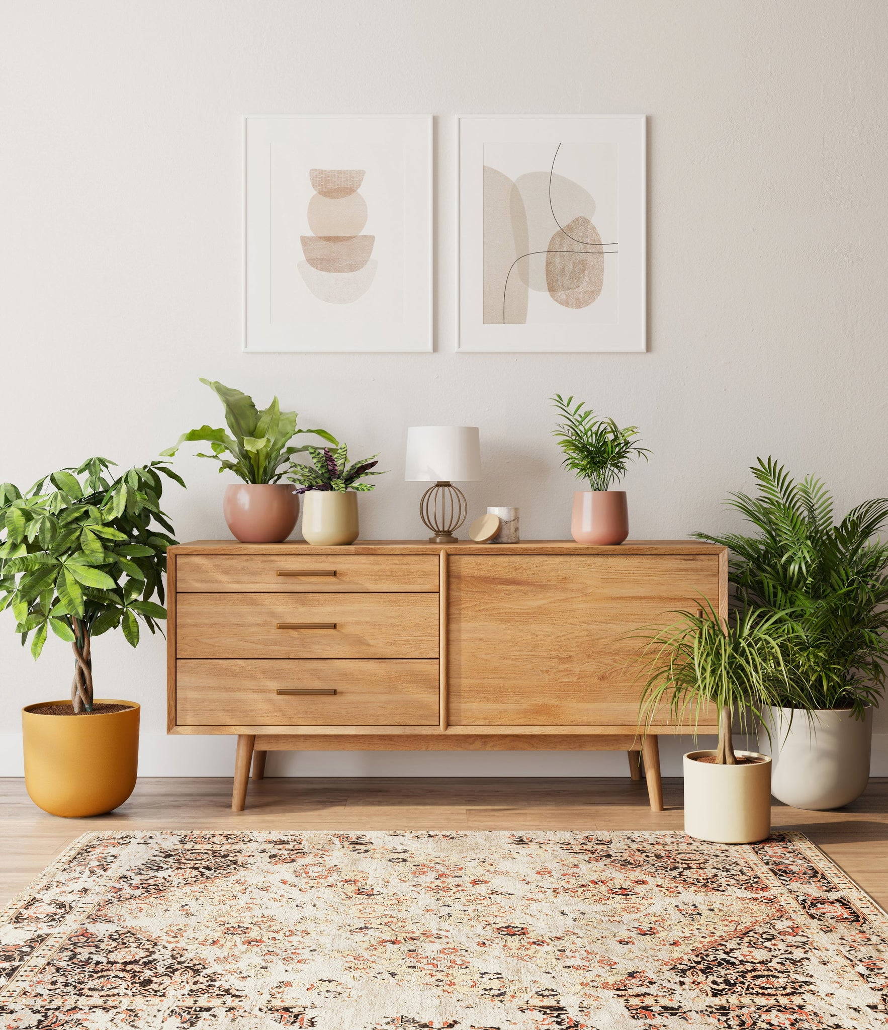 In this collection, you’ll receive six elegant, pet-friendly houseplants that make any indoor space a natural sanctuary. This set includes a small Rattlesnake Calathea – wearing an eccentric reptilian pattern on its leaves; a small and large Parlor Palms requiring little light to deliver absolute radiance; a medium Birds’ Nest Fern bursting with bright green, wavy fronds in a fluttering rosette; a medium Ponytail Palm - a resilient succulent with a flowing mane of leaves; and a large Money Tree with leaves and a trunk symbolizing good fortune and prosperity.