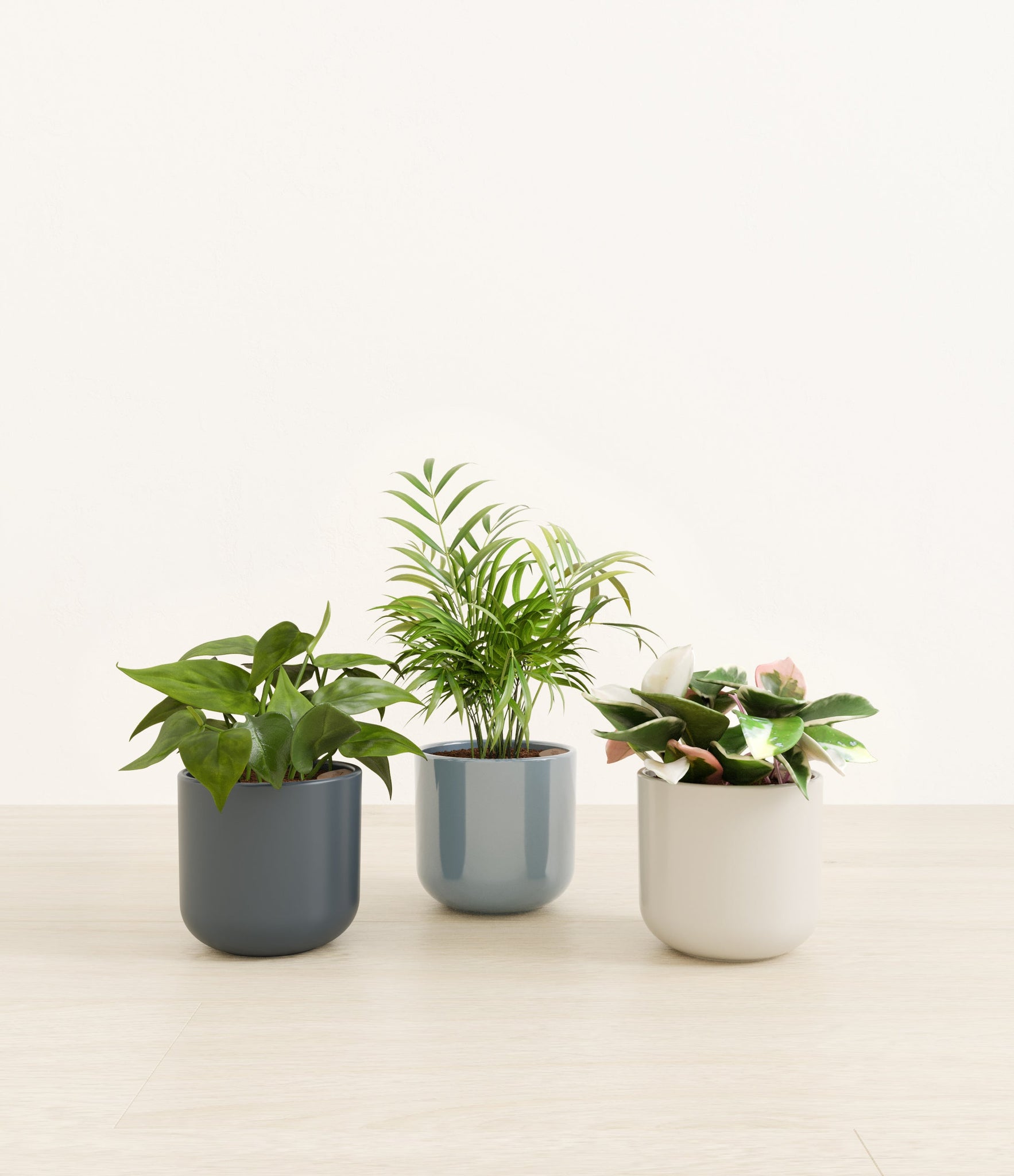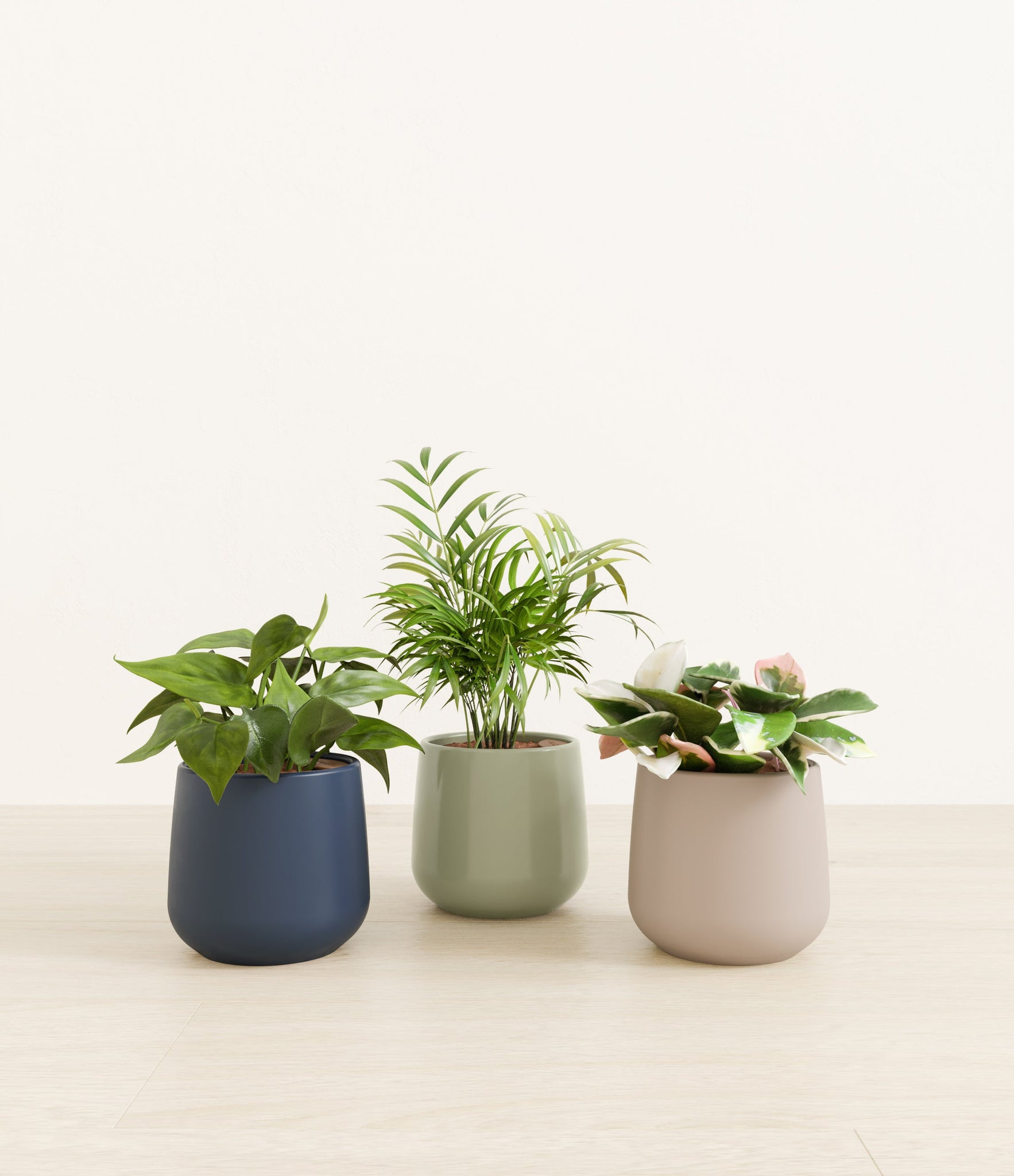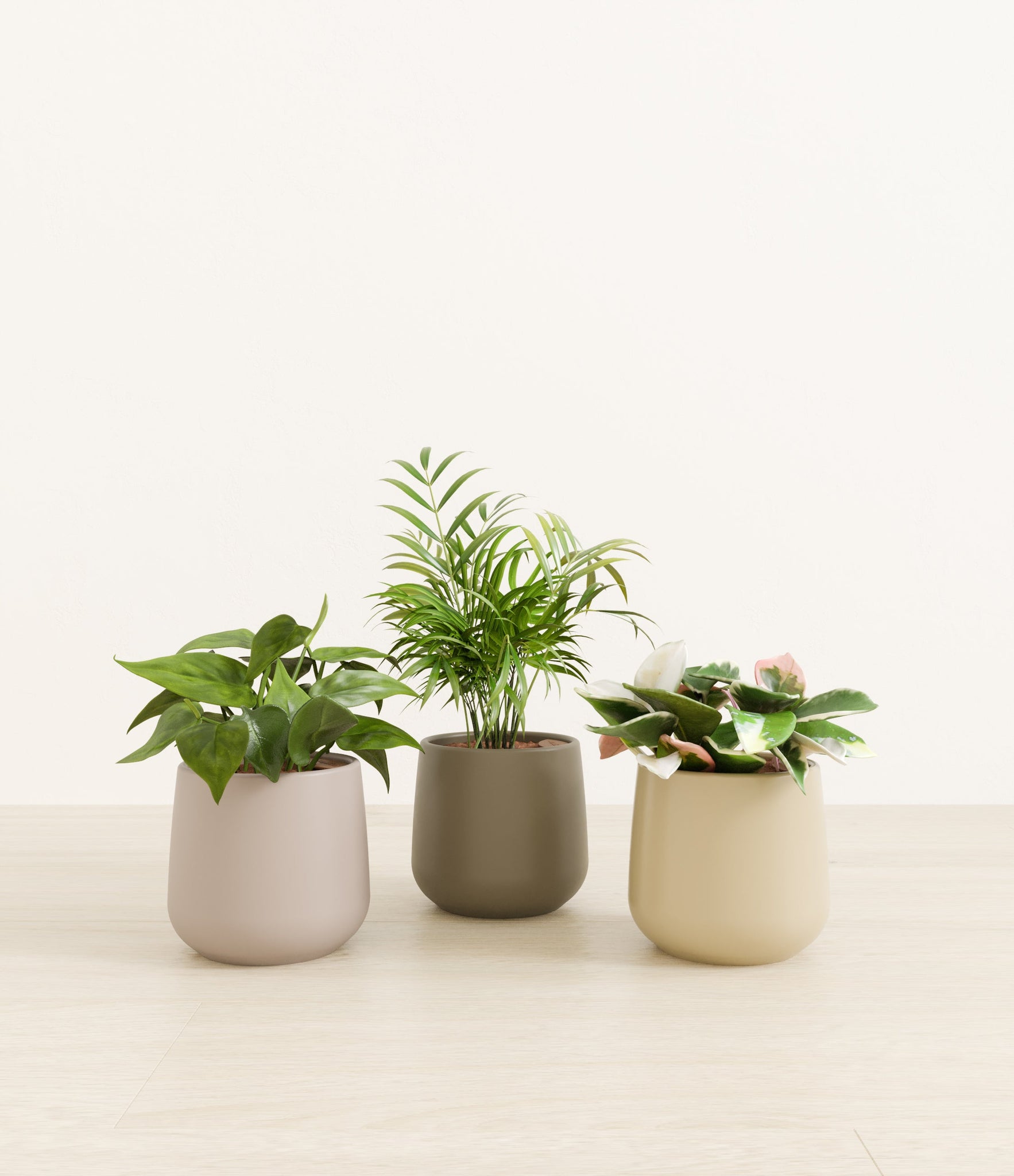 In this beautiful collection, you'll receive a carefully curated set of three small houseplants that instantly add a sense of joy and gratitude to any space. The assortment includes a Heartleaf Philodendron with glossy, vibrant heart-shaped foliage; a Hoya Tri-color, wearing variegations of pink and white on waxy, forest green leaves; and a Parlor Palm, known as the traditional centerpiece of the most impressive room in the house.