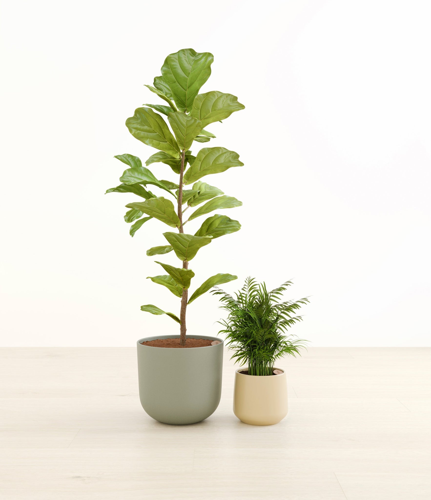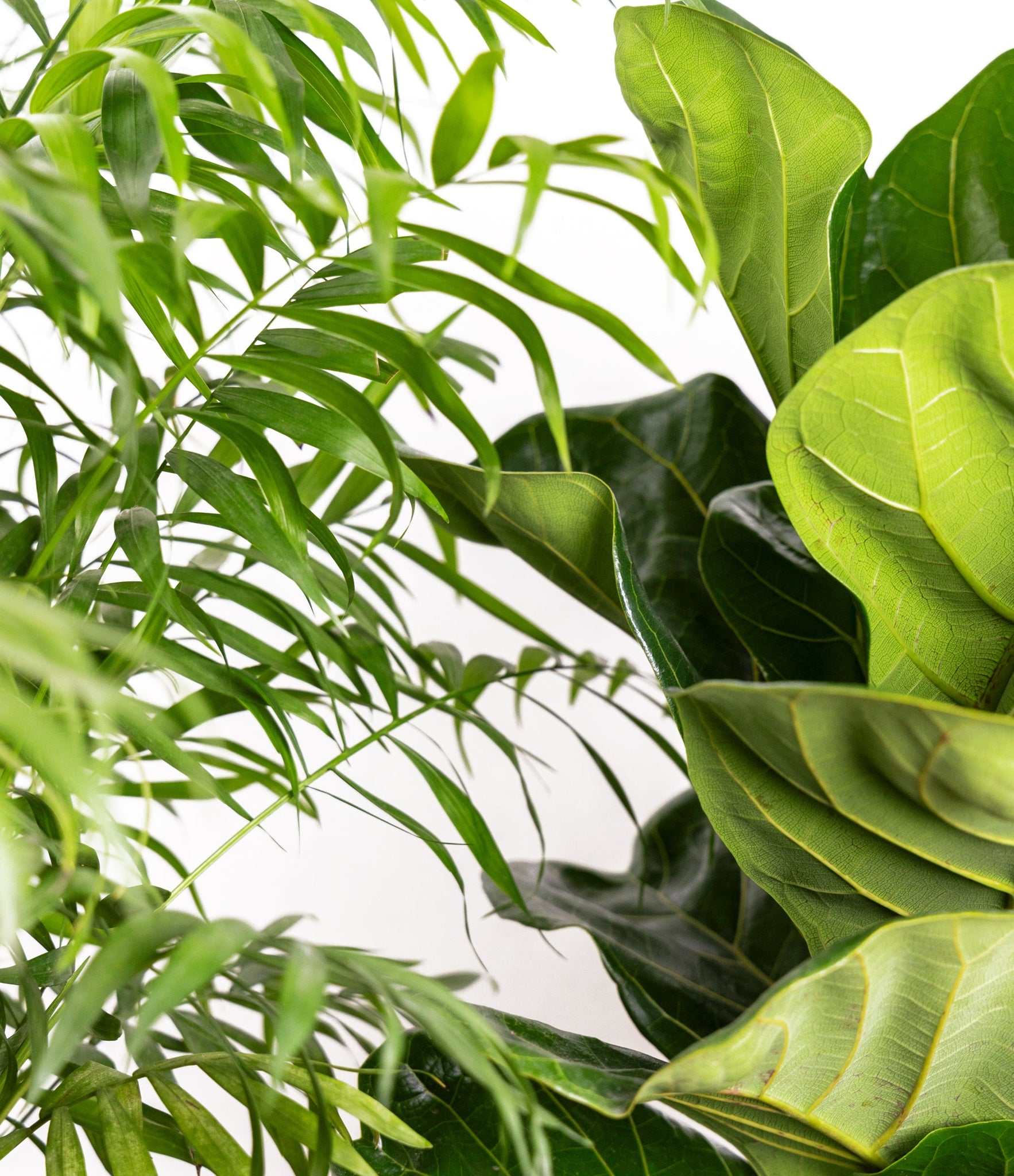 Embrace timeless elegance with this exquisite duo of houseplants, thoughtfully curated to enrich your space with vibrant greenery and natural beauty. This set features a medium Parlor Palm, a classic symbol of grace that brings a soothing tropical atmosphere to any room, alongside a huge Fiddle Leaf Fig, renowned for its majestic, glossy leaves that captivate and charm onlookers.
