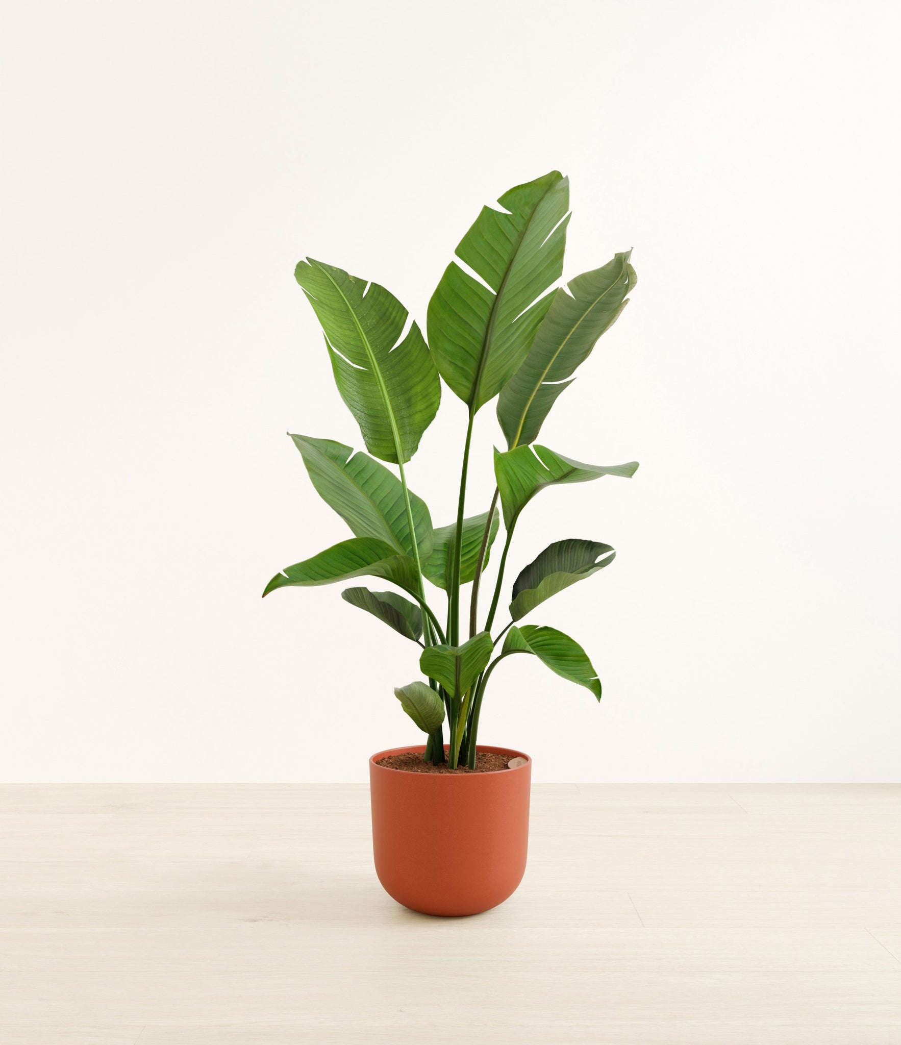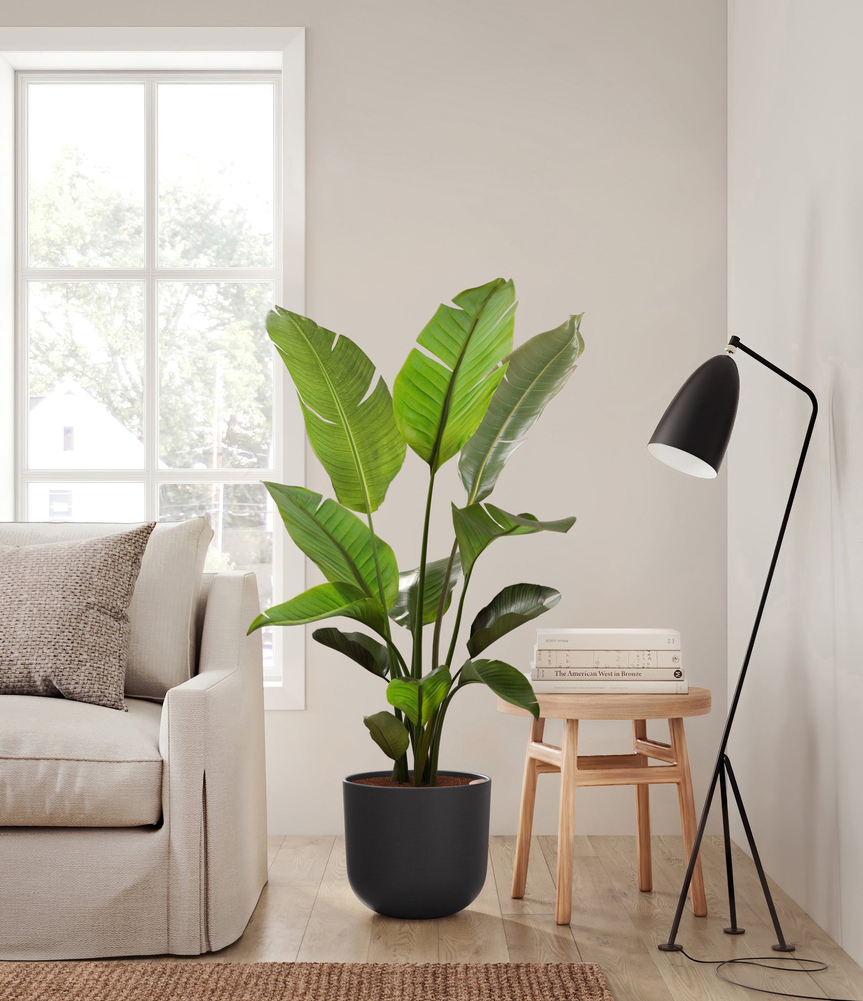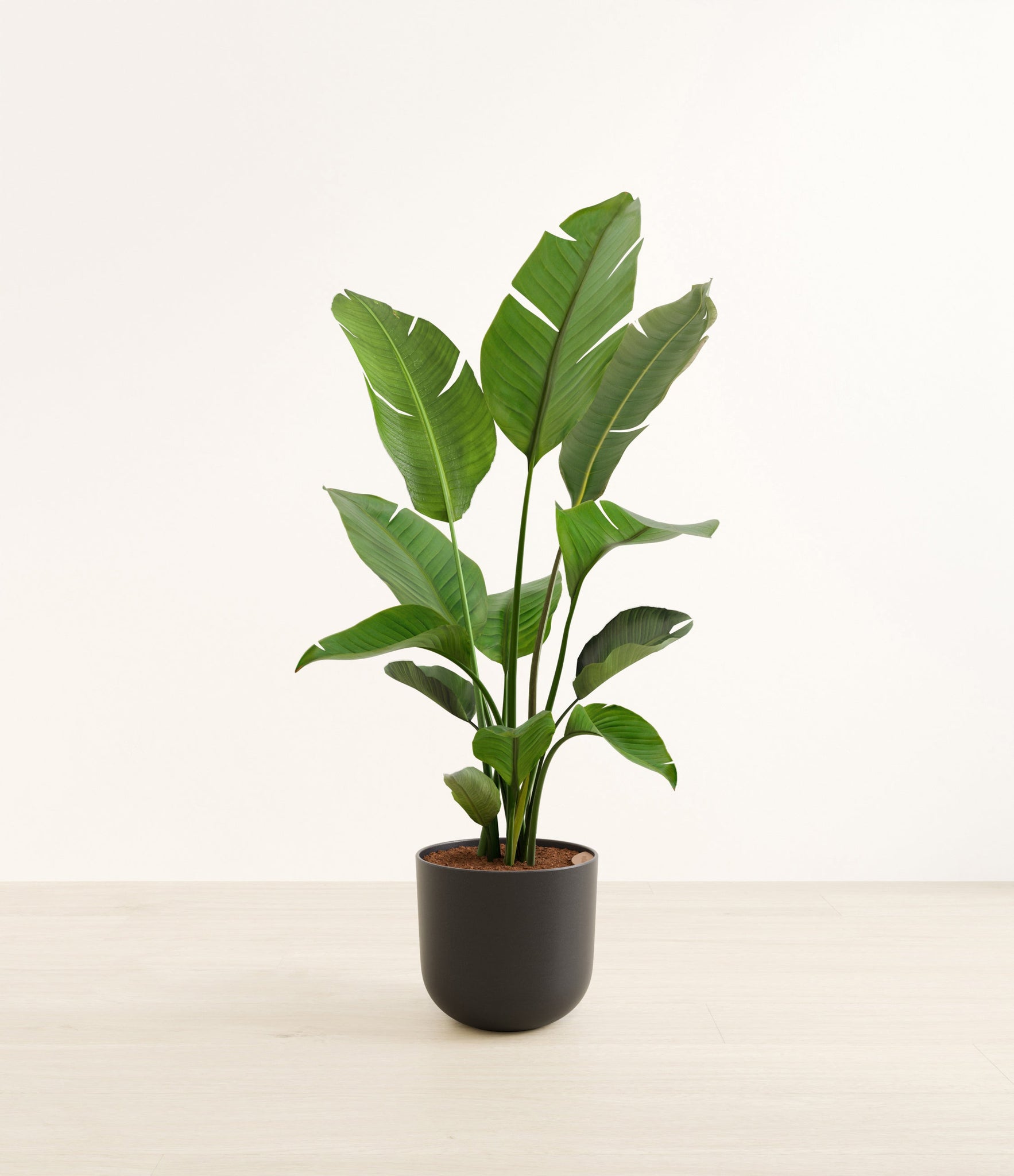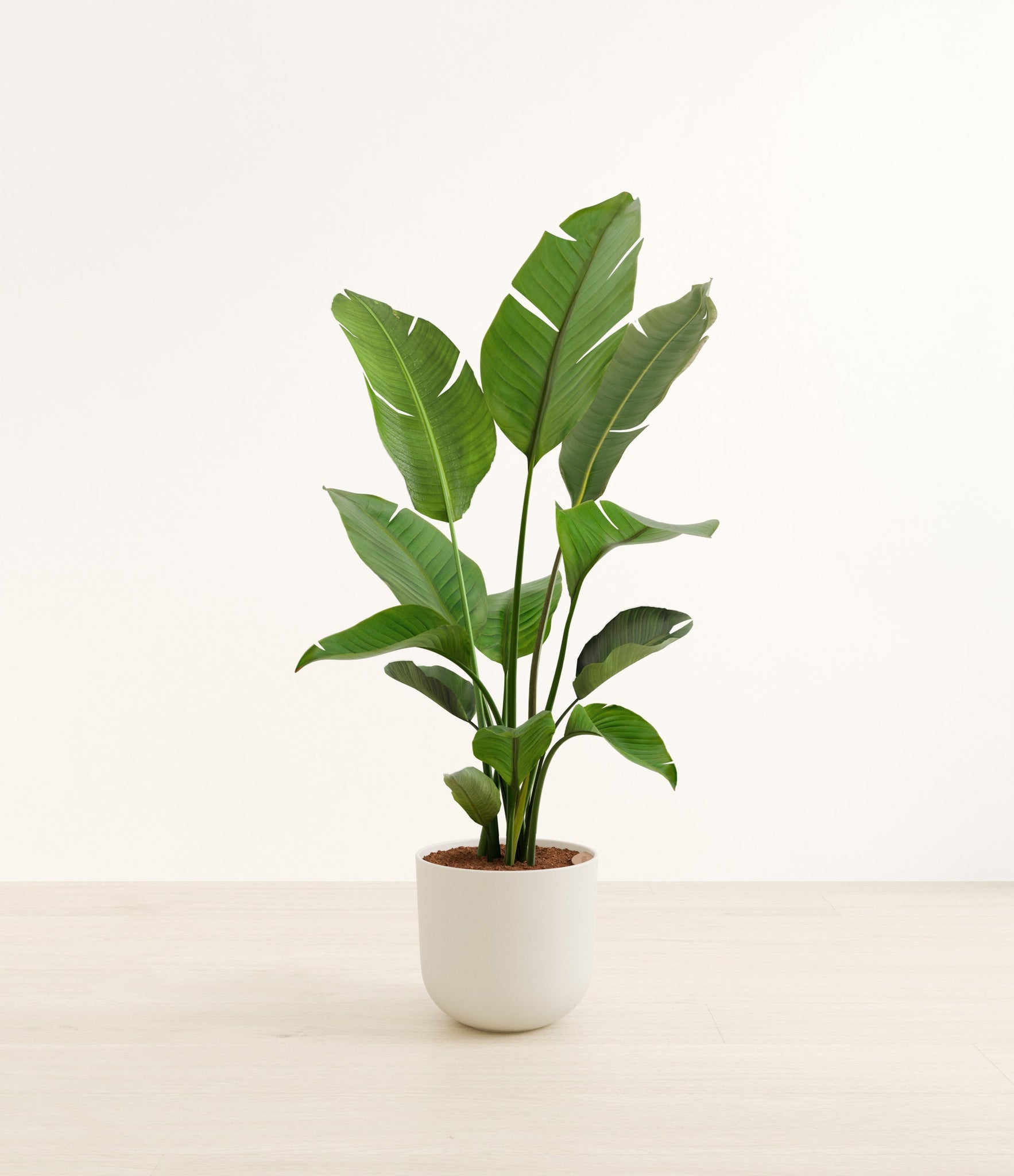 Native to tropical South Africa, White Bird of Paradise graces our spaces while towering to great heights.Playfully hanging like birds in flight, its long and broad leaves naturally split so to allow wind to pass through in the wild. A royal plant if there ever was one, it received its scientific name, Strelitzia nicolai, from Her Highness Queen Charlotte of Mecklenburg-Strelitz of England - lover of botany and the arts.