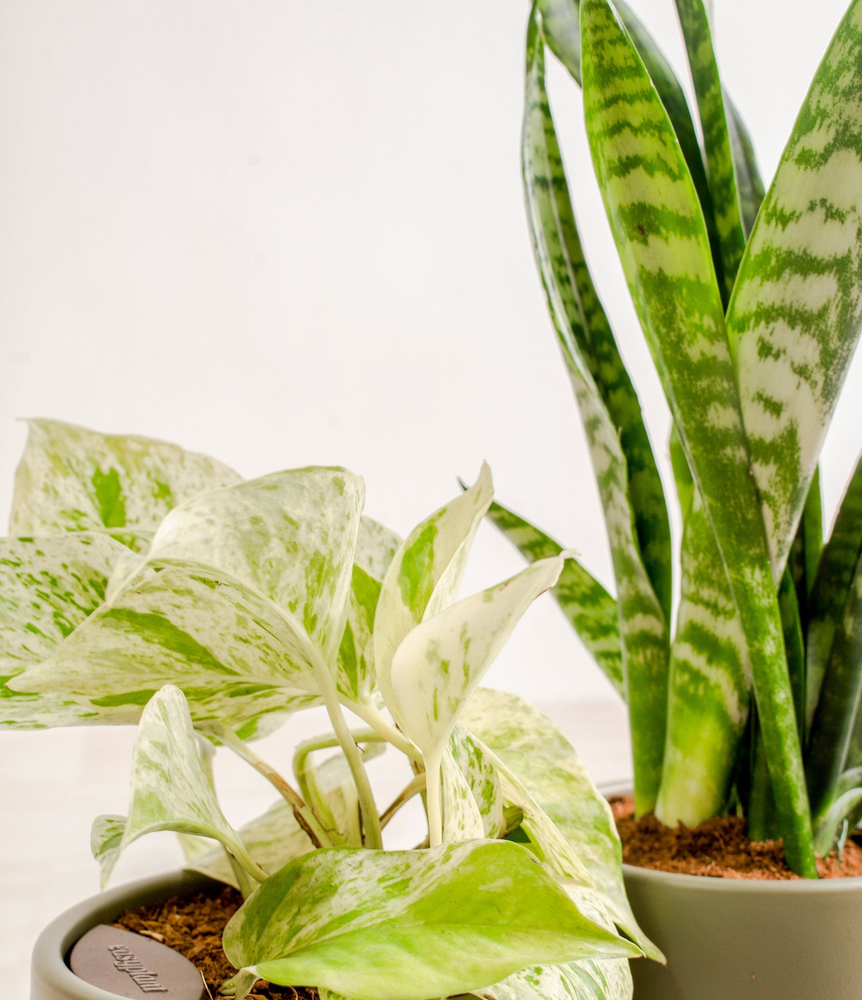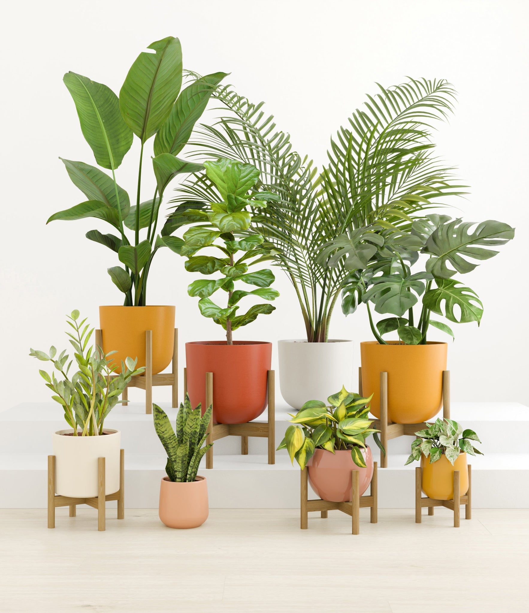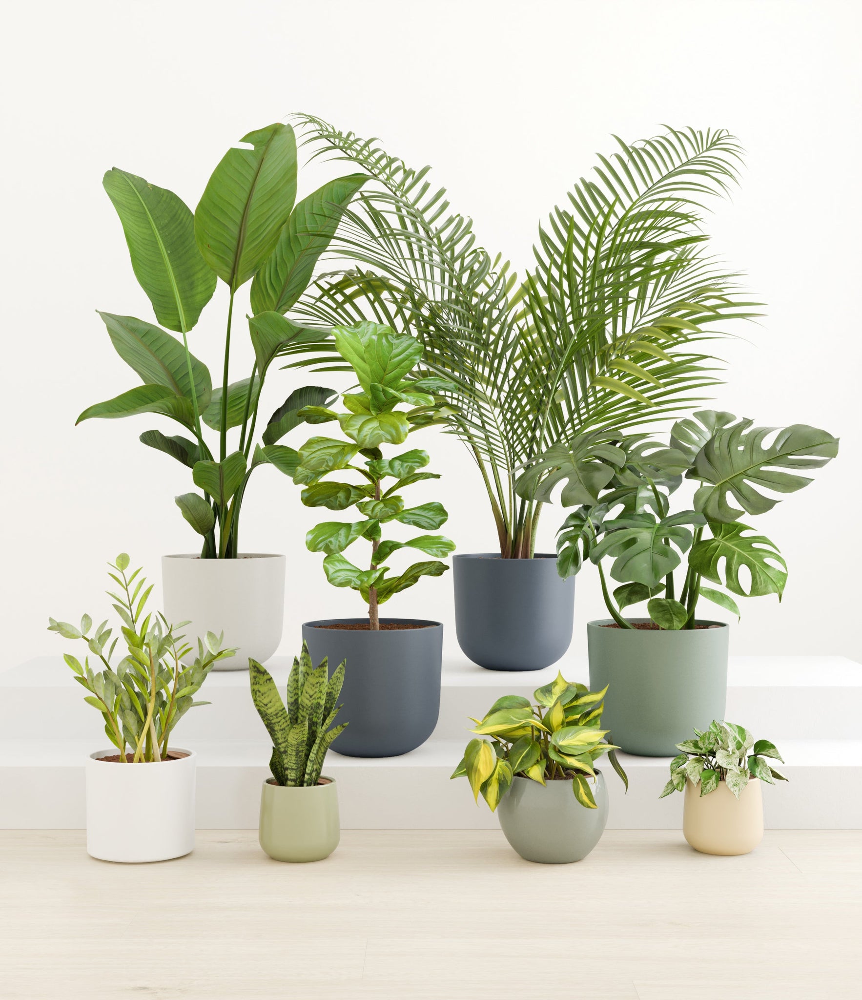 In this collection, you’ll receive eight houseplants that transform any space into a spectacular jungle. The set includes a small Marble Pothos patterned with marbled minty green; a small Green Snake Plant with mesmerizing swatches of silver and sage; a medium Philodendron Brazil with lime-colored variegation on heart-shaped foliage; a medium ZZ plant – which thrives under almost any condition, making it a favorite in every plant collection; a large Fiddle Leaf Fig Bush with massive and vibrant lyre-shaped leaves; a large Monstera Deliciosa with breathtaking foliage; a huge Majesty Palm with elegant fronds and graceful curves; and a huge White Bird of Paradise that playfully hangs like birds in flight.