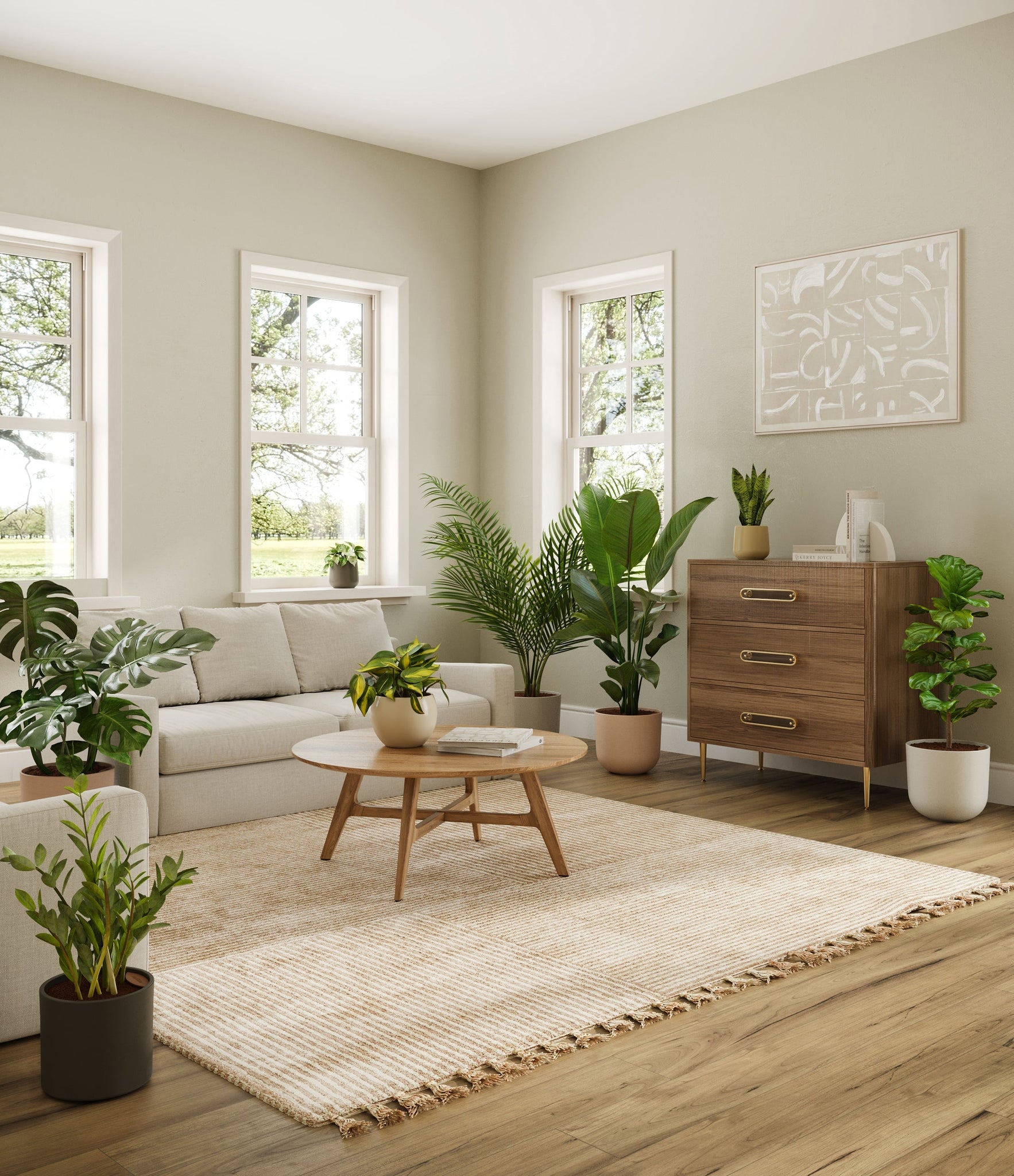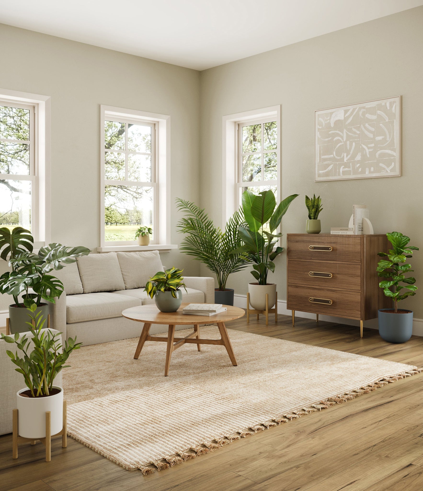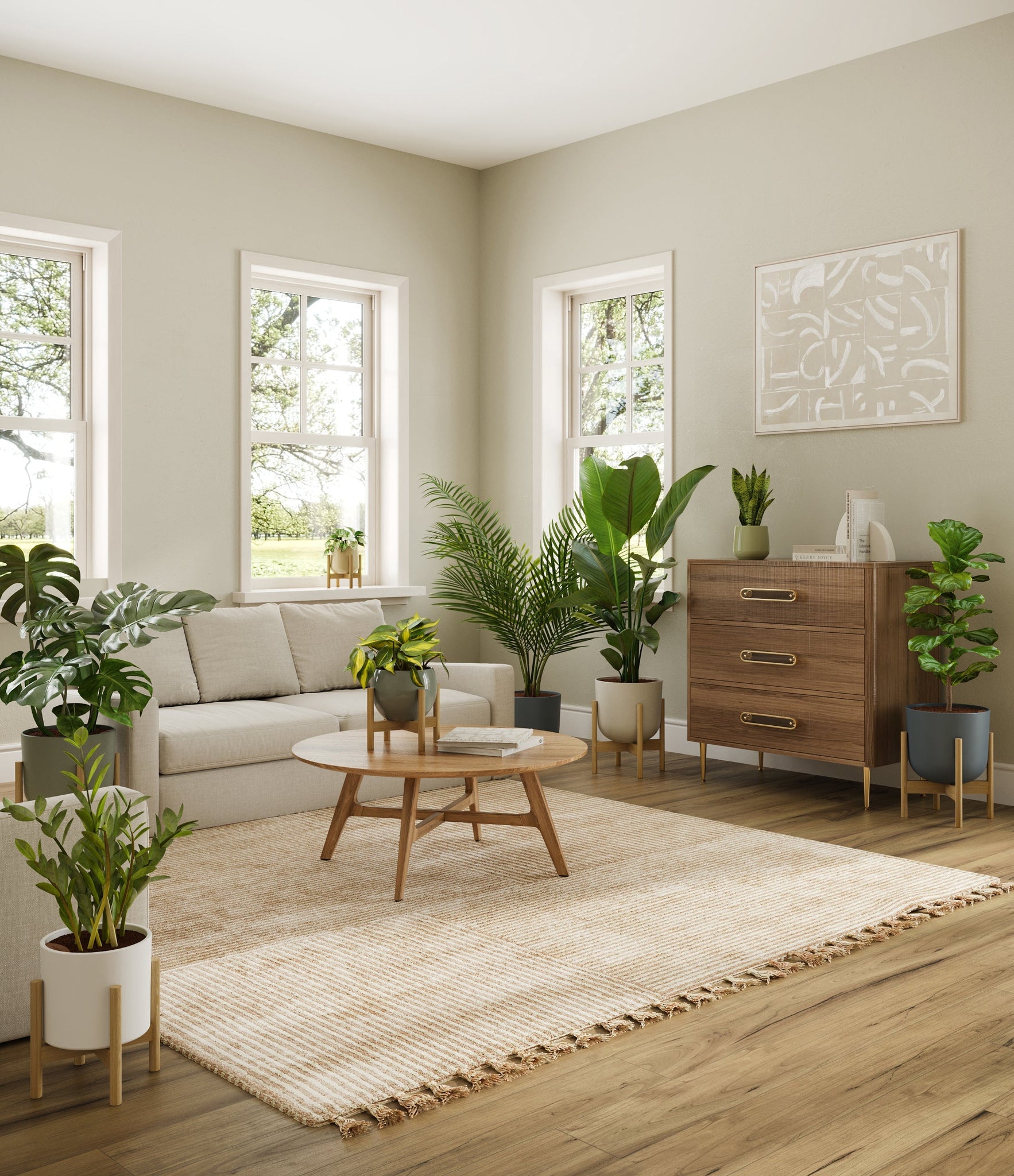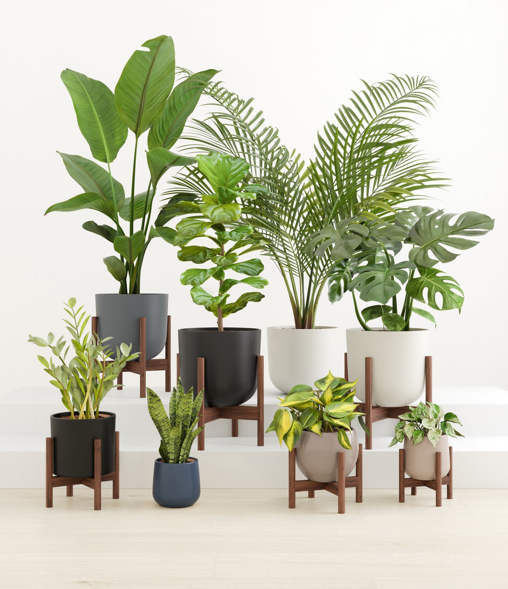 In this collection, you’ll receive eight houseplants that transform any space into a spectacular jungle. The set includes a small Marble Pothos patterned with marbled minty green; a small Green Snake Plant with mesmerizing swatches of silver and sage; a medium Philodendron Brazil with lime-colored variegation on heart-shaped foliage; a medium ZZ plant – which thrives under almost any condition, making it a favorite in every plant collection; a large Fiddle Leaf Fig Bush with massive and vibrant lyre-shaped leaves; a large Monstera Deliciosa with breathtaking foliage; a huge Majesty Palm with elegant fronds and graceful curves; and a huge White Bird of Paradise that playfully hangs like birds in flight.