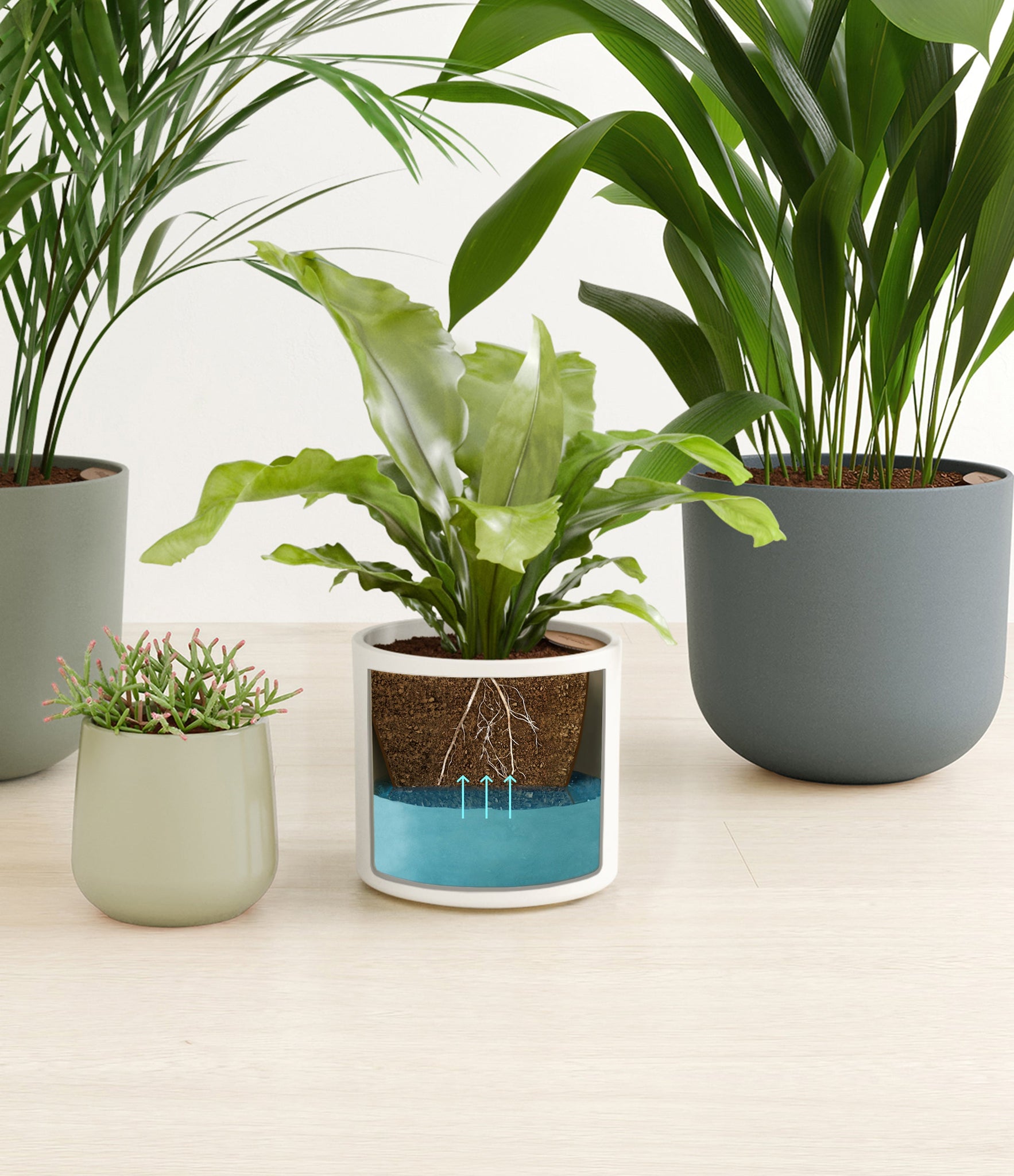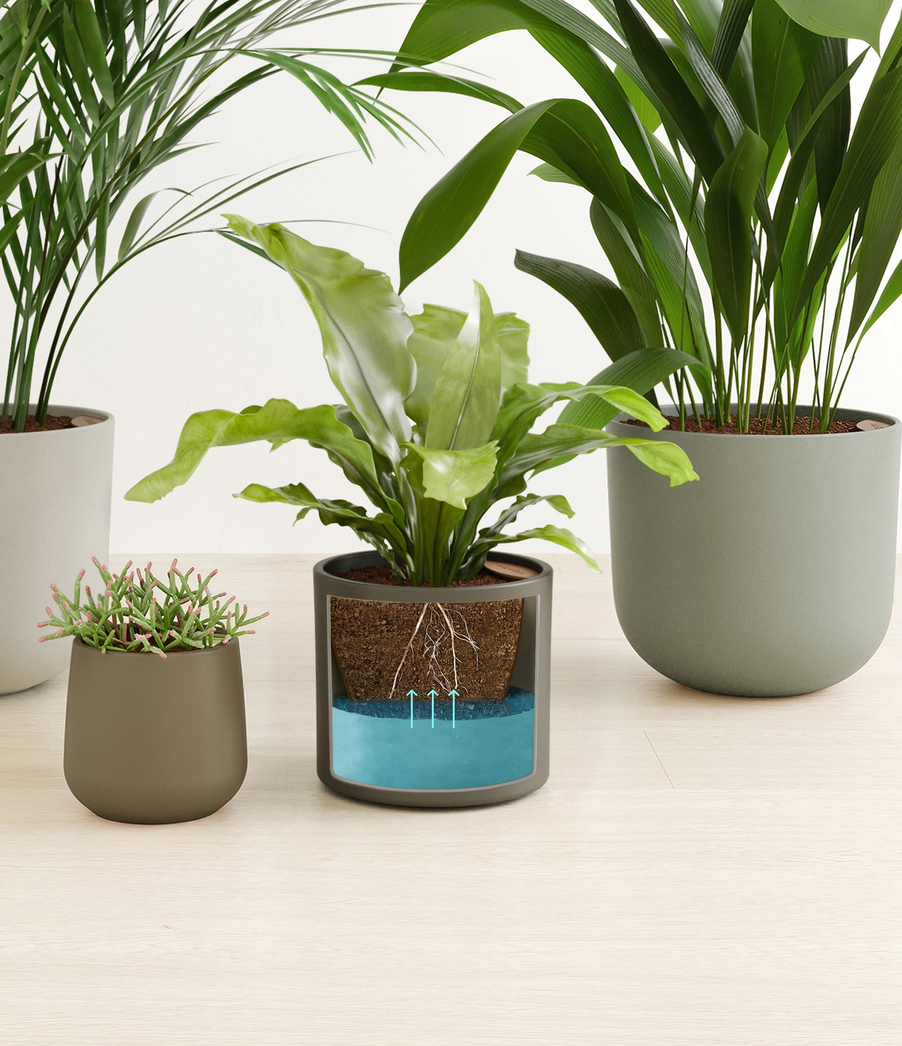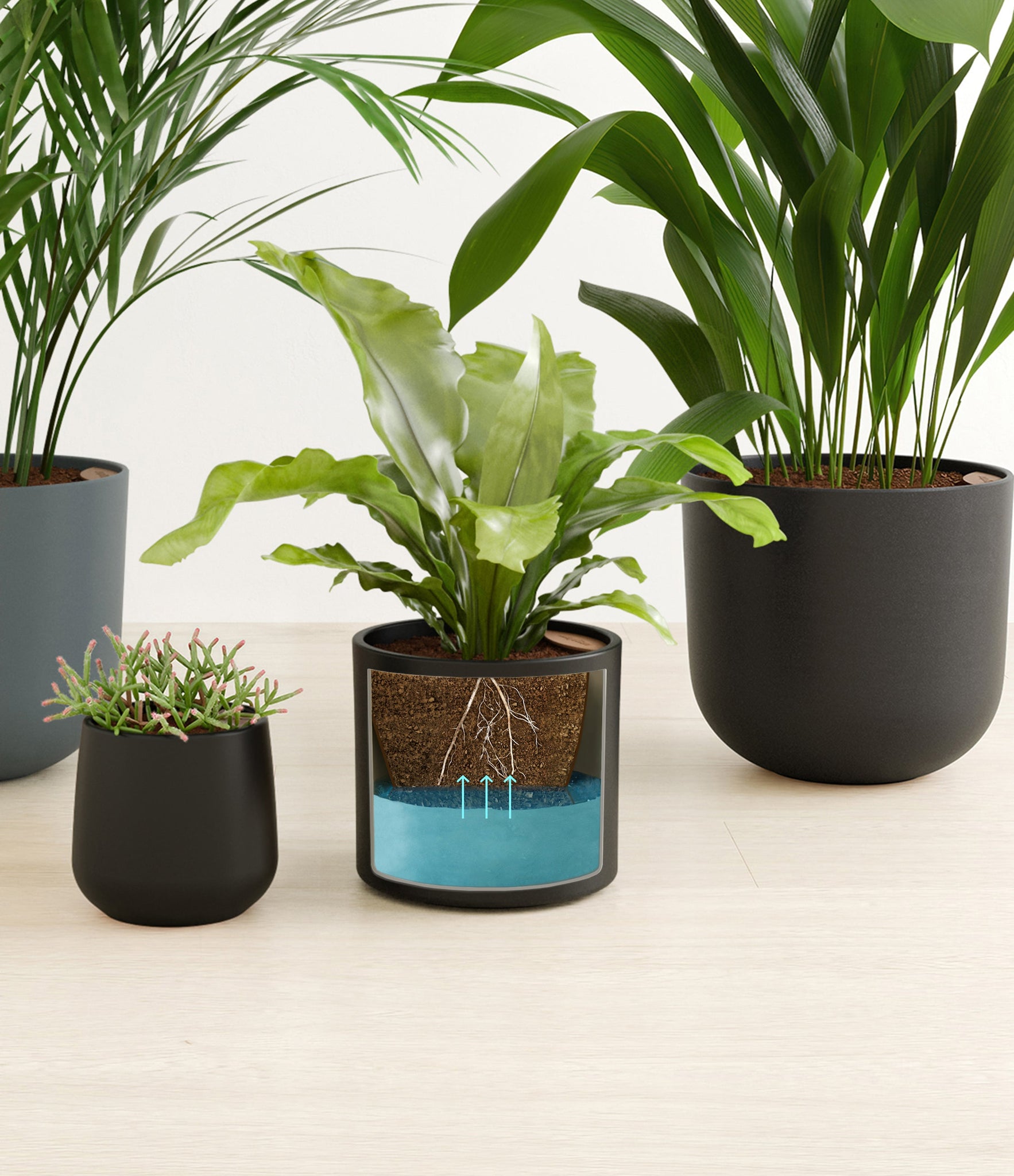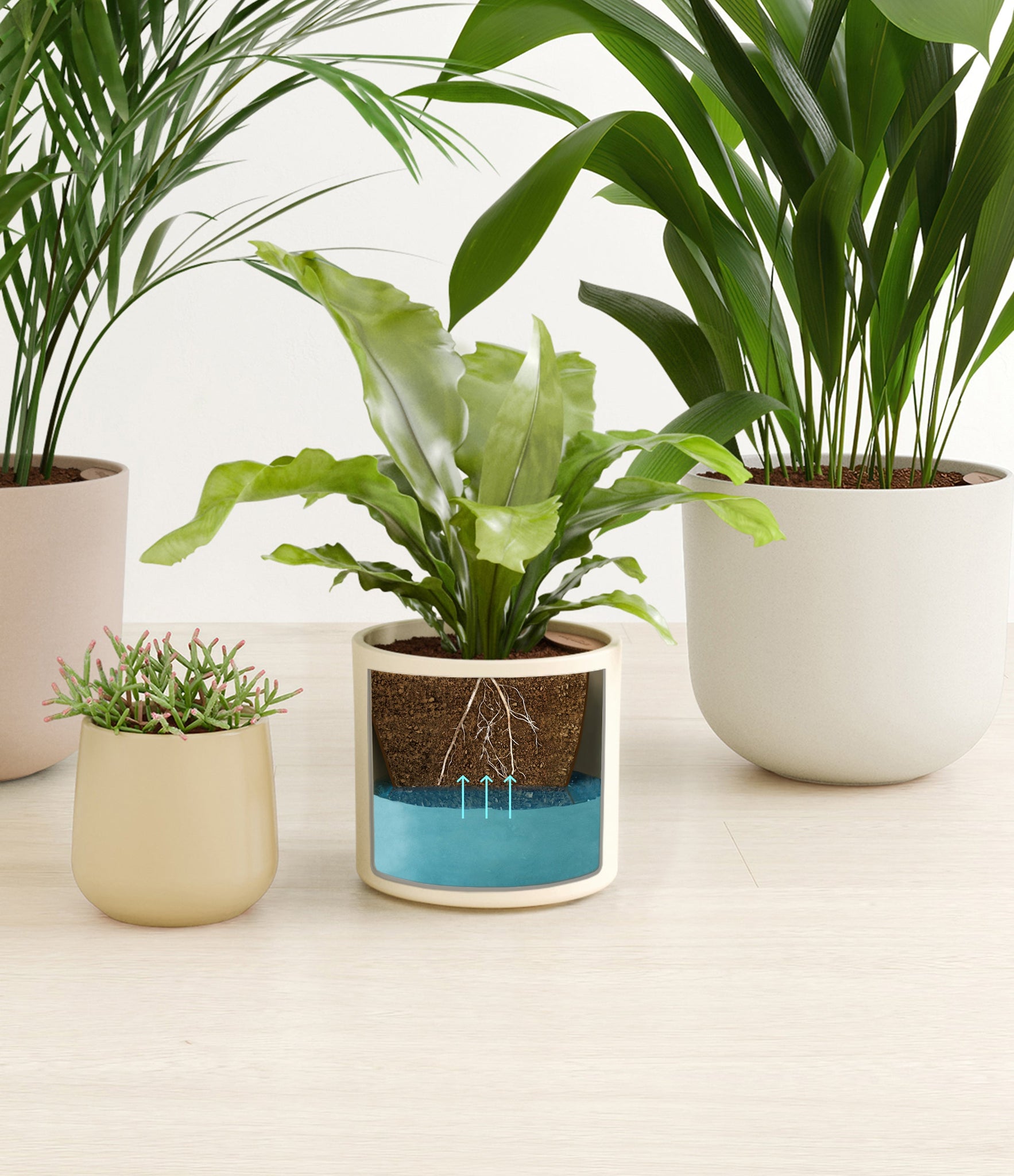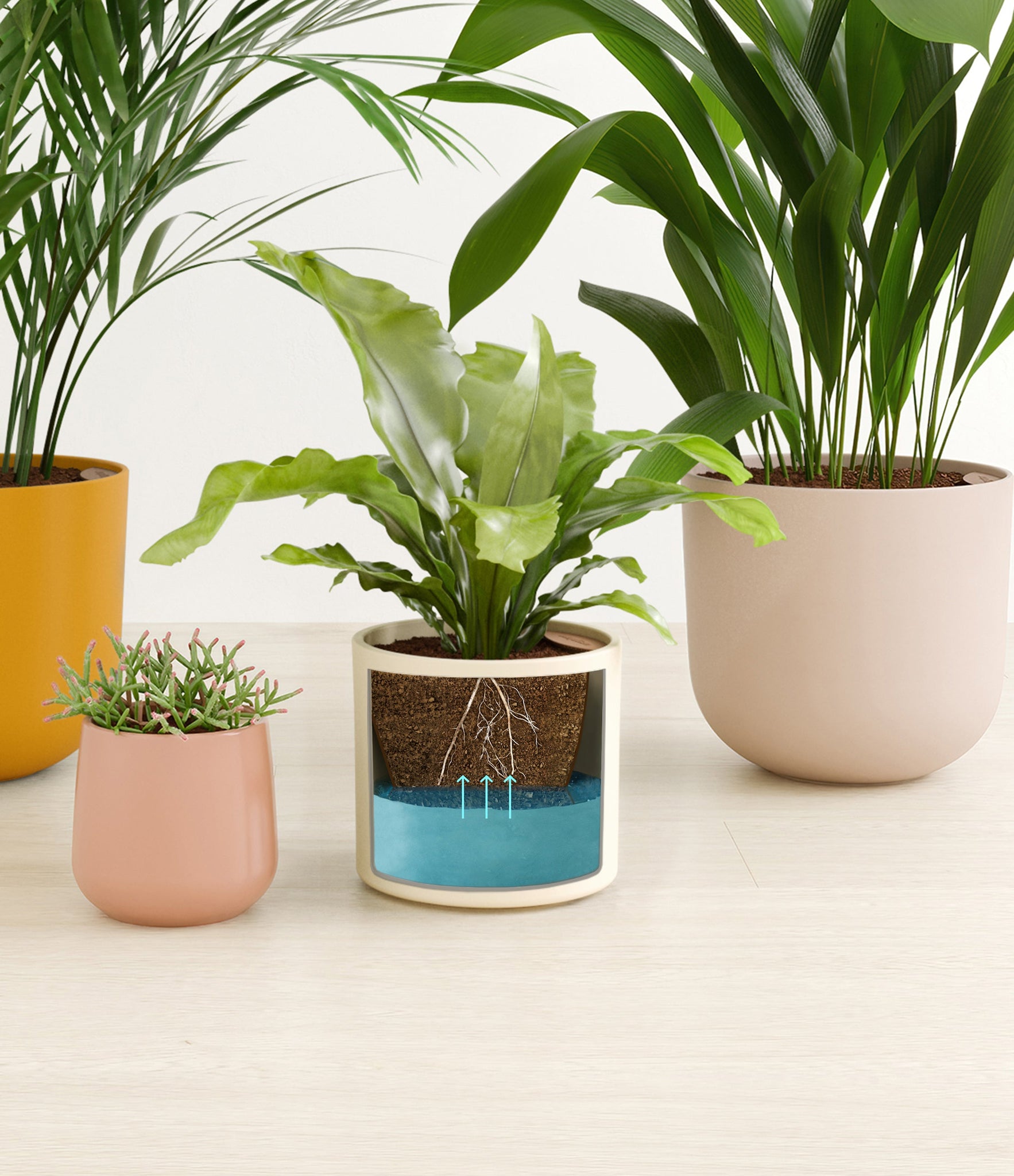 This collection brings together four easy-care houseplants that are both pet-friendly and low-light tolerant. The assortment includes a small Mistletoe Cactus – with its trailing bright green pencil-thin foliage that instantly livens any space; a medium Birds Nest Fern – its bright green, wavy fronds bring a touch of the wild indoors; a large Cast Iron Plant – a hardy and resilient plant that thrives in low-light conditions; and a huge Areca Palm – with its feathery, arching fronds that add an element of elegance to any room.