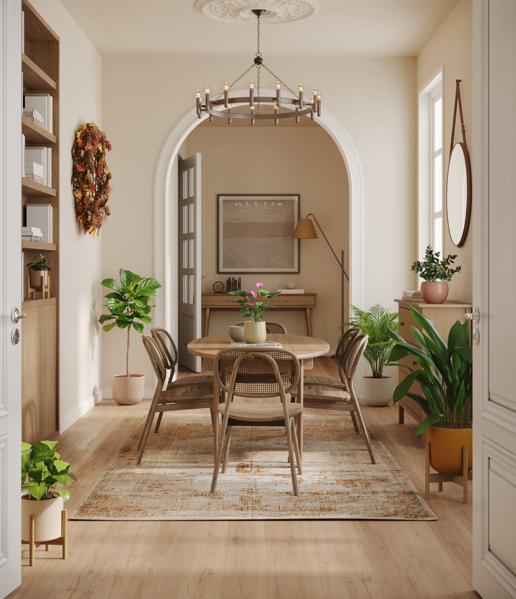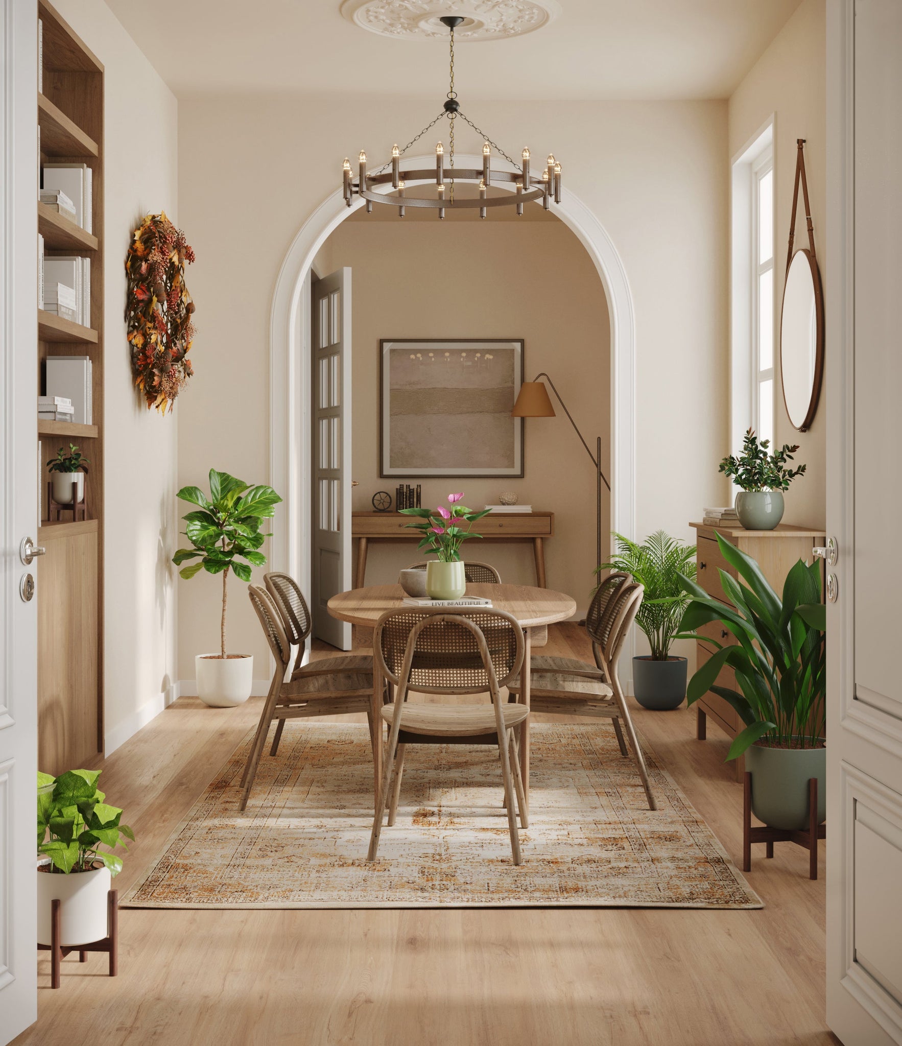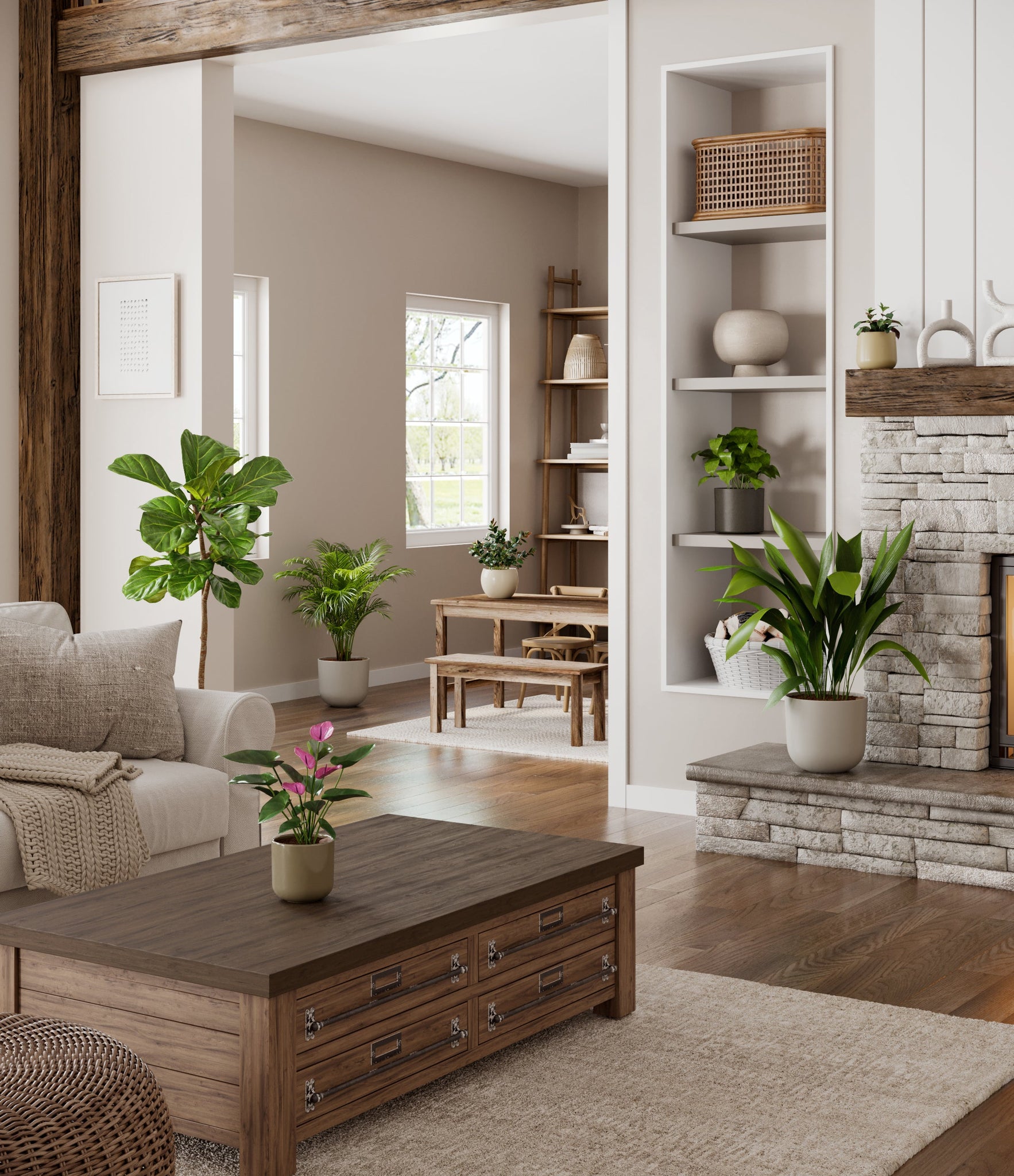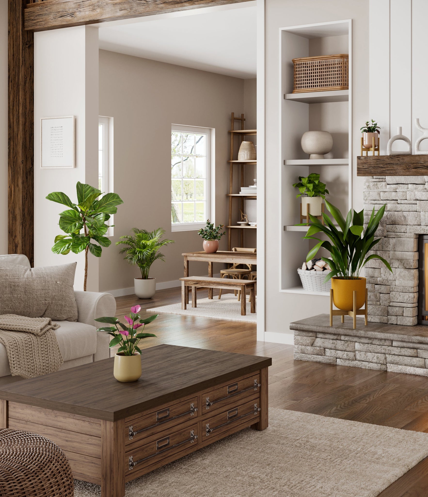 Embrace the essence of fall with 'Autumn Accents', a thoughtfully selected array of seven plants. In this collection, you'll receive seven distinctive, easy-to-care-for houseplants that each bring a unique aspect of autumn's charm to your indoor spaces. The set includes a small Black Pagoda Plant, whose darkly patterned leaves introduce a mysterious depth to the ensemble; a small Anthurium Purple, celebrated for its vibrant purple spathes that echo the rich tones of the season; a medium Calathea Network, known for its intricate leaf patterns; a medium Goldfish Plant, adored for its vibrant, playful blooms; a large Cast Iron Plant, prized for its robust and enduring foliage; a large Areca Palm, providing a dash of tropical elegance; and a majestic huge Fiddle Leaf Fig, offering dramatic, broad leaves. Together, these selections promise to transform any space with a burst of fall's best colors.