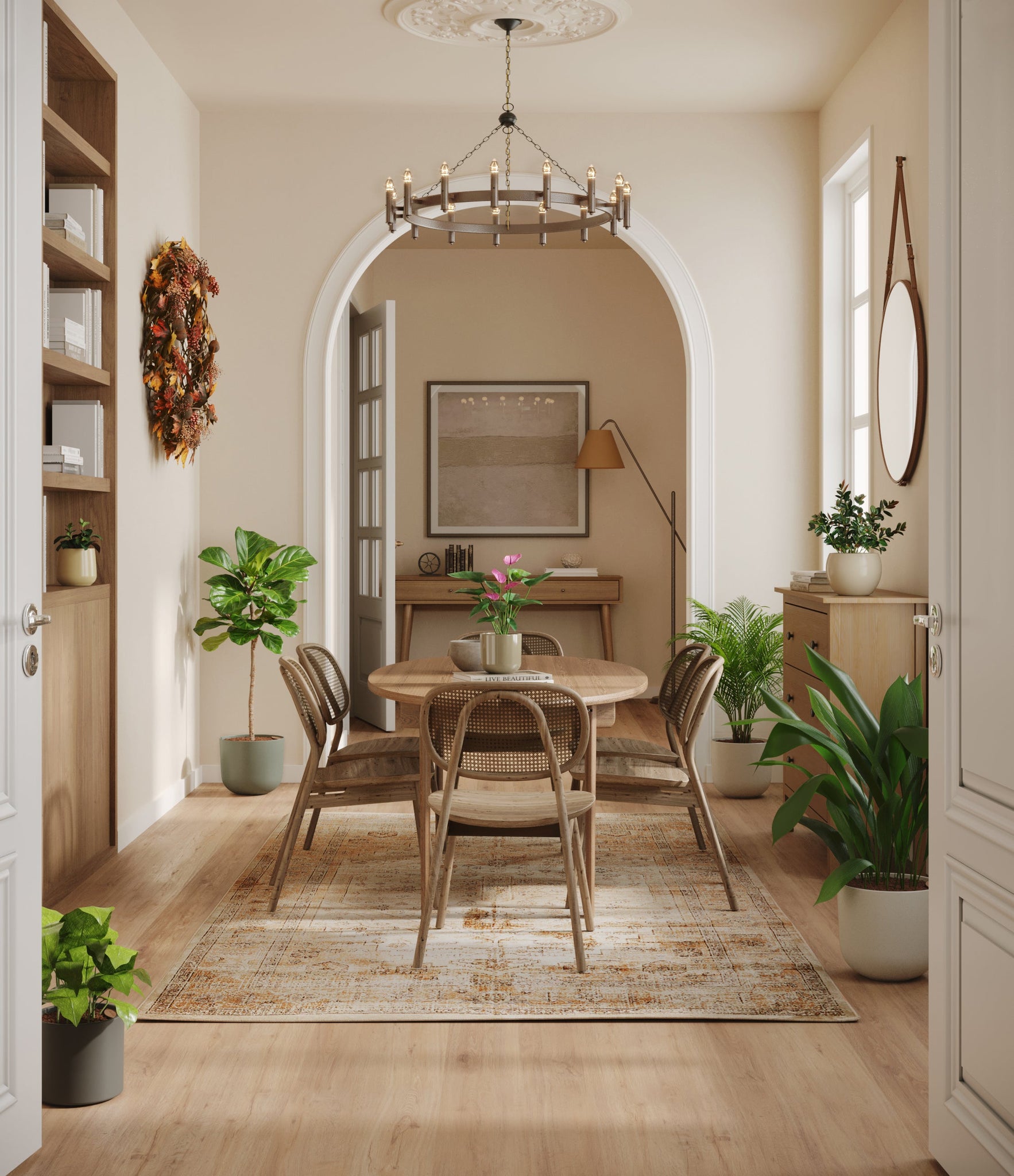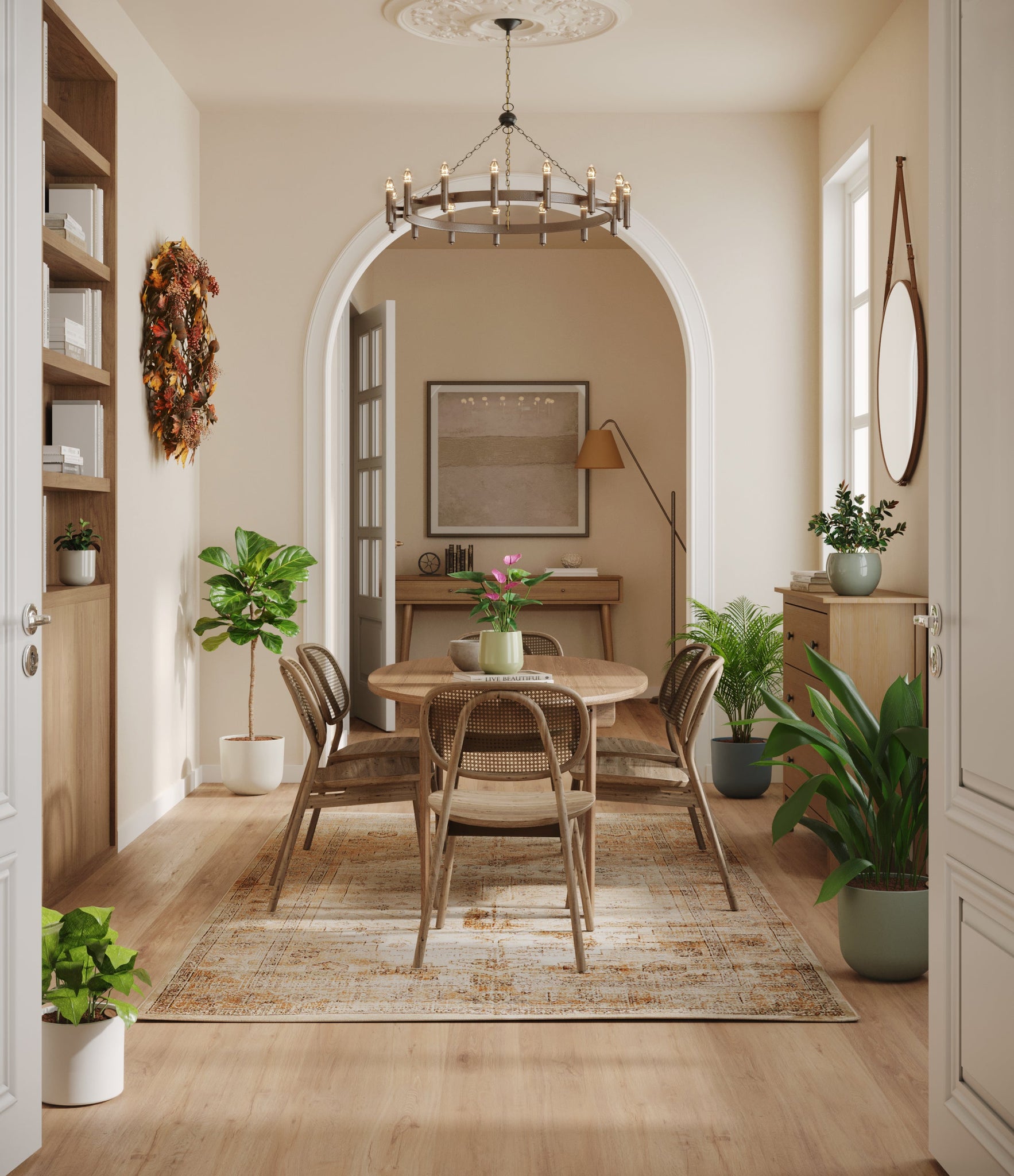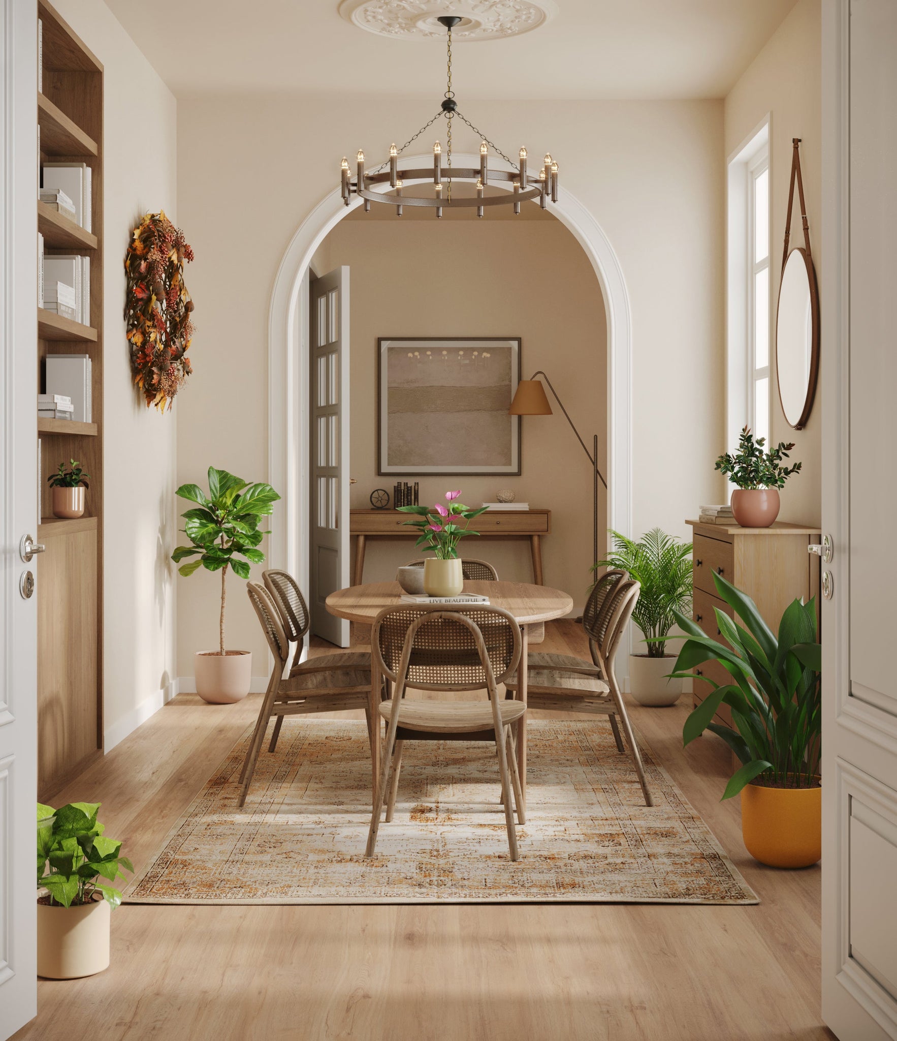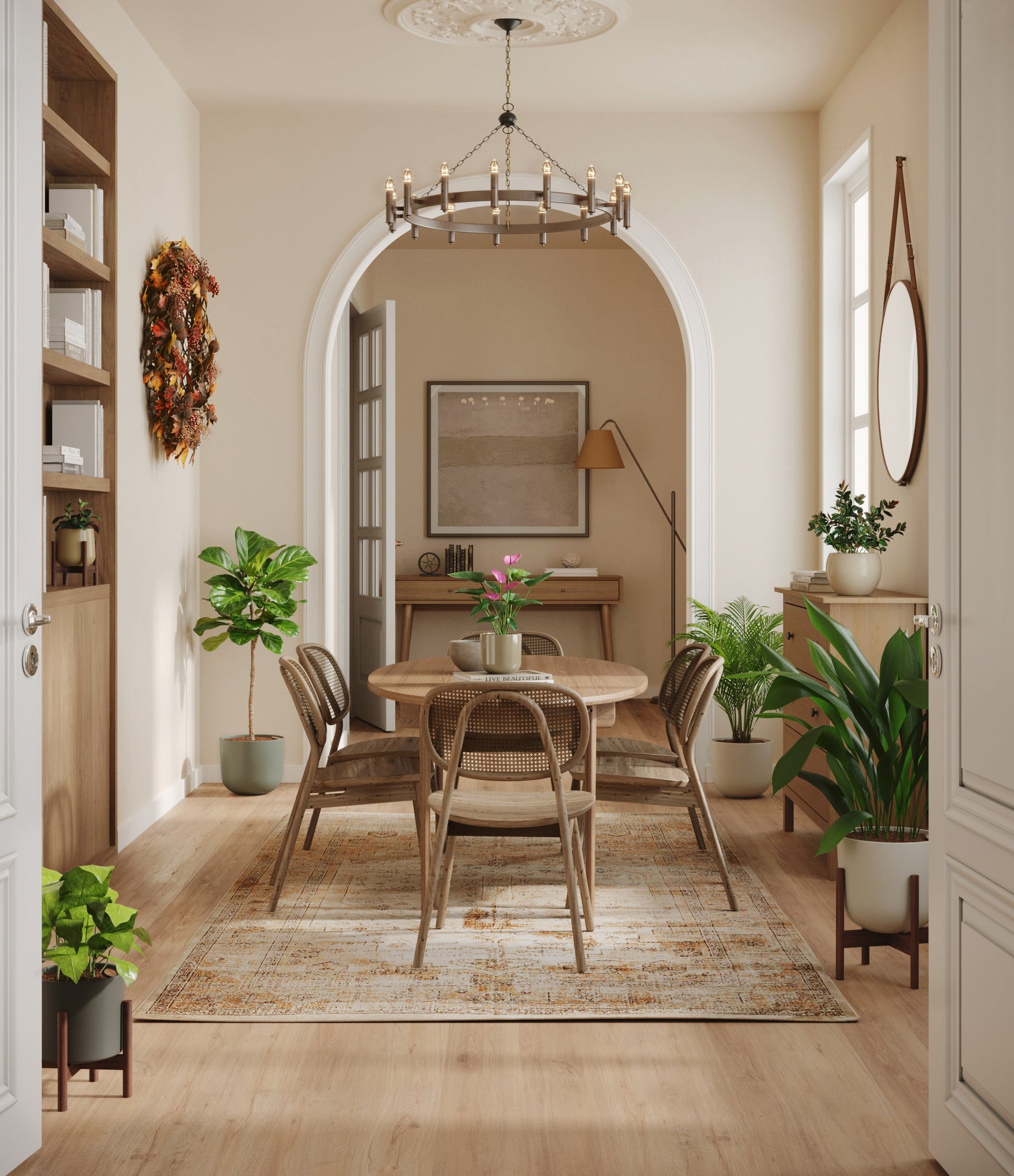 Embrace the essence of fall with 'Autumn Accents', a thoughtfully selected array of seven plants. In this collection, you'll receive seven distinctive, easy-to-care-for houseplants that each bring a unique aspect of autumn's charm to your indoor spaces. The set includes a small Black Pagoda Plant, whose darkly patterned leaves introduce a mysterious depth to the ensemble; a small Anthurium Purple, celebrated for its vibrant purple spathes that echo the rich tones of the season; a medium Calathea Network, known for its intricate leaf patterns; a medium Goldfish Plant, adored for its vibrant, playful blooms; a large Cast Iron Plant, prized for its robust and enduring foliage; a large Areca Palm, providing a dash of tropical elegance; and a majestic huge Fiddle Leaf Fig, offering dramatic, broad leaves. Together, these selections promise to transform any space with a burst of fall's best colors.
