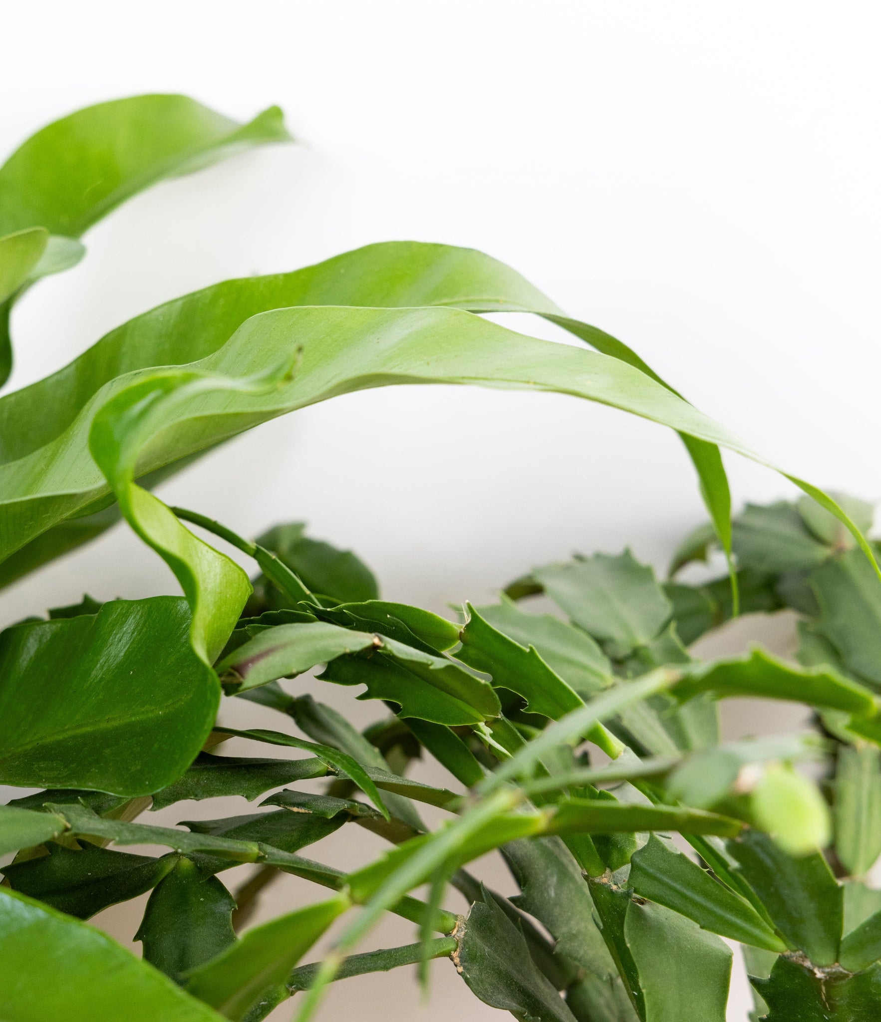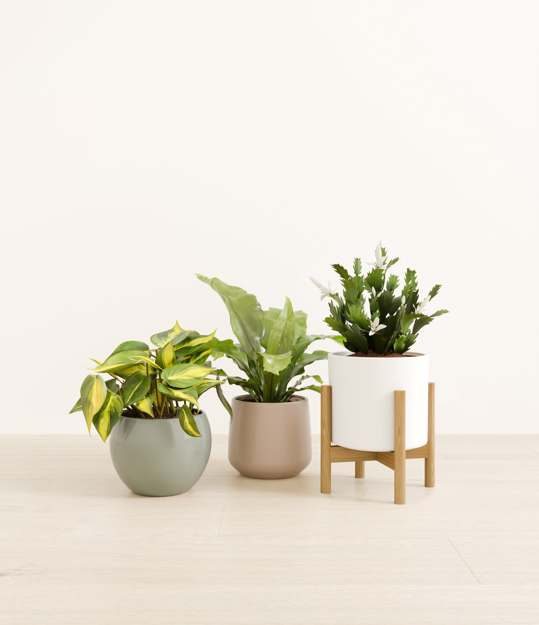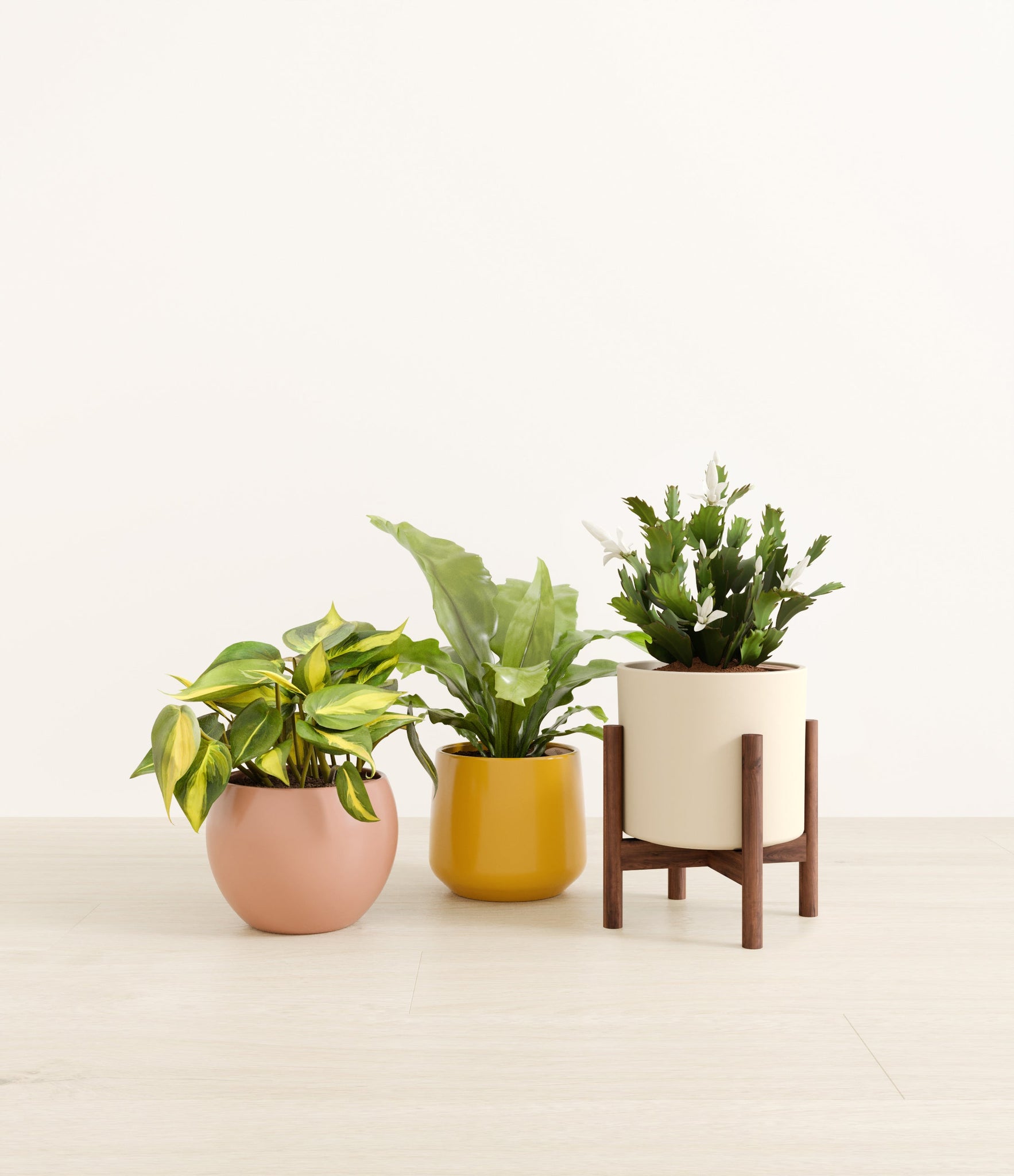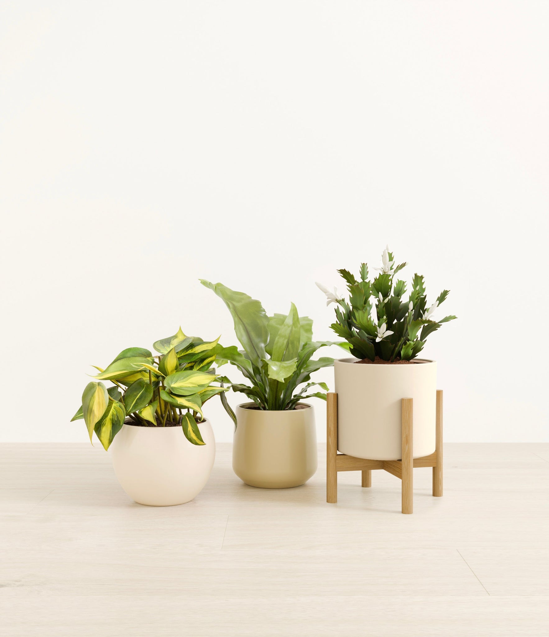 Embrace the cozy comfort of autumn with a vibrant trio of houseplants that epitomize the warmth and charm of the season. This collection features a medium Birds Nest Fern, bringing a touch of lush, natural elegance with its rippling fronds; a medium Holiday Cactus, celebrated for its festive blooms that enliven any setting; and a medium Philodendron Brazil, with its vibrant cascades of green and gold. Together, these plants create a harmonious atmosphere, perfect for enhancing indoor spaces and celebrating the tranquil spirit of Thanksgiving.